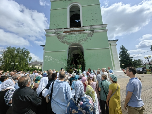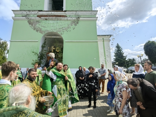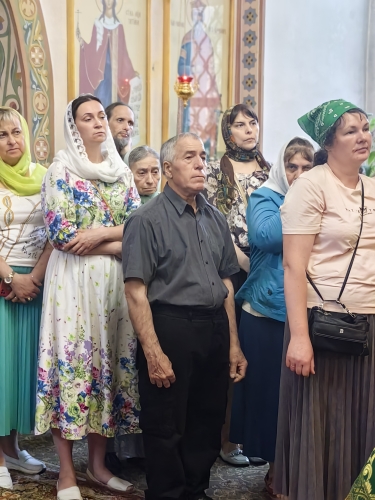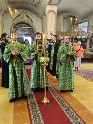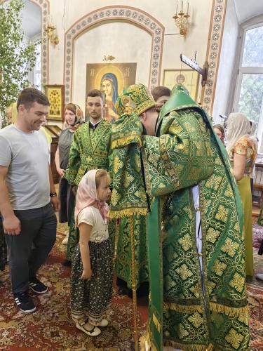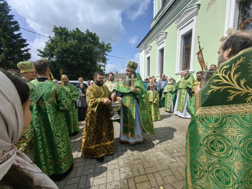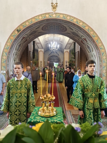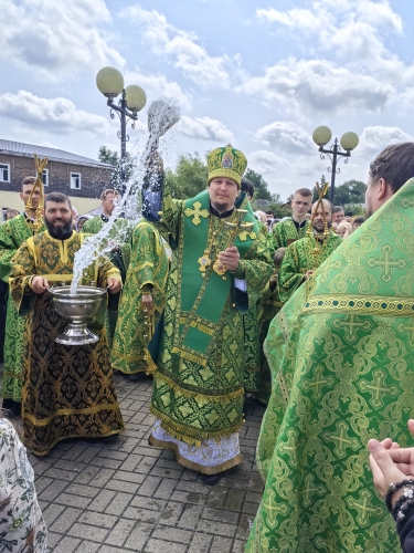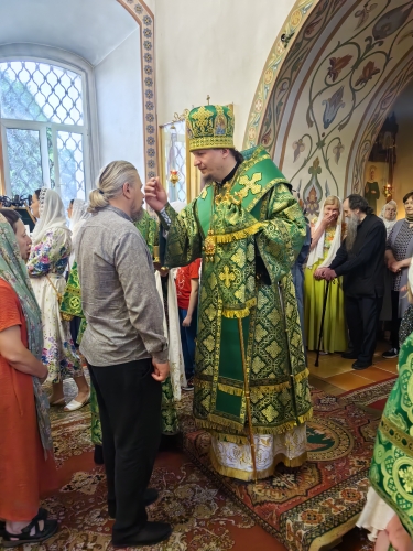 По окончании Литургии был совершен молебен Святому Духу и Крестный ход вокруг храма. Архипастырь и священнослужители окропили прихожан и паломников святой водой.