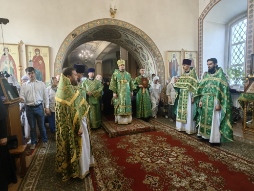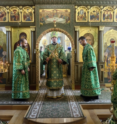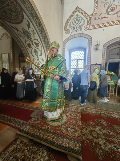 9 июня епископ Макарий совершил в Свято-Духовском храме Божественную Литургию в сослужении многочисленного духовенства храма и г. Козельска.