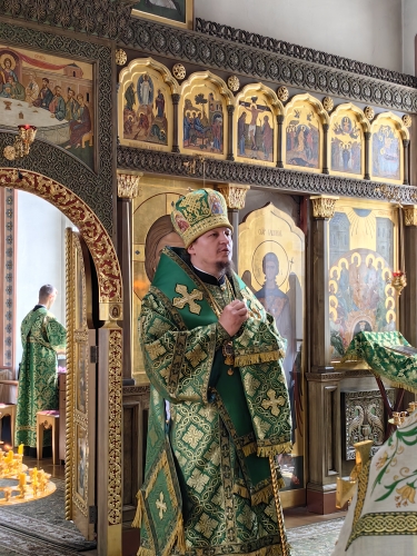 По окончании богослужения епископ Макарий обратился со словом проповеди к прихожанам. «Сегодня мы прославляем Святого Духа, единого Утешителя, Который даёт каждому призывающему Его мир, успокоение и благодатную силу, чтобы исполнить то предназначение, к которому мы призваны от создание. Это предназначение — исполнить благую и всесовершенную Волю Божию, и через это обрести Спасение» — отметил епископ.