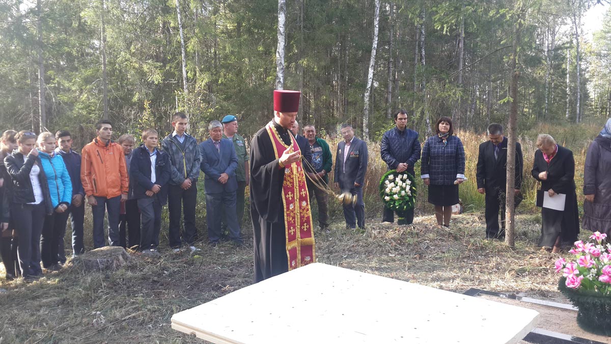 На открытии памятника принимали участие родственники (племянник и внук) погибшего воина, а так же представители администрации района, поискового движения, учащиеся средней школы д.Теребень и благочинный 4-го округа Козельской епархии протоиерей Александр Карпов. Слова благодарности были выражены всем кто помог поднять из забвения и увековечить имя еще одного, теперь уже известного, защитника нашей Родины. После митинга по всем погибшим воинам была отслужена заупокойная лития.