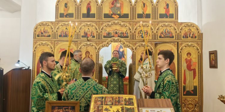 14 июня в день отдания праздника Пятидесятницы епископ Козельский и Людиновский Макарий совершил Божественную Литургию в гарнизонном храме святой великомученицы Варвары 28-й гвардейской ракетной Краснознамённой дивизии в г. Козельске.