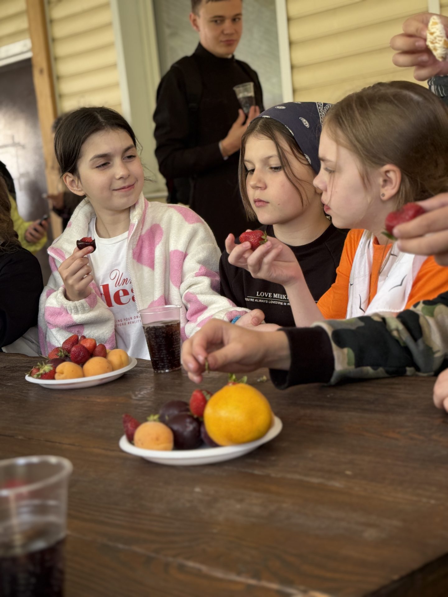 Затем, на свежем воздухе, дети и священник пообщались на темы о Боге, Церкви, о том, как независимо от возраста, человек должен стремиться к вечному Царству Божию, и обсудили иные духовные вопросы.