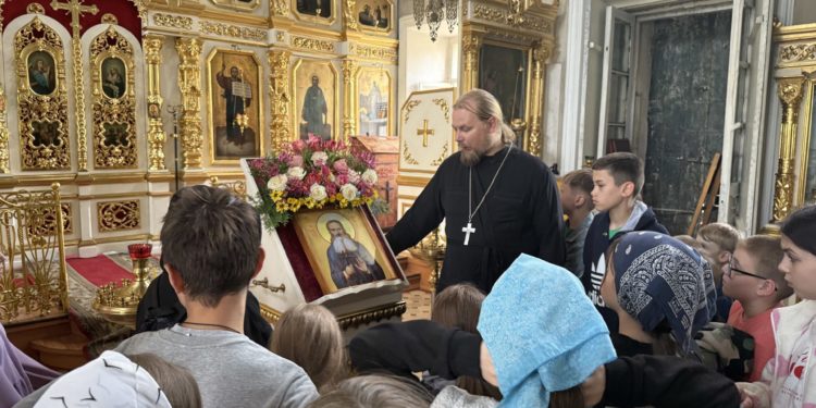 19 июня, после Литургии в честь святого преподобноисповедника Рафаила Козельского и Оптинского, храм Благовещения посетили дети из Калужского православного молодежного Центра «Златоуст».
