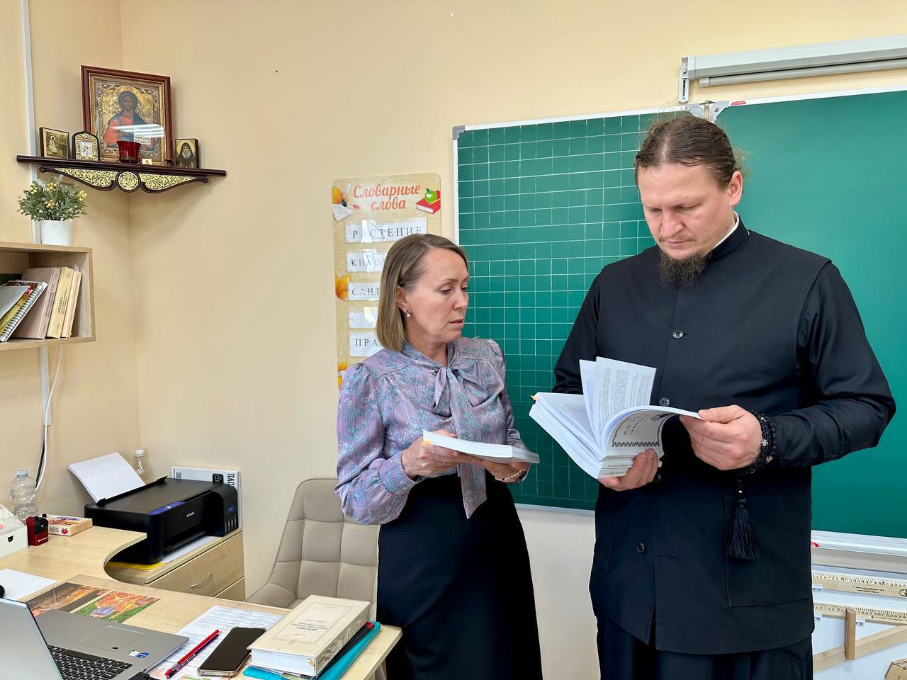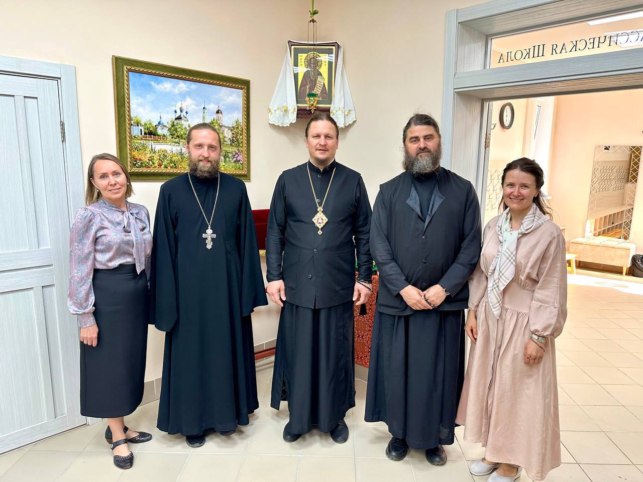 Также епископ Макарий посетил Оптинскую классическую гимназию, расположенную вблизи храма Зачатия Предтечи и Крестителя Спасова Иоанна, познакомился с учебной программой Русской классической школы и организацией учебного процесса. Заместитель директора гимназии К.П. Латыпова и учитель начальной школы М.М. Смородова рассказали владыке о школьных традициях и особом внимании к преподаванию Русской словесности, которое реализуется в гимназии.