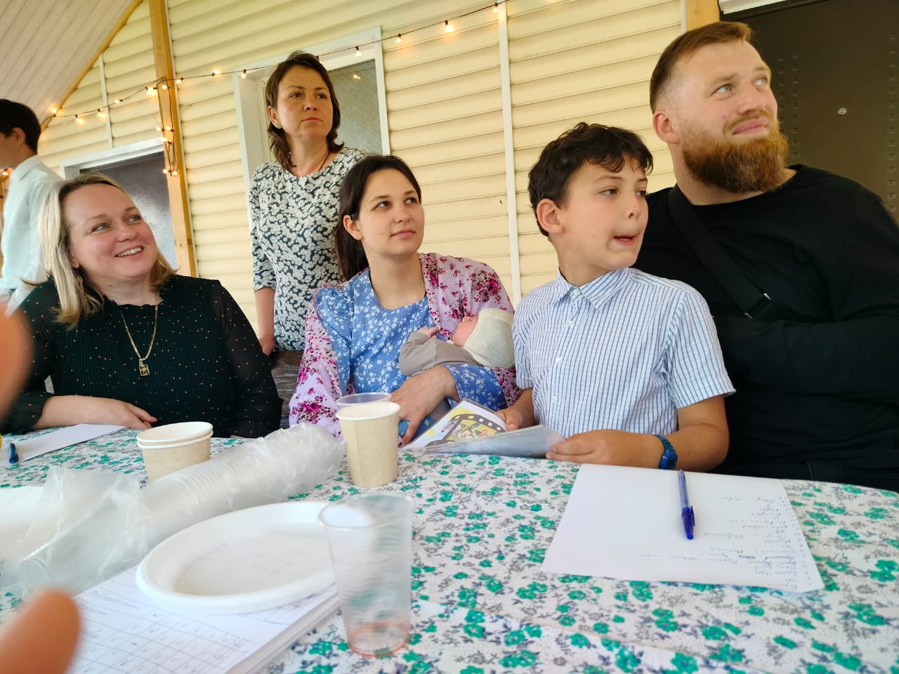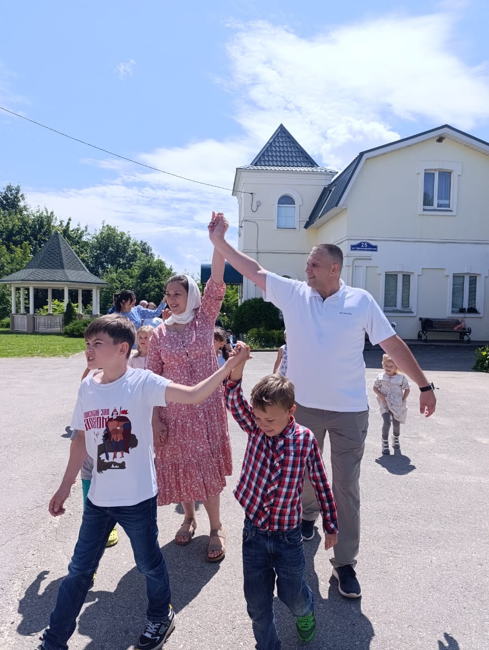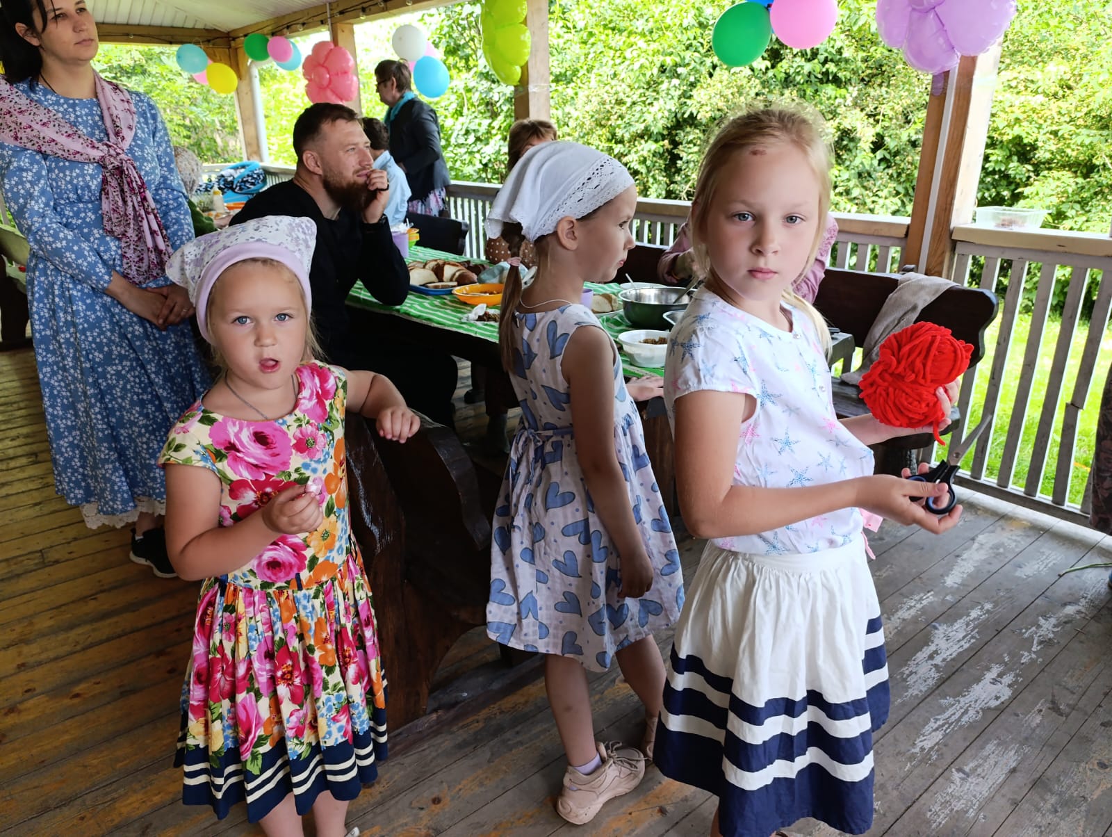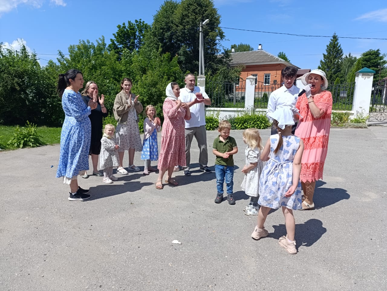 После отпуста в честь наступающего Дня семьи, любви и верности прошли праздничные приходские мероприятия. После общей трапезы отец Сергий провел для взрослых и родителей викторину по библейским и житийным темам, затронув историю святых князей Петра и Февронии Муромских, а дети приняли участие в играх и конкурсах.