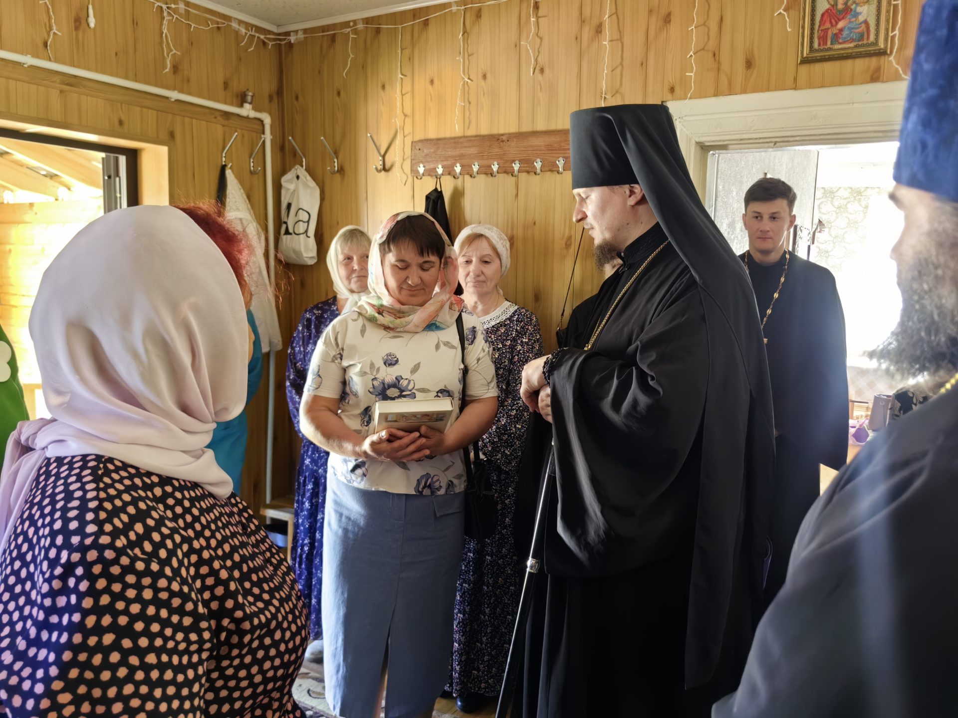 У молитвенного дома в честь Казанской иконы Божией Матери п. Дудоровский епископа встретил настоятель храма священник Алексий Сорокин с прихожанами. Владыка осмотрел убранство молитвенного дома, библиотеку и побеседовал с прихожанами.