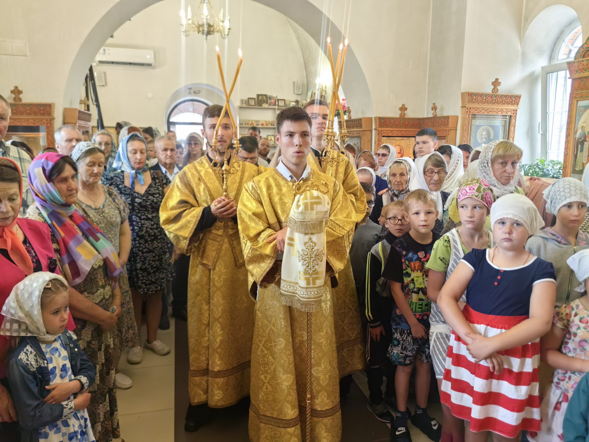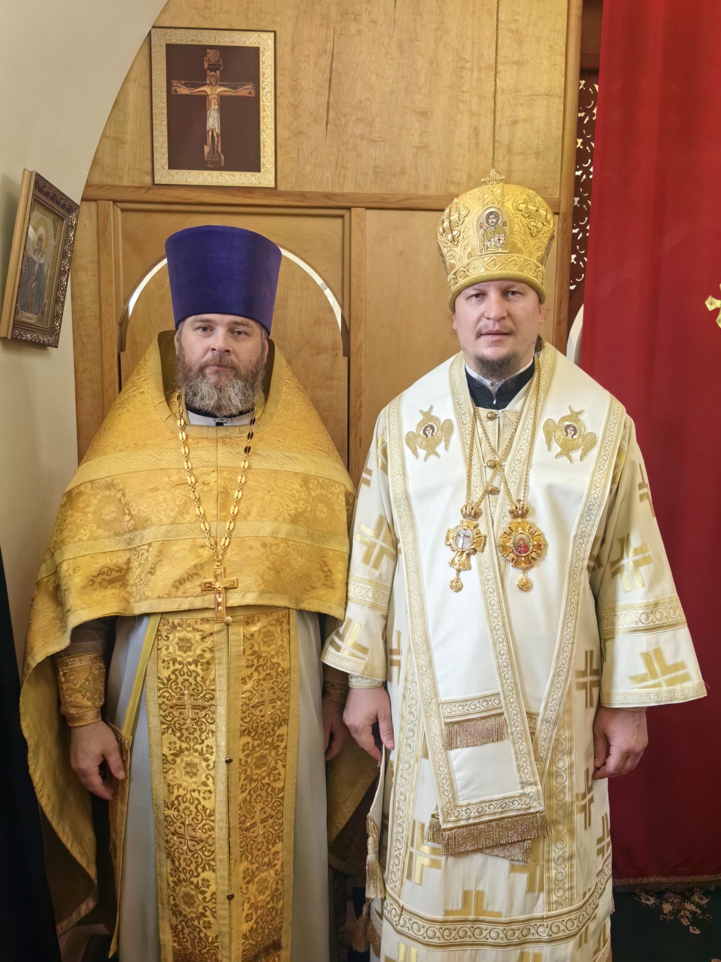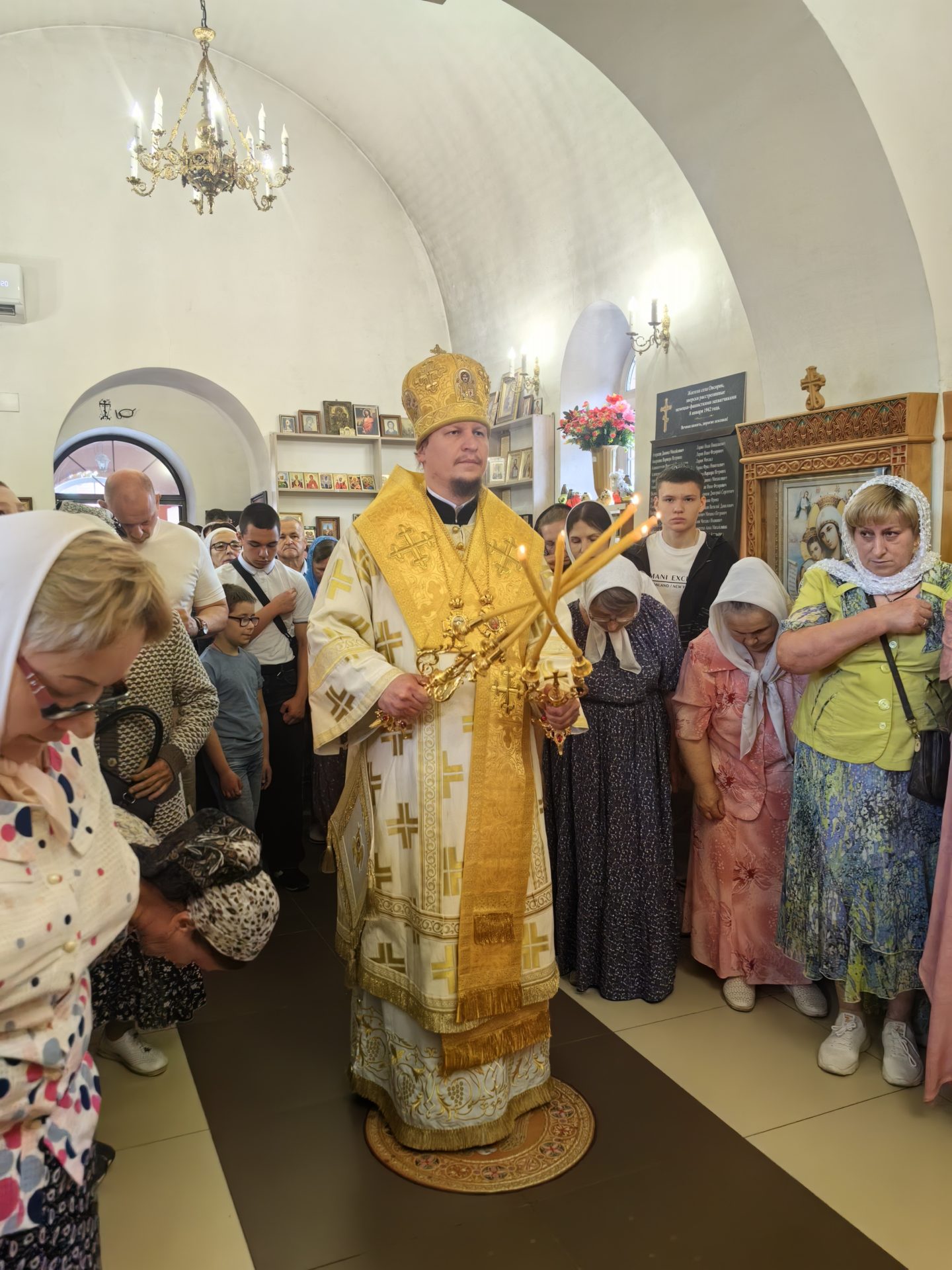 У входа в храм епископа встречали настоятель священник Алексий Скрипкин и ктитор храма Николай Николаевич Кленов с прихожанами.