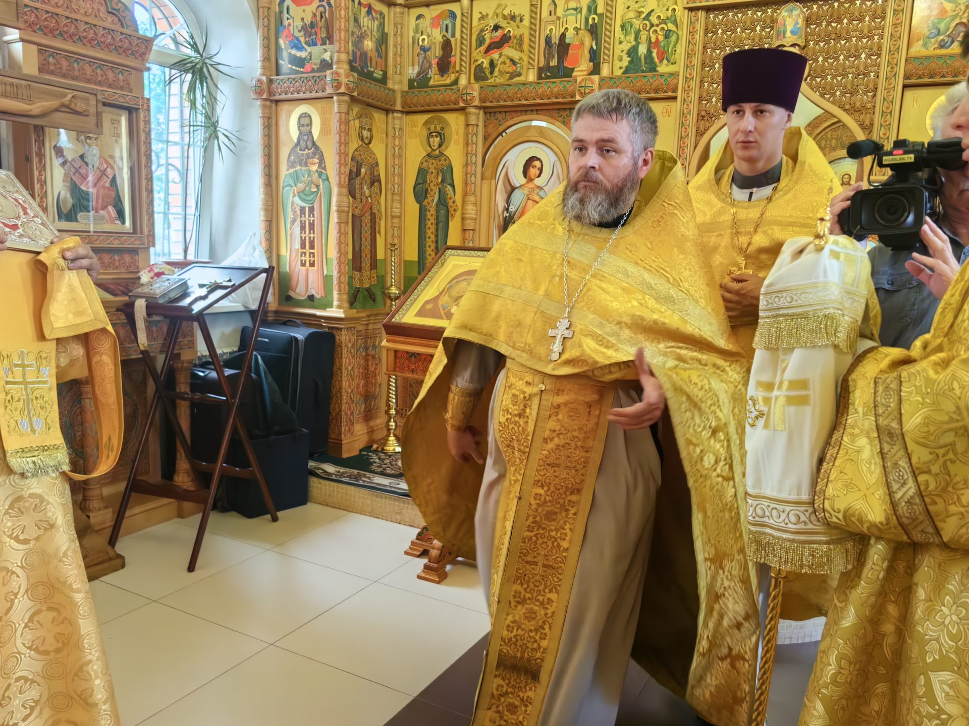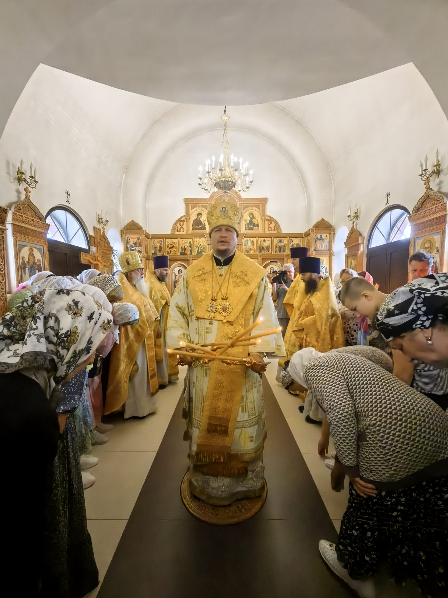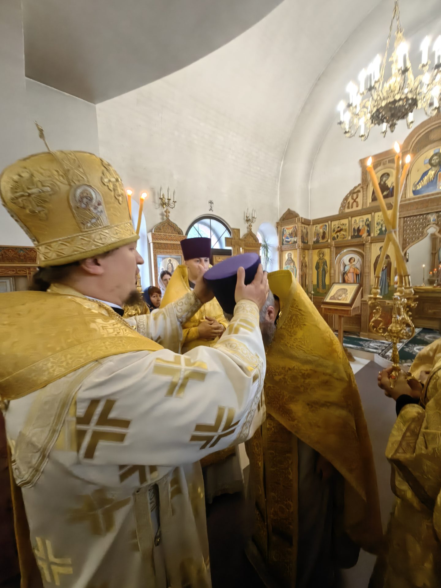 У входа в храм епископа встречали настоятель священник Алексий Скрипкин и ктитор храма Николай Николаевич Кленов с прихожанами.