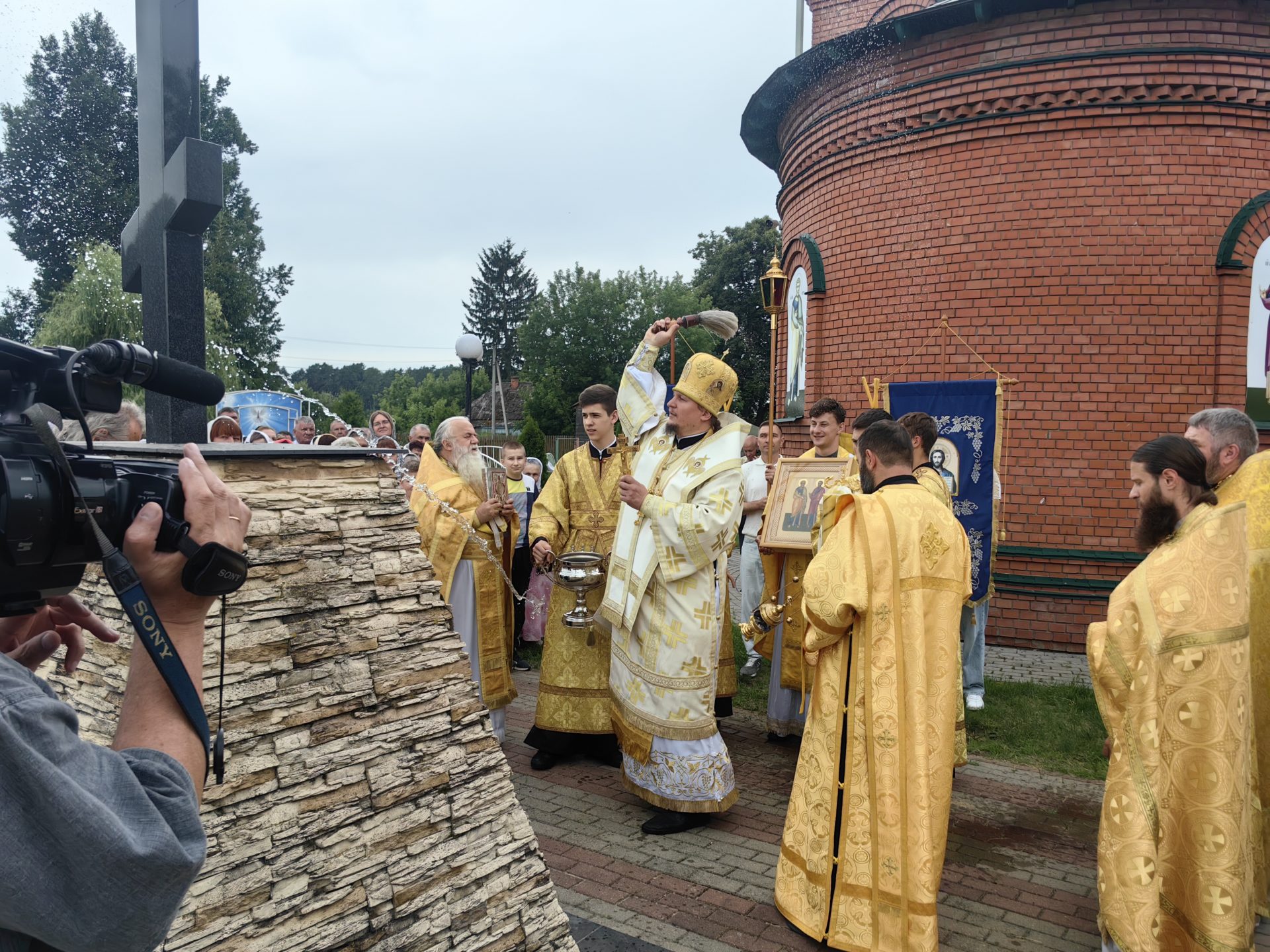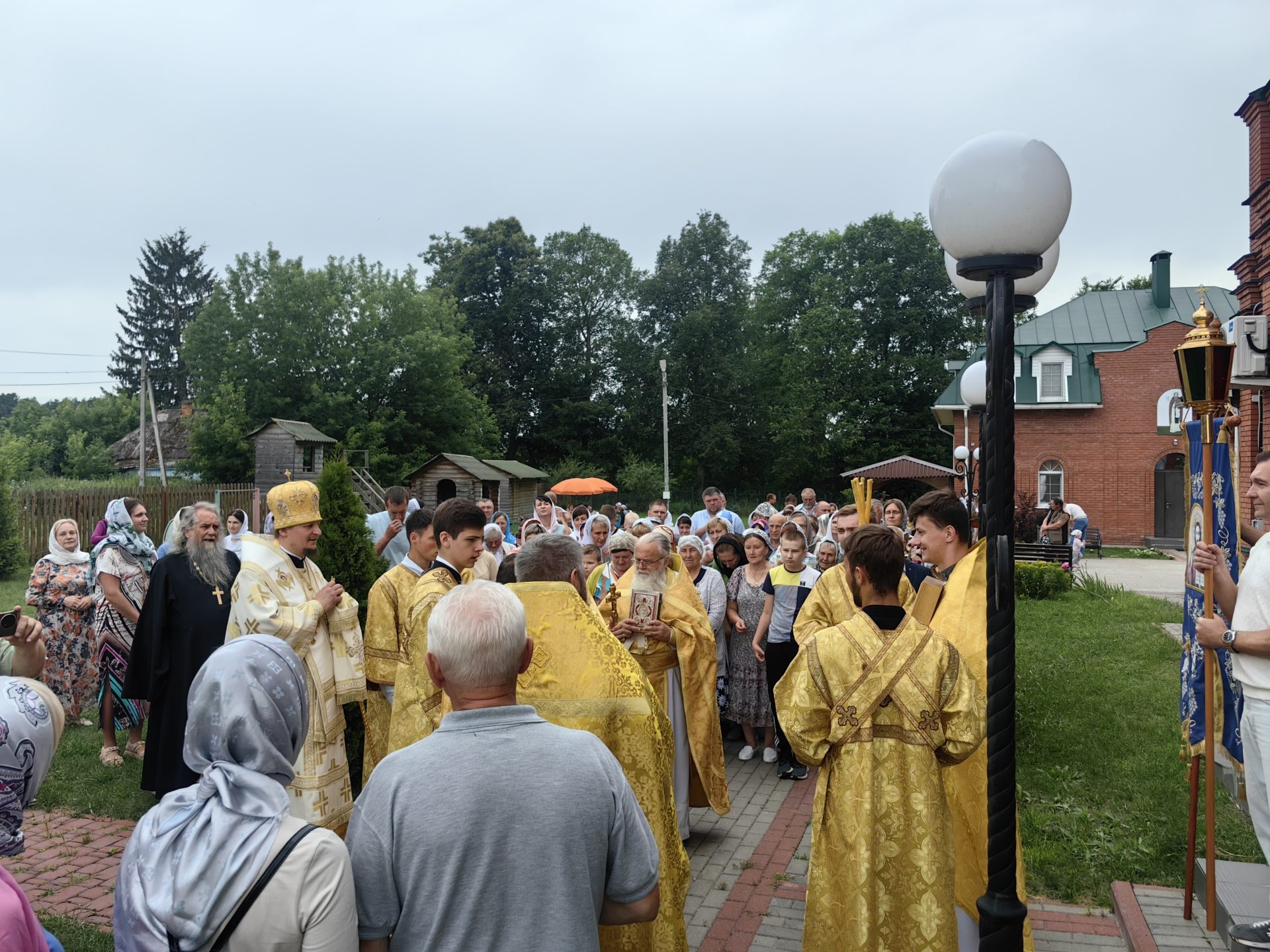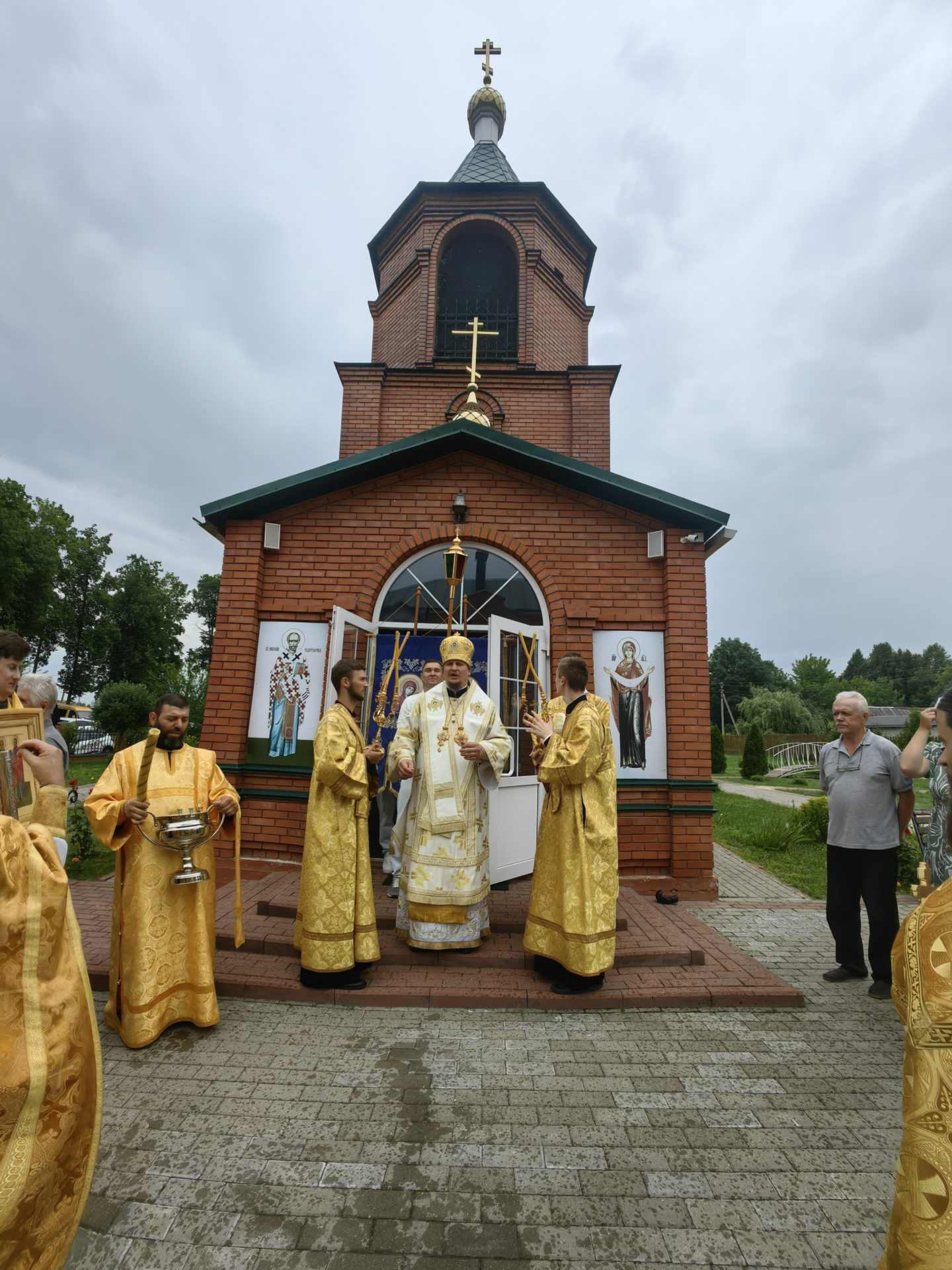 По отпусте Литургии был совершен молебен святым апостолам с Крестным ходом вокруг храма. Епископ и священники окропили верующих святой водой.