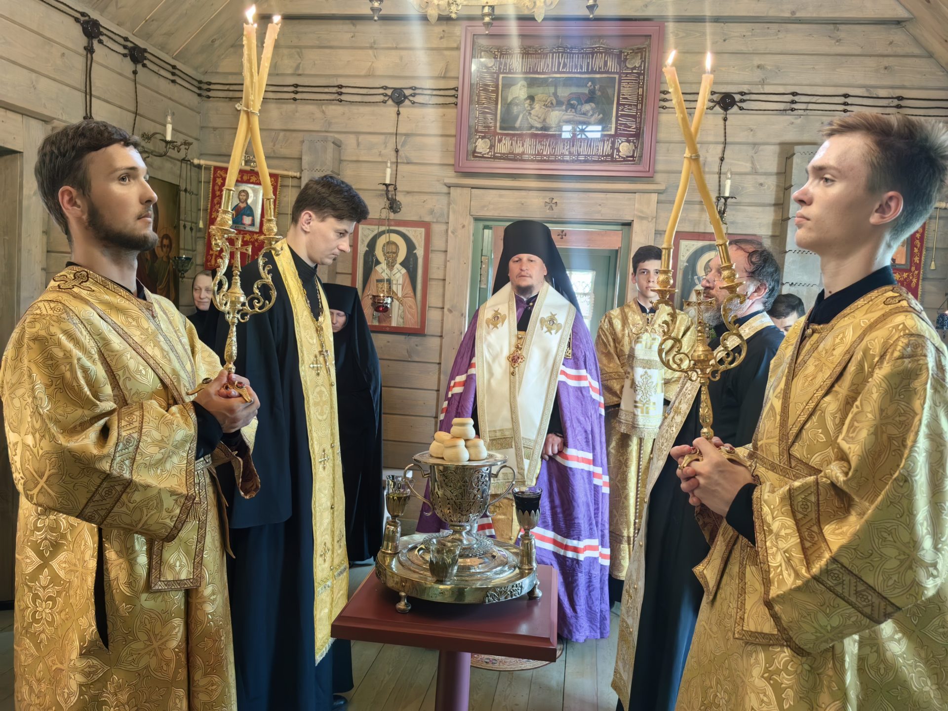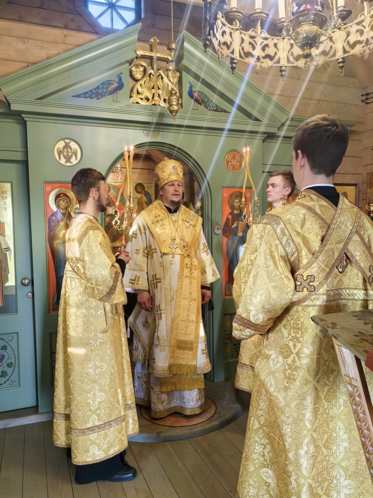 Епископу сослужили — заведующий канцелярией Козельской епархии священник Филипп Лисенков, священник Георгий Грачев и диакон Сергий Акопян.