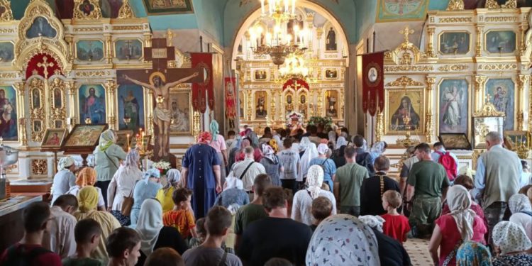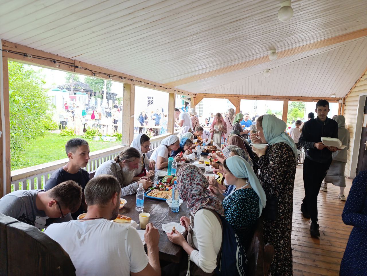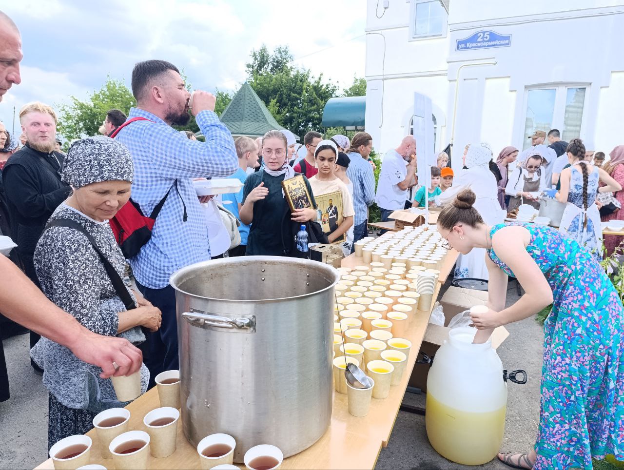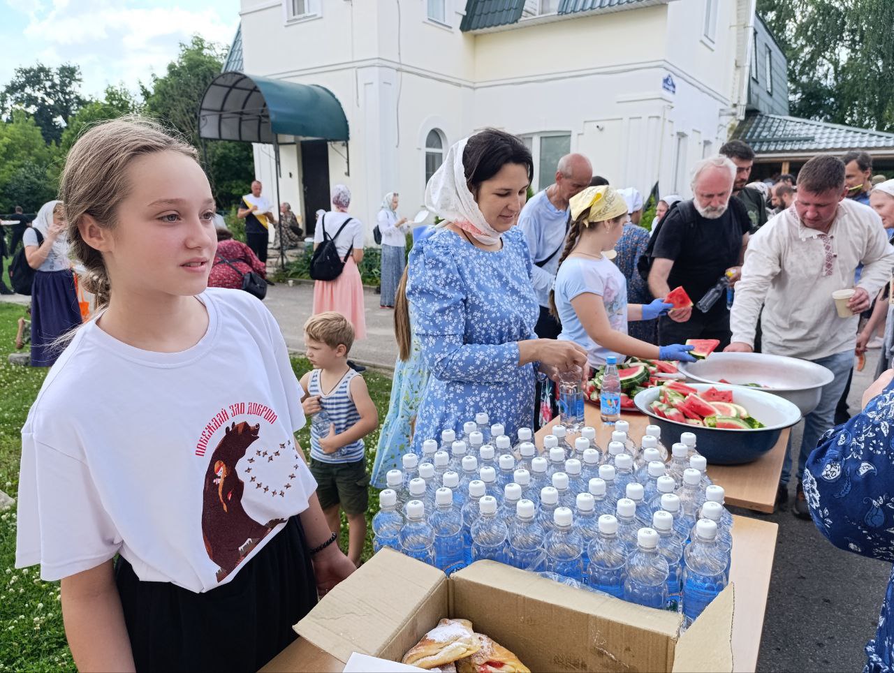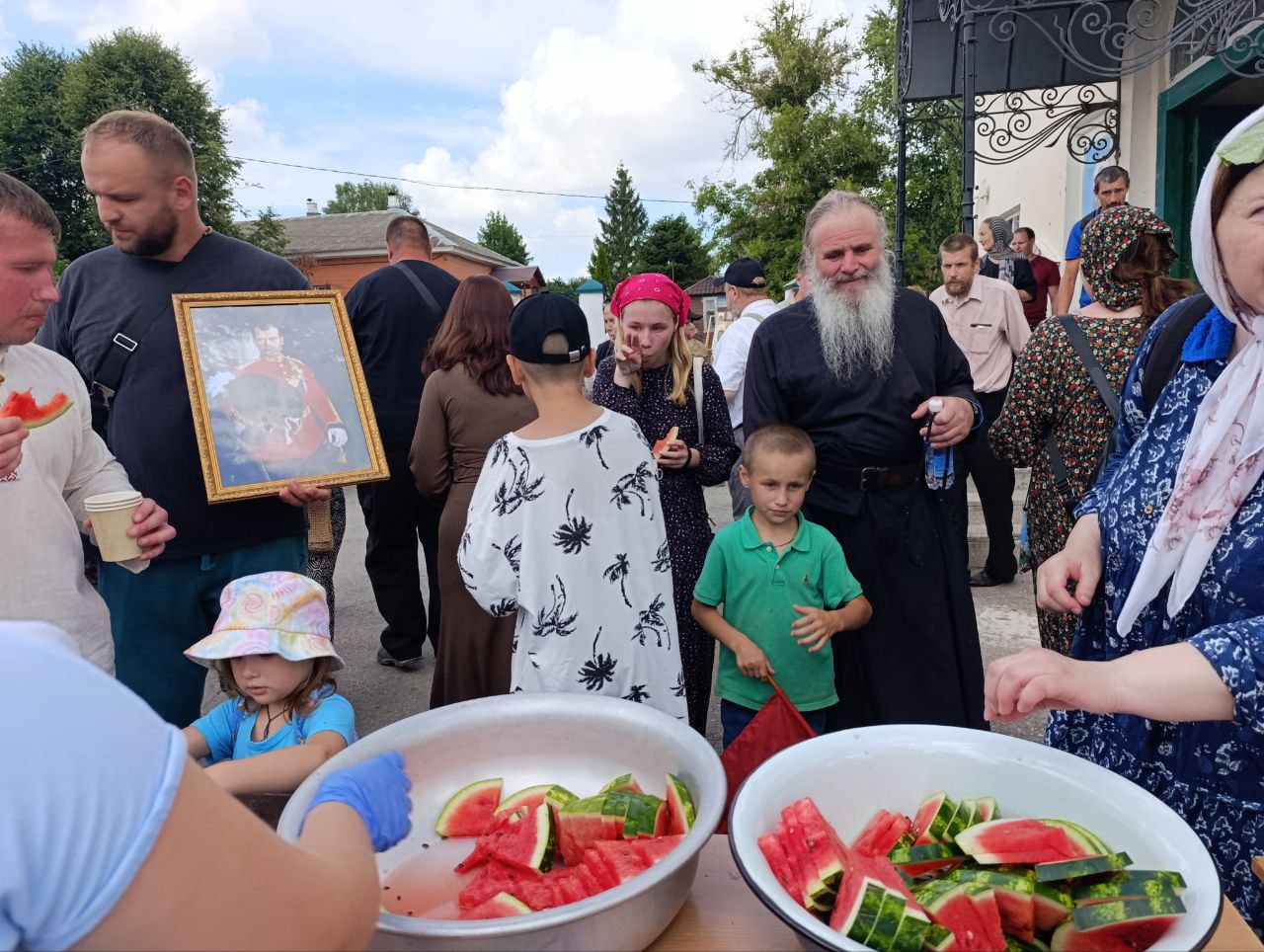 Днём Царский крестный ход, начинающийся в Оптиной пустыни, сделал остановку в Благовещенском храме, где был совершён молебен. Прихожане и волонтёры приготовили для крестоходцев обед, после которого крестный ход вернулся в Оптину пустынь.