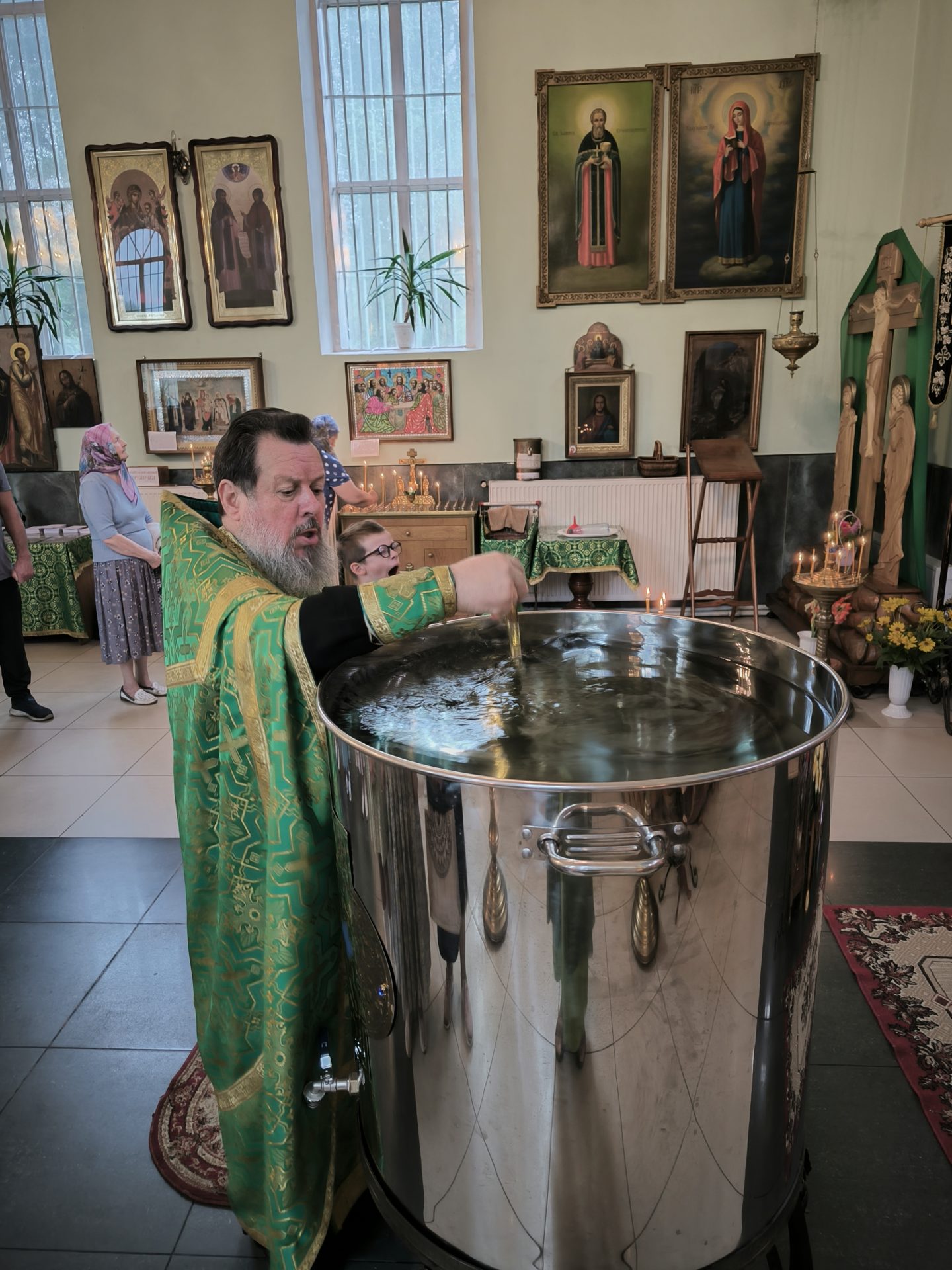 Праздничный водосвятный молебен  и Божественную литургию  возглавил   настоятель храма преподобного Сергия Радонежского протоиерей Василий Биляк. За Божественной литургией были вознесены особые прошения и молитва о Святой Руси. По благословению Святейшего Патриарха Московского и всея Руси Кирилла эта сугубая молитва совершается во всех храмах Русской Православной Церкви за каждым богослужением.