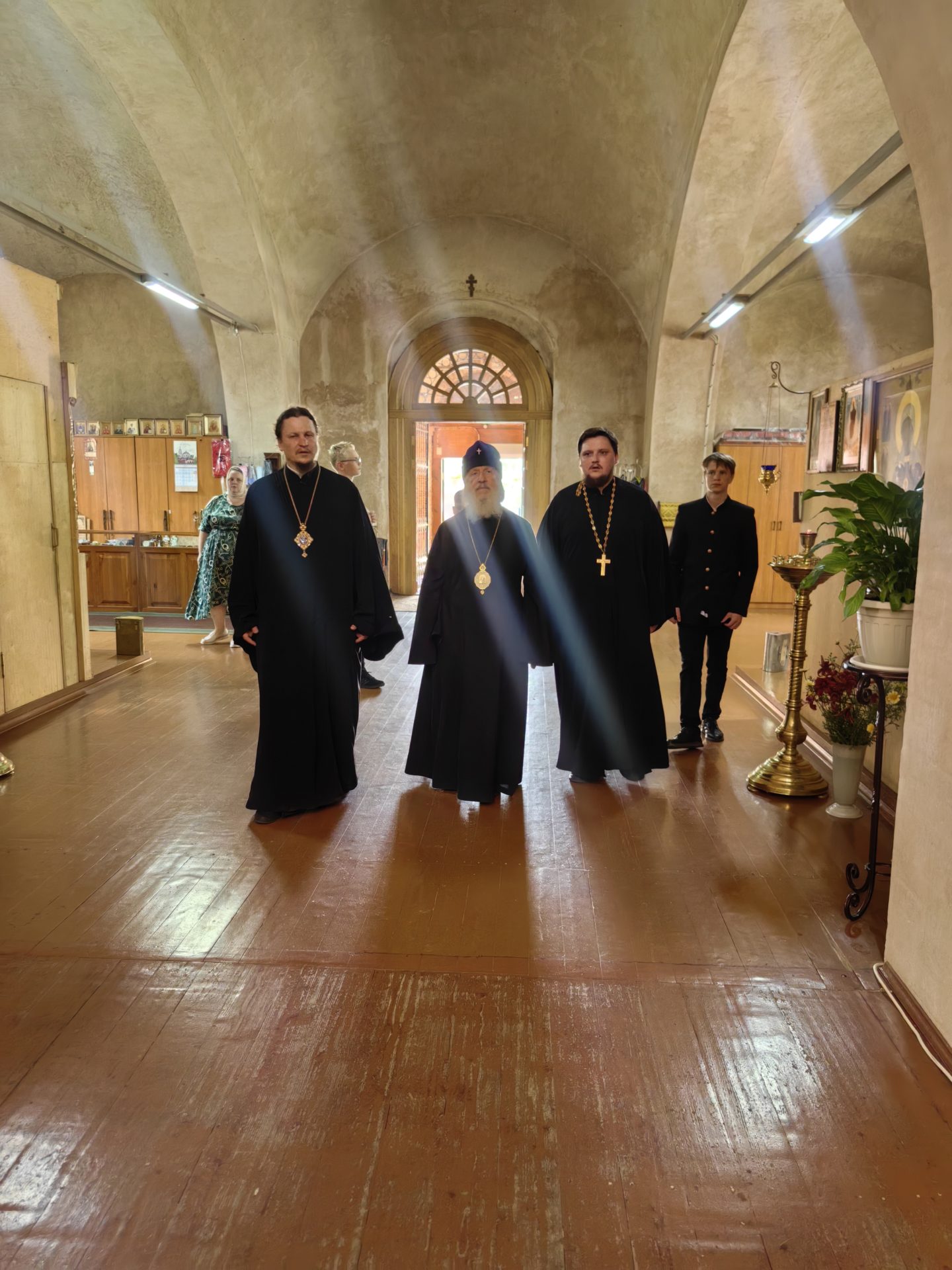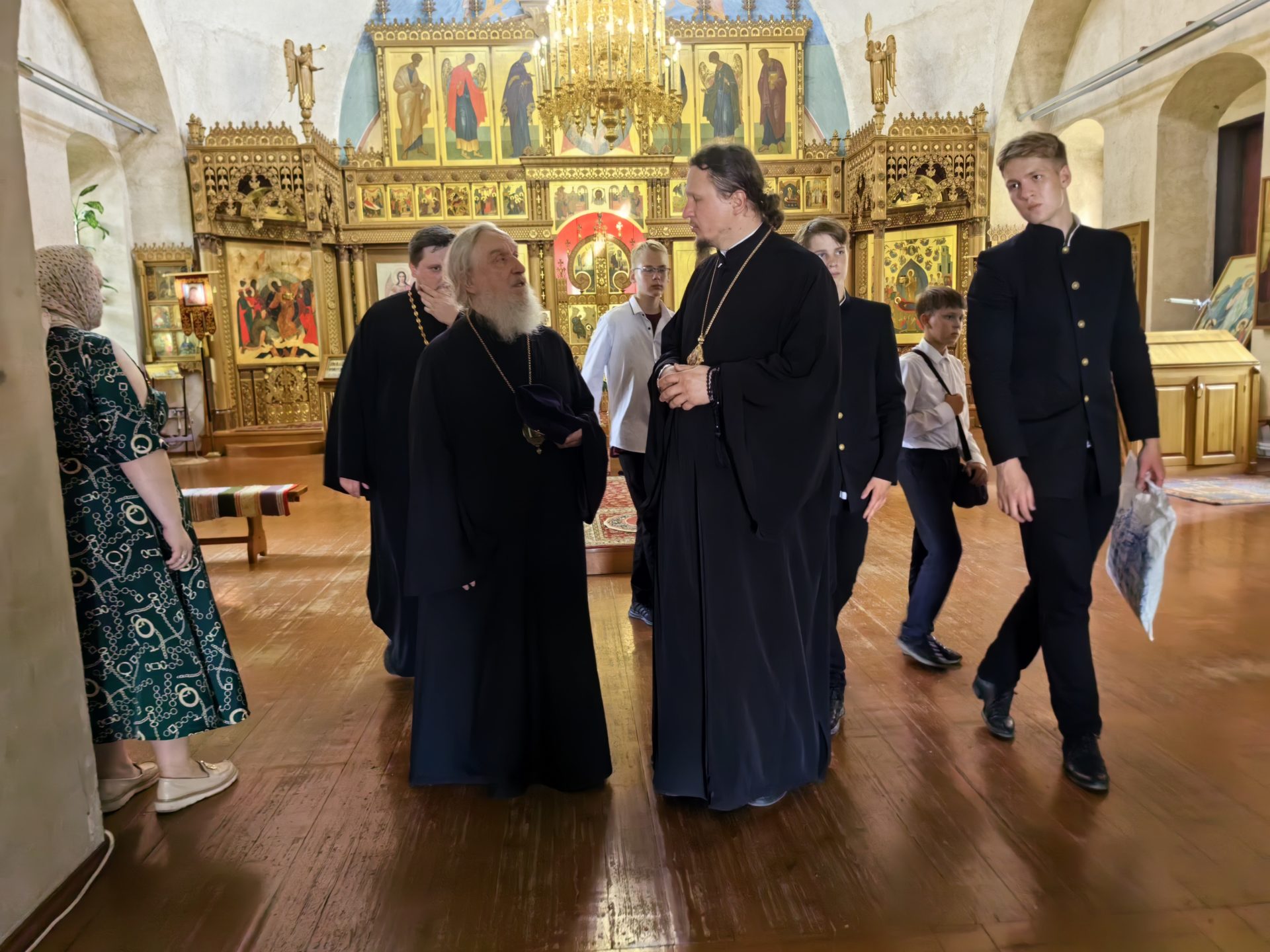 Митрополит Димитрий осмотрел Успенский кафедральный собор, у входа в храм архипастырей встречал священник Иоанн Майоров, настоятель Успенского Собора.