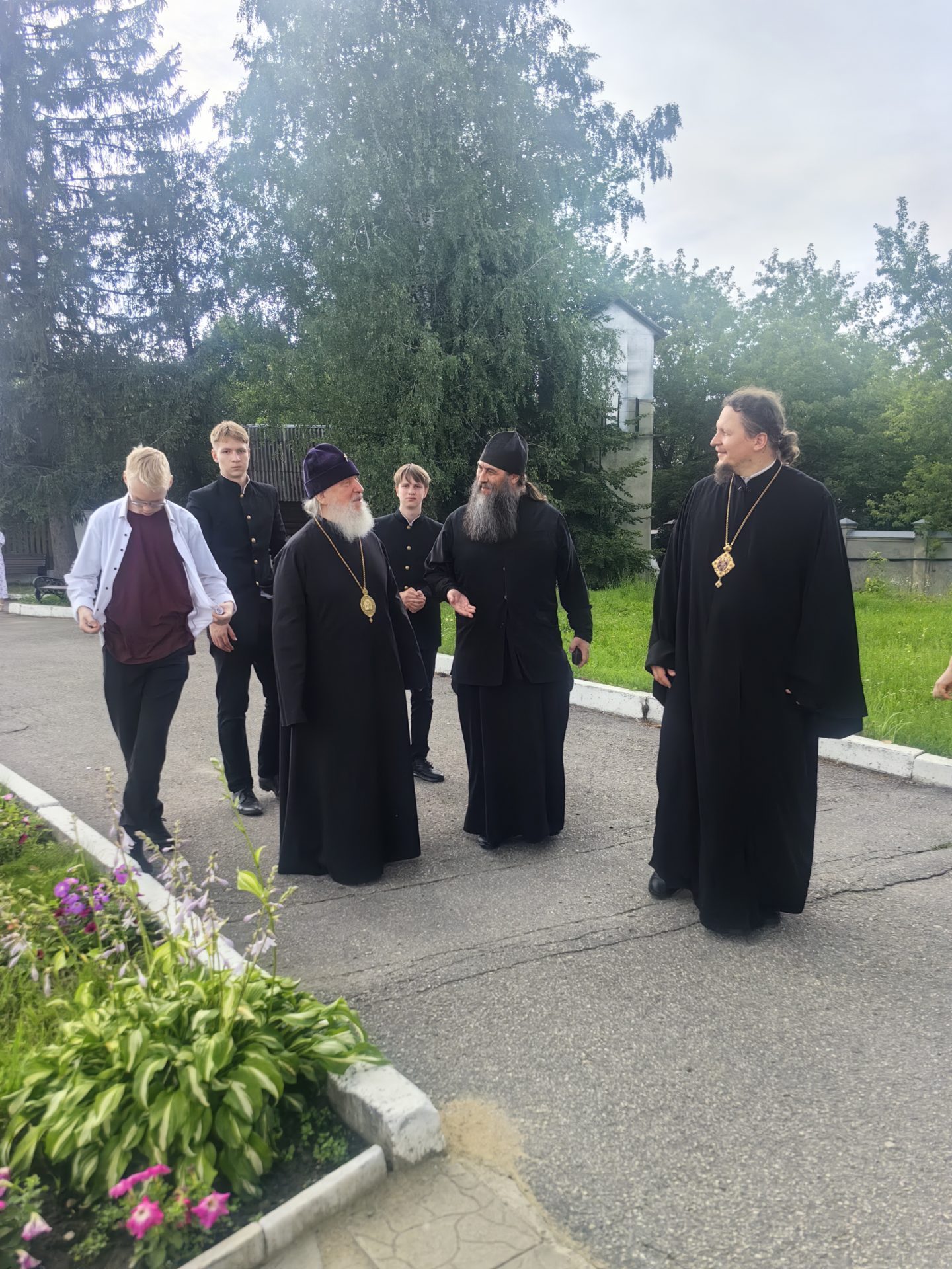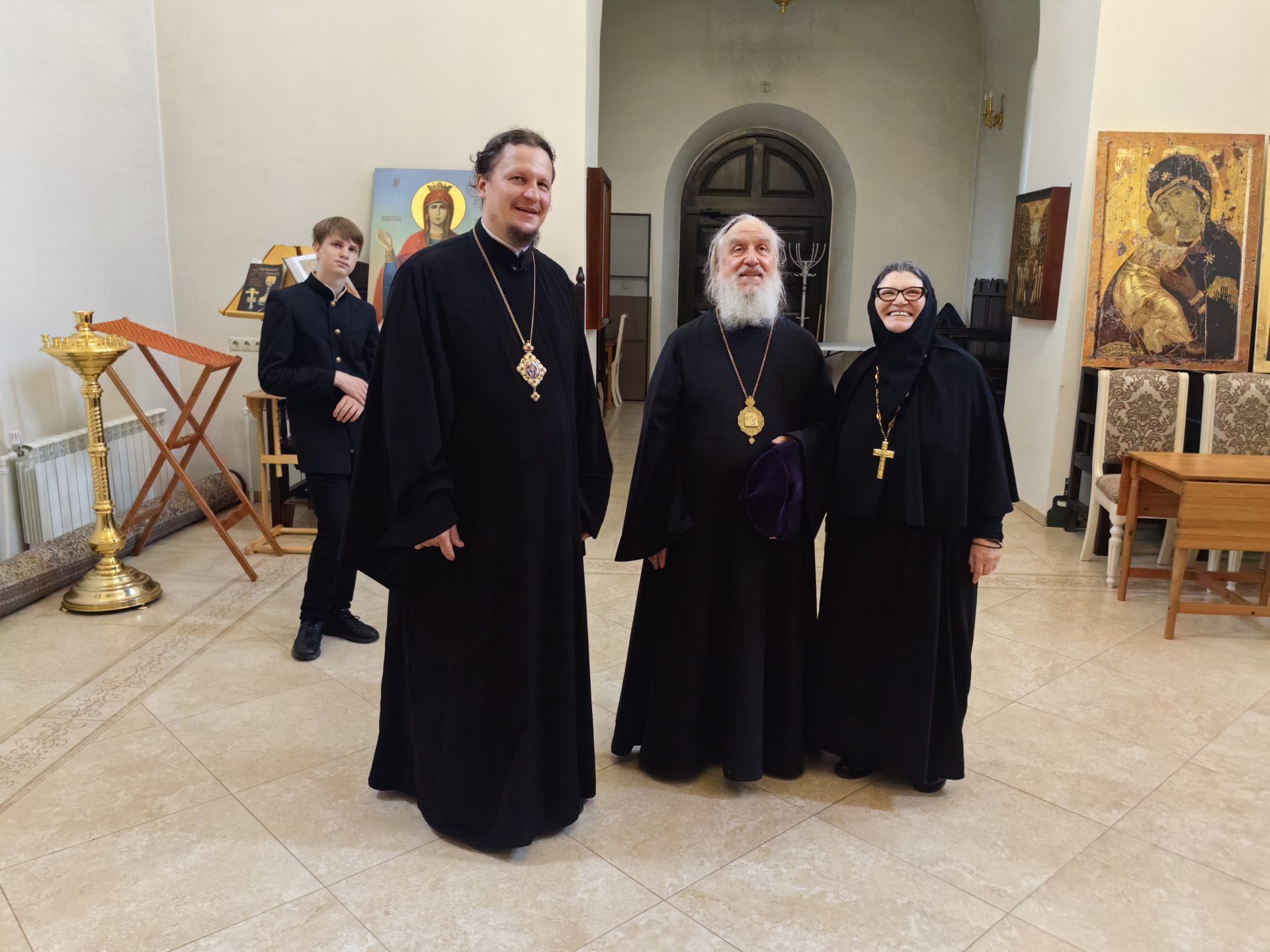 Также митрополит Димитрий посетил Вознесенский женский монастырь и поклонился чтимой Ахтырской иконе Божией Матери. В обители архипастырей сопровождала старшая сестра обители монахиня Вероника (Абрамова).
