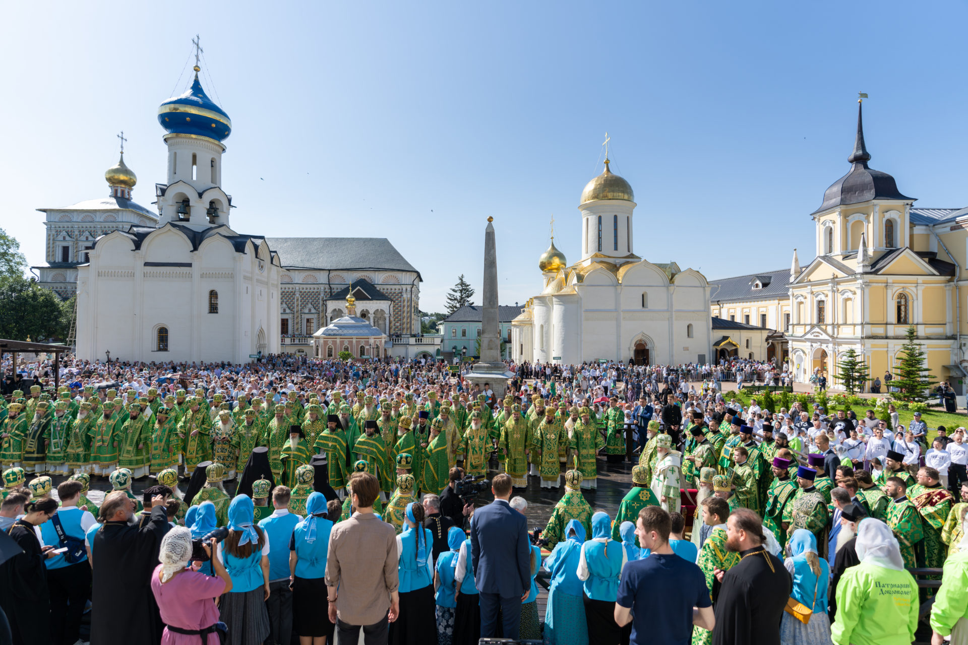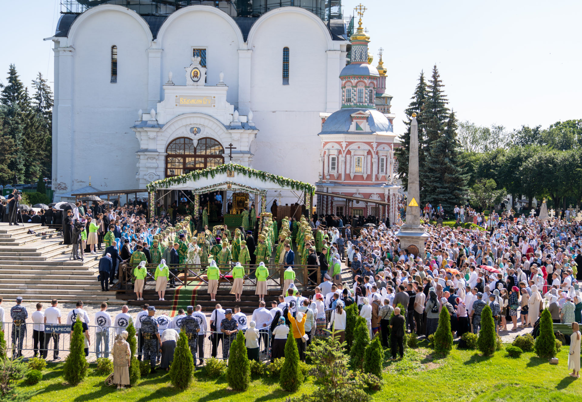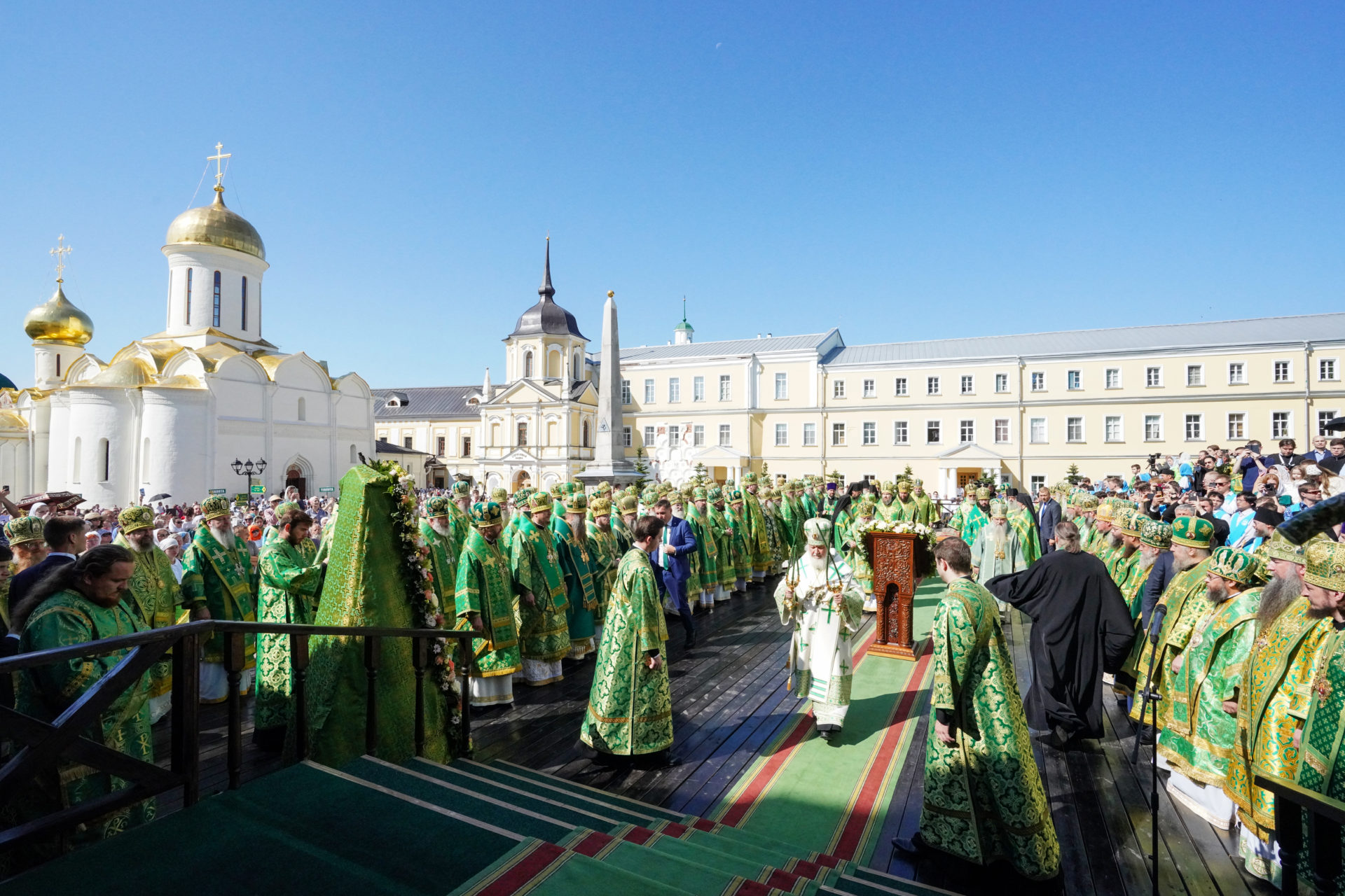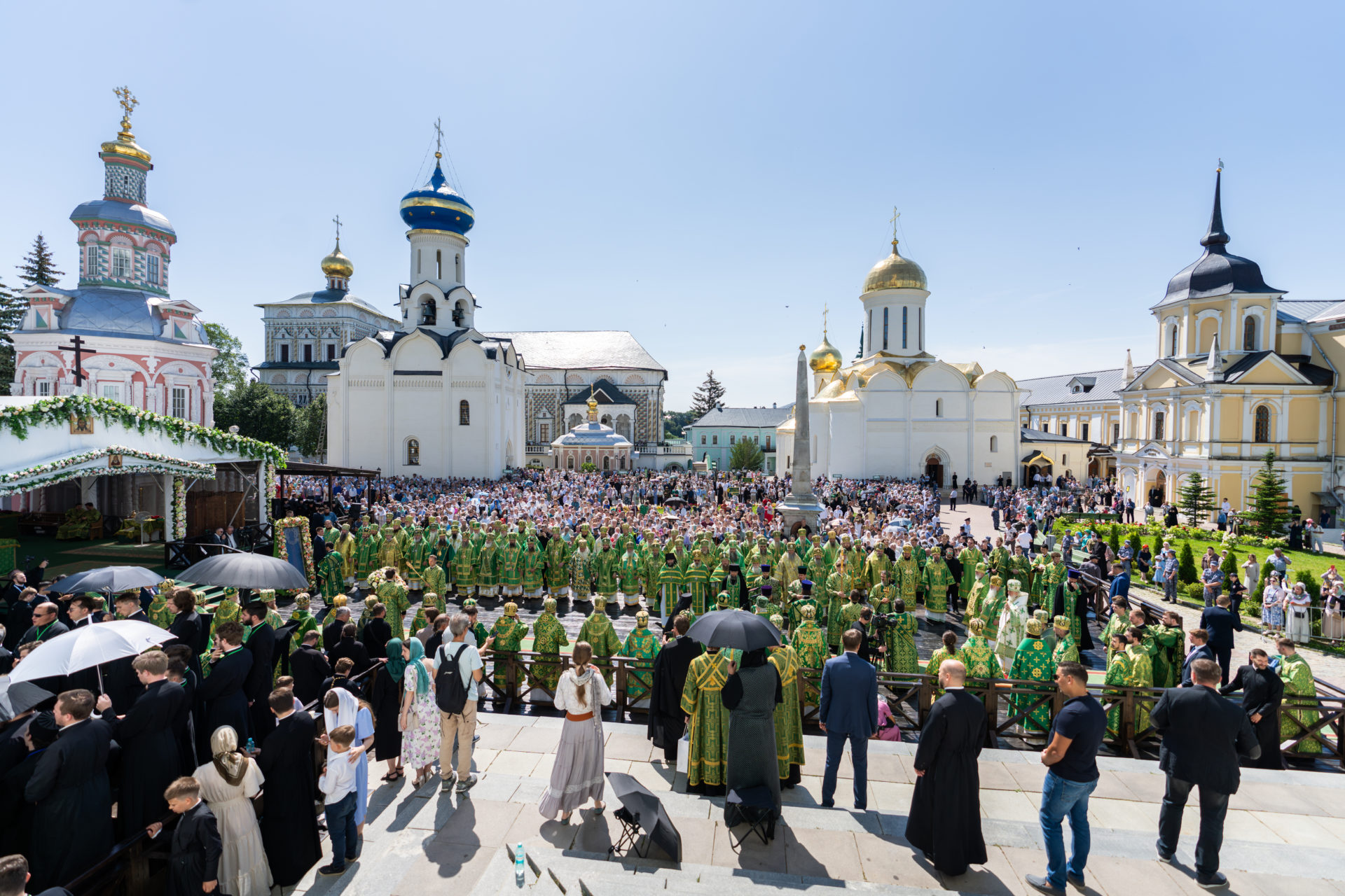 18 июля Святейший Патриарх Кирилл возглавил служение Божественной Литургии на соборной площади обители преподобного Сергия. В соборном служении приняли участие более ста архипастырей, множество священников и диаконов, а также большое стечение верующих.