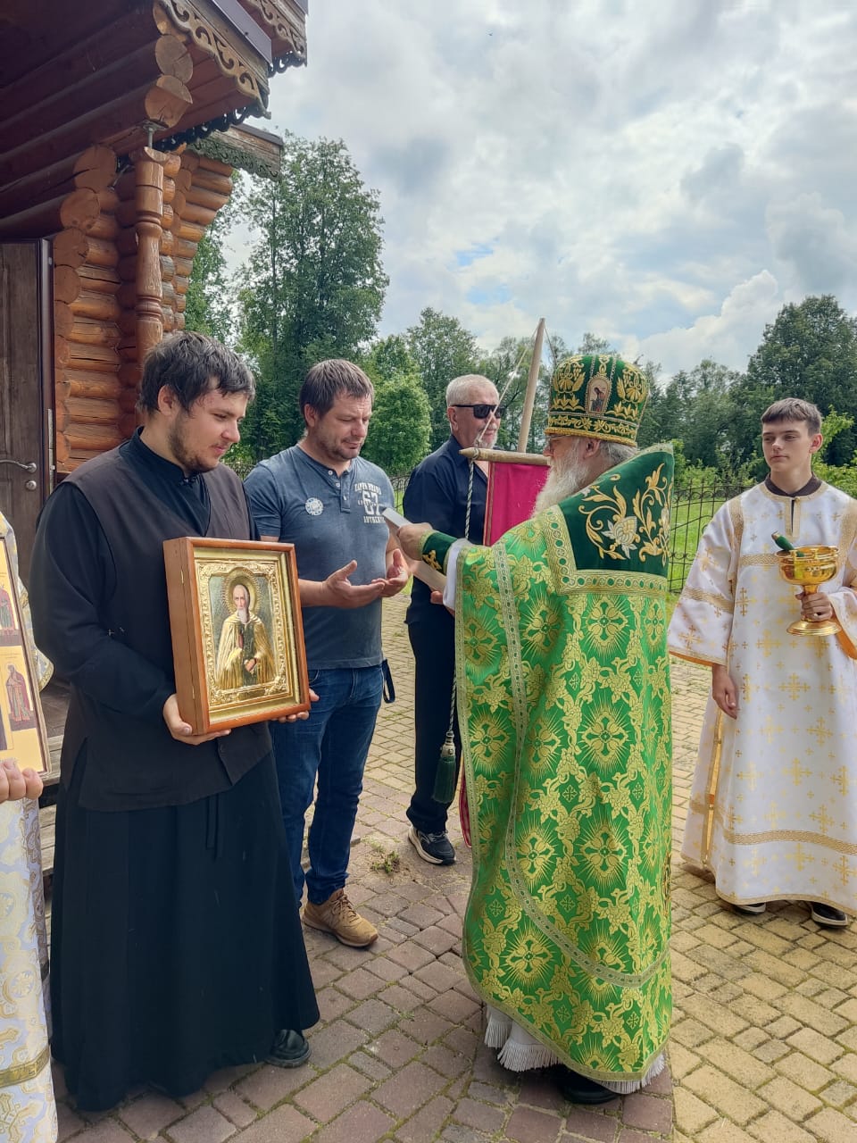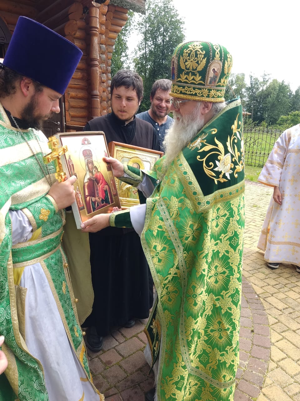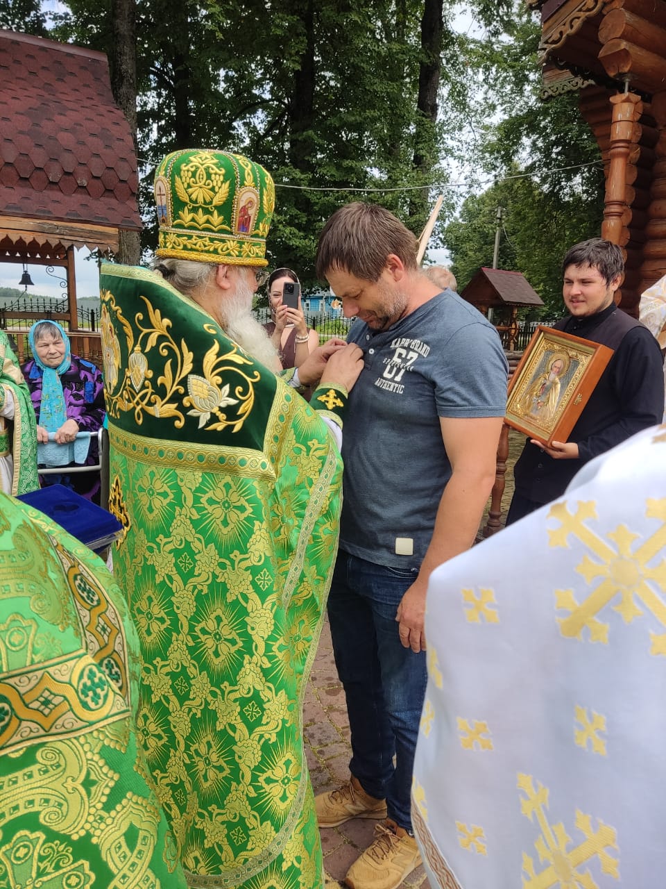 В юбилейный праздничный день протоиерей Алексий Жиганов поздравил всех с престольным праздником и подарил сельскому храму большую аналойную икону Божией Матери «Избавление от бед страждущих», именуемую «Людиновская», а также преподнёс на молитвенную память настоятелю храма отцу Николаю Безручкину небольшую икону Божией Матери «Людиновскую» (с ковчегом).
