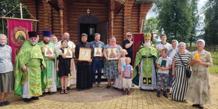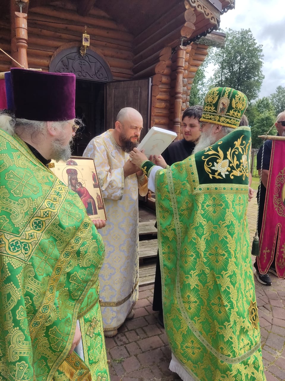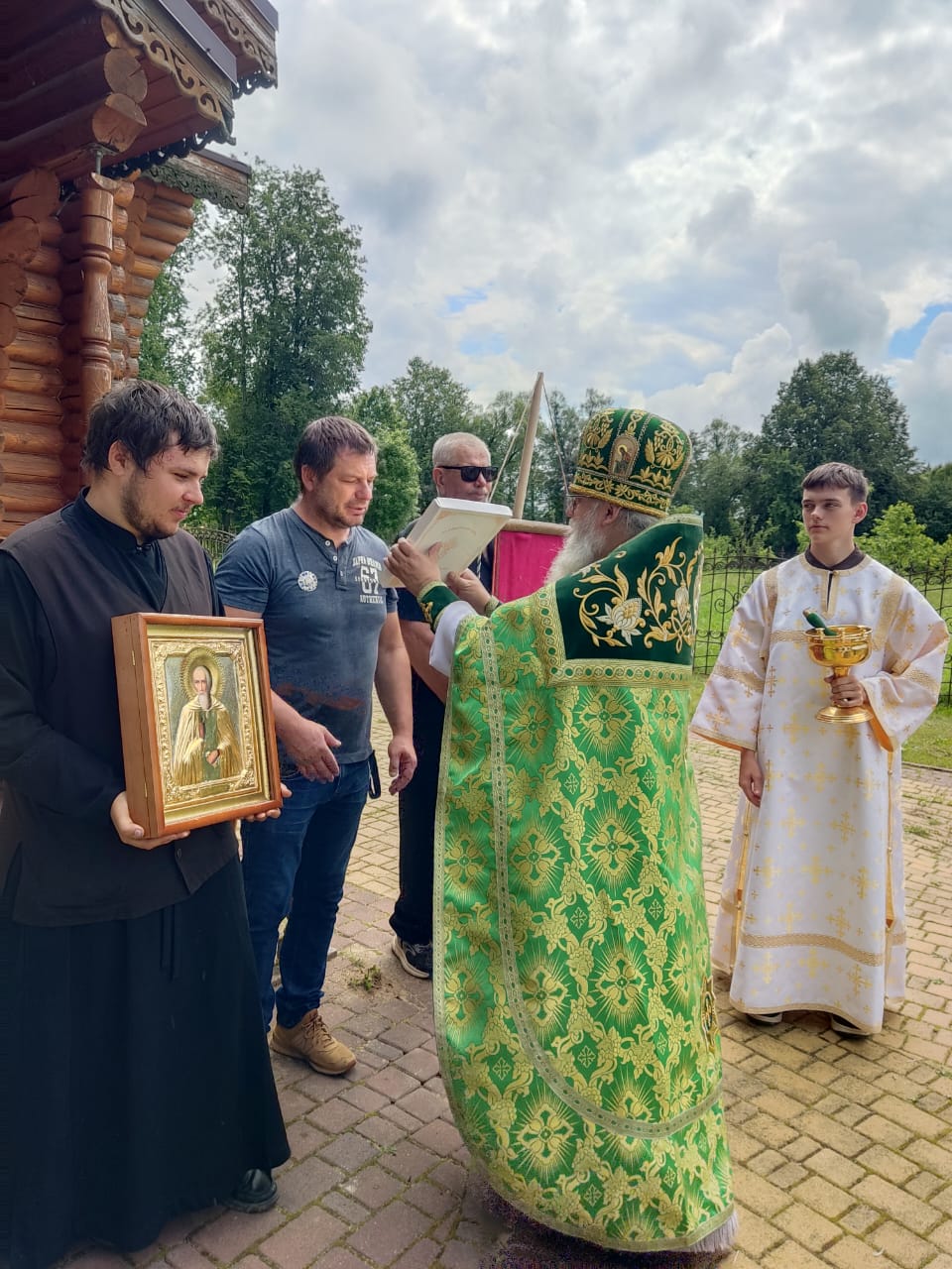 В юбилейный праздничный день протоиерей Алексий Жиганов поздравил всех с престольным праздником и подарил сельскому храму большую аналойную икону Божией Матери «Избавление от бед страждущих», именуемую «Людиновская», а также преподнёс на молитвенную память настоятелю храма отцу Николаю Безручкину небольшую икону Божией Матери «Людиновскую» (с ковчегом).