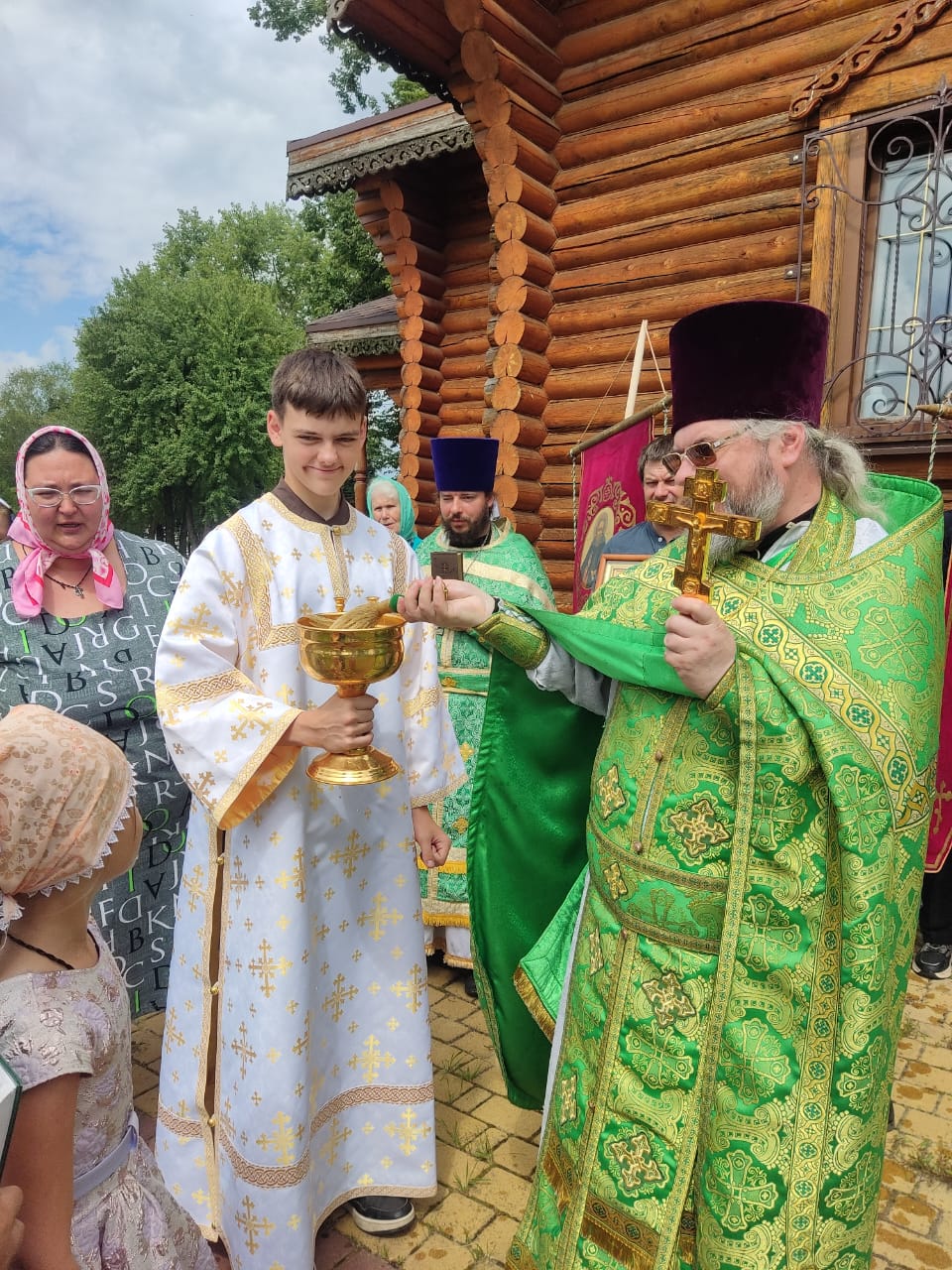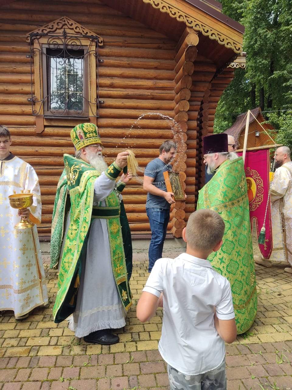 В храме была совершена Божественная литургия, которую возглавил благочинный Людиновского округа. Затем, с праздничными песнопениями и чтением Евангелия, состоялся крестный ход вокруг храма и благодарственный молебен с возглашением здравицы Святейшему Патриарху Кириллу, правящему Архиерею Владыке Макарию, настоятелю храма иерею Николаю Безручкину, строителю и благотворителю храма Олегу Кондакову, а также Президенту России Владимиру Владимировичу Путину, христолюбивому воинству Российскому и всем православным христианам.