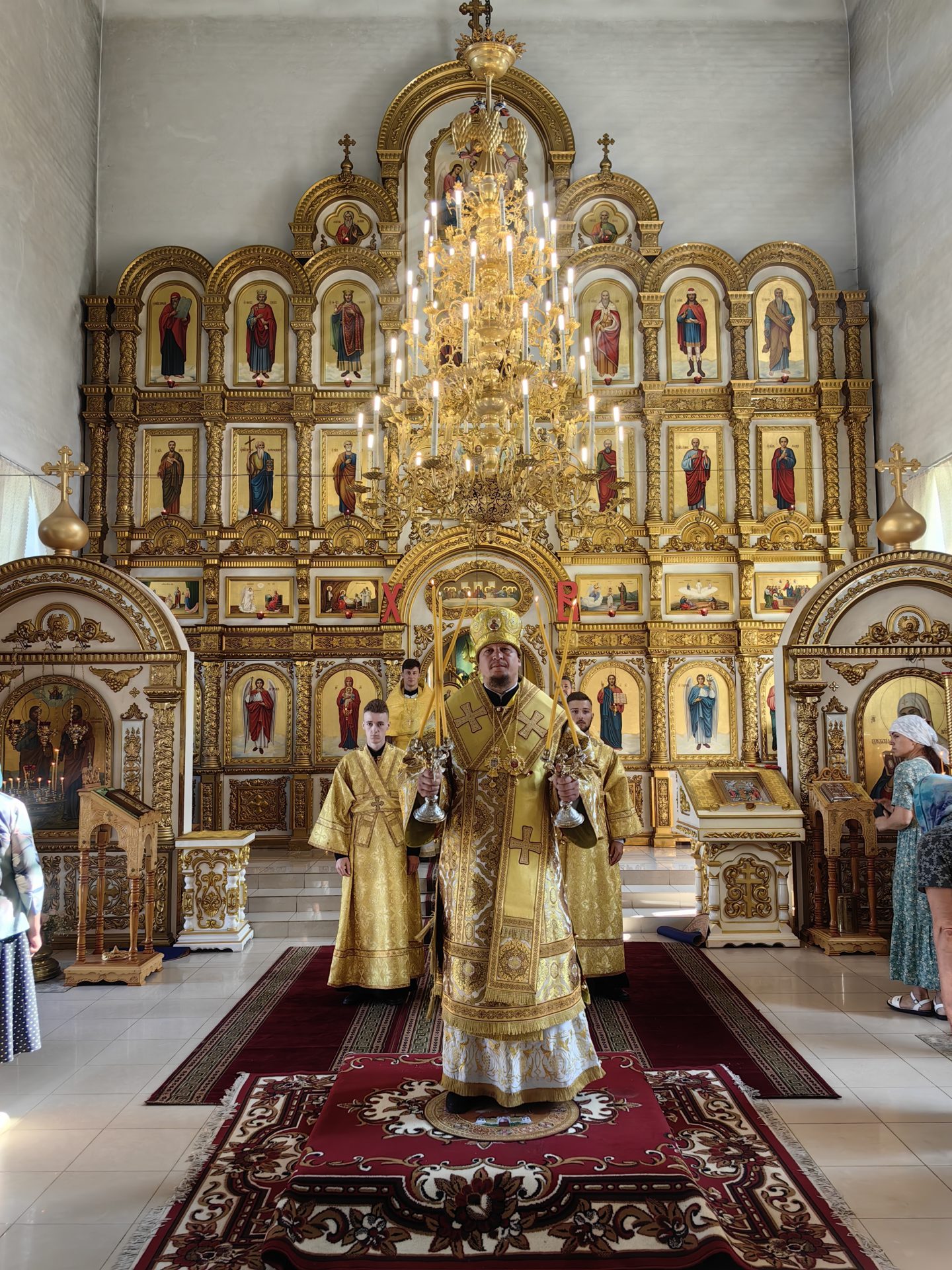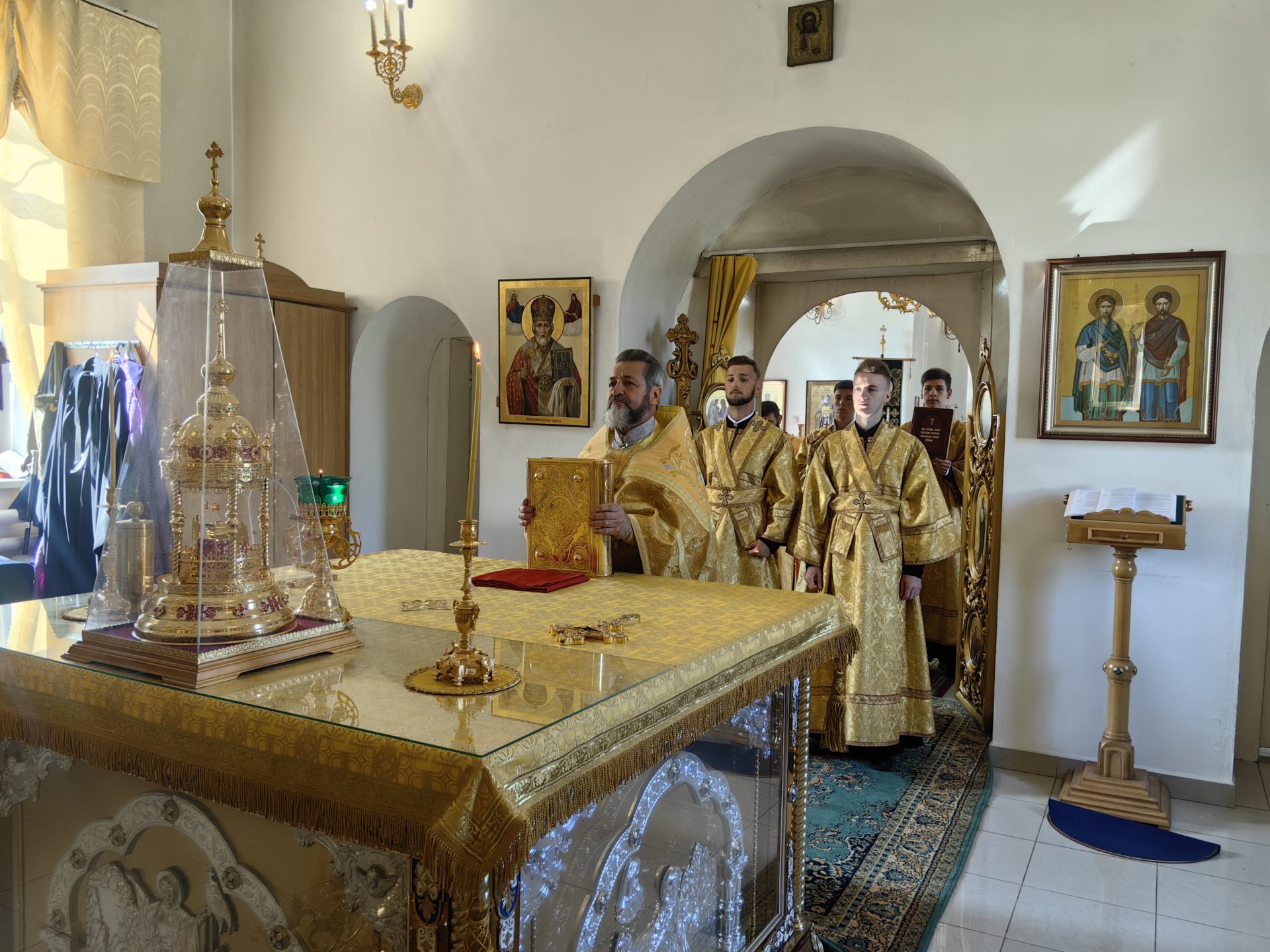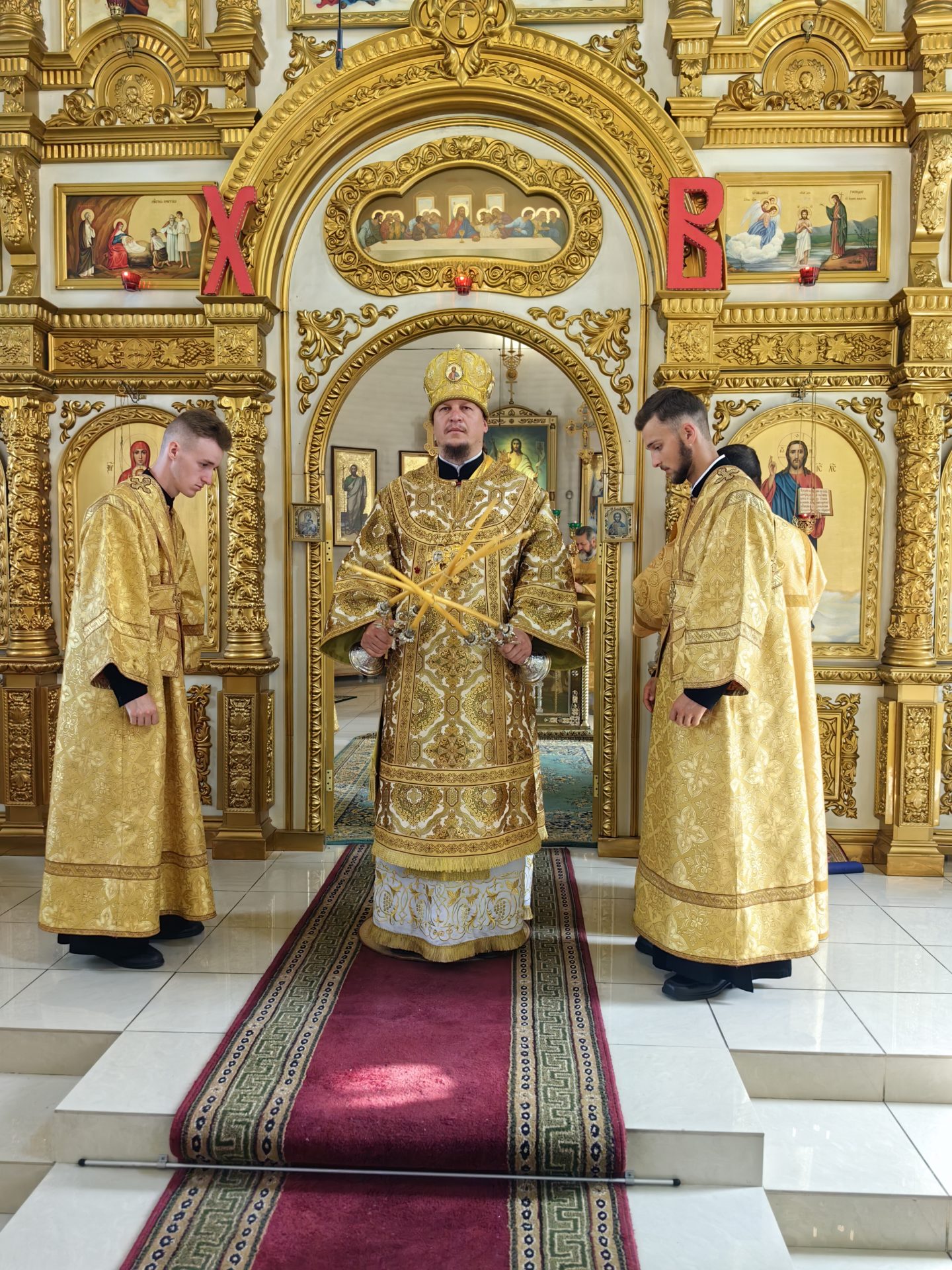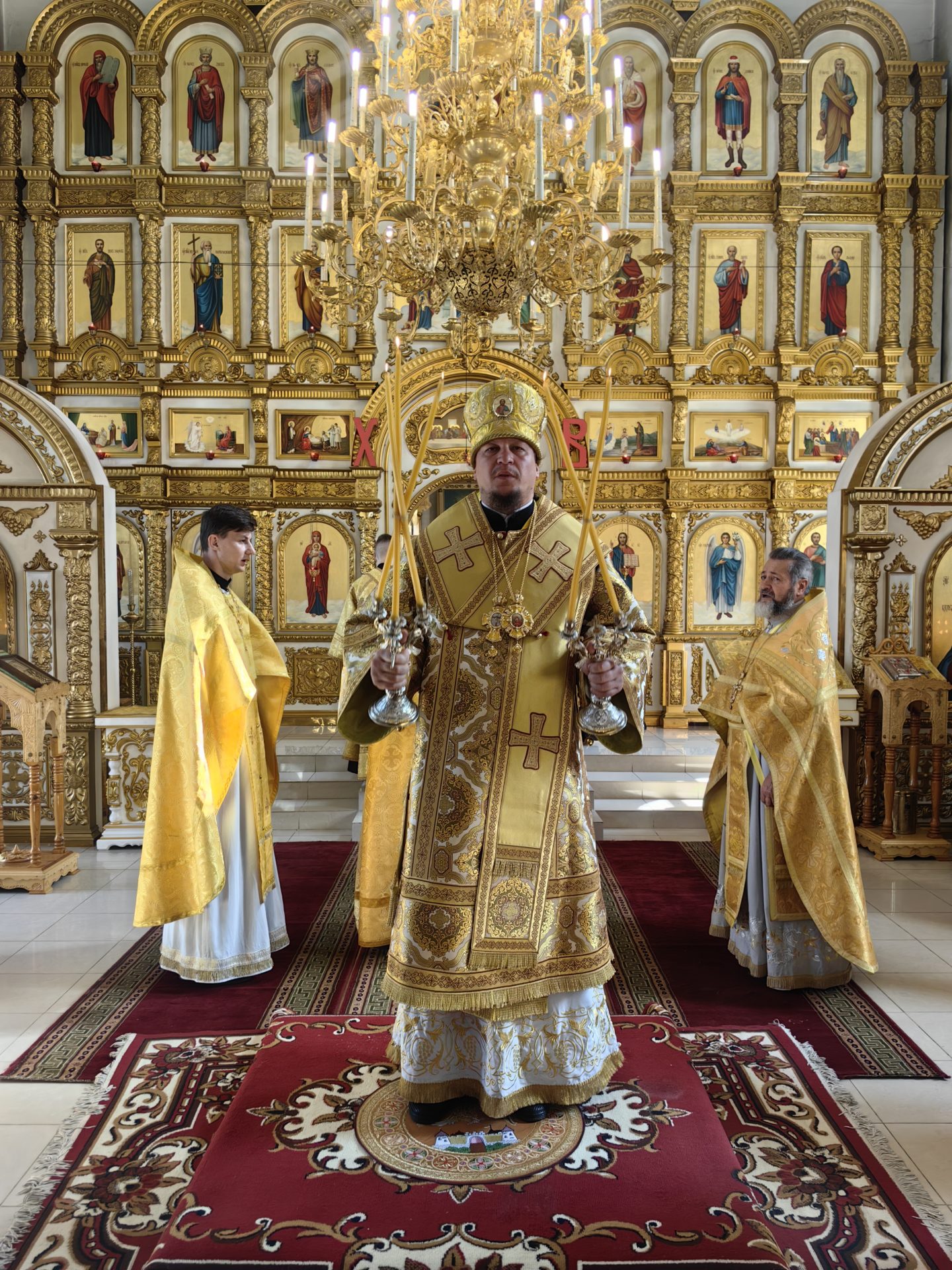 Архипастырю сослужили: настоятель храма благочинный Думиничского церковного округа протоиерей Иоанн Староста, заведующий канцелярией Козельской епархии священник Филипп Лисенков, диакон Сергий Акопян.
