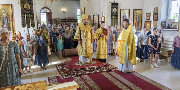 20 июня епископ Козельский и Людиновский Макарий совершил Божественную Литургию в храме святых мучеников Космы и Дамиана п. Думиничи.