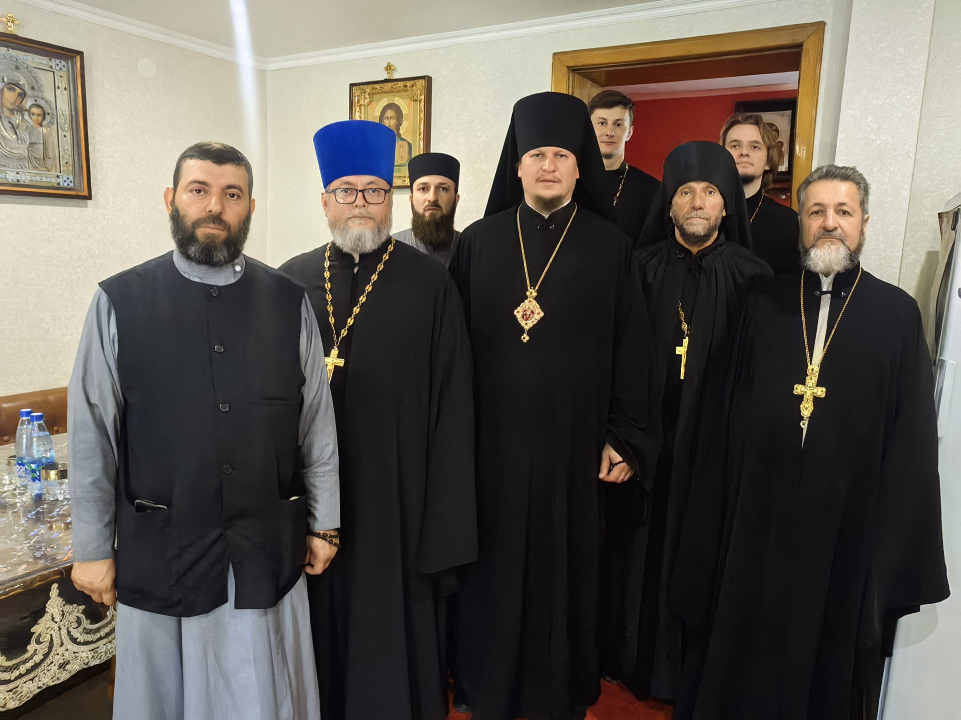 По окончании богослужения епископ Макарий встретился с духовенством Думиничского благочиния. В ходе встречи обсуждались вопросы организации приходской жизни, миссионерской работы и книгораспространения.