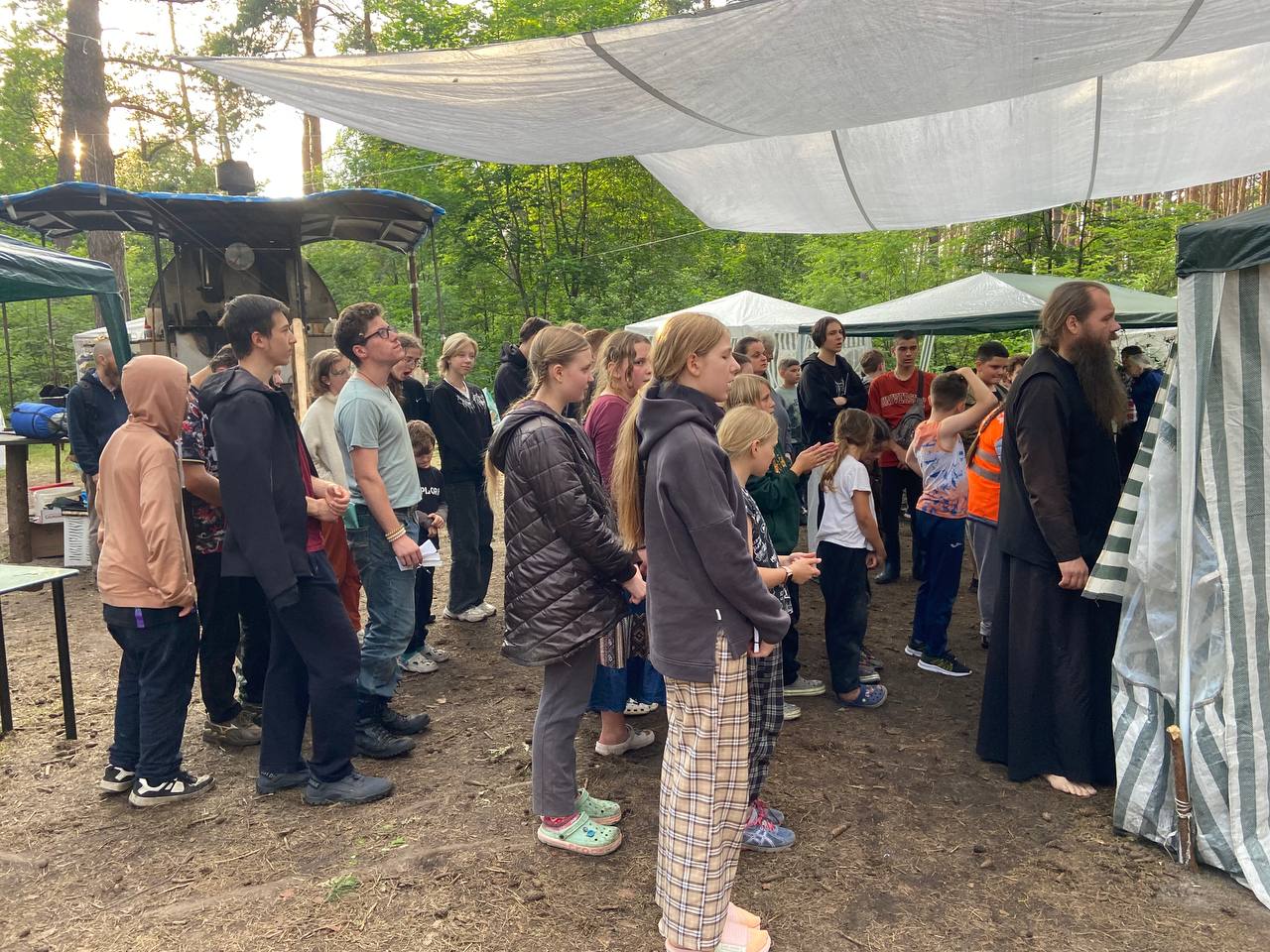 Иерей Евгений  проводил с детьми беседы о литургии, исповедовал тех кто готовился ко Святому Причащению. Так же отец Евгений организовывал активные игры, и каждый вечер, после молитвенного правила, совершал Крестный ход вокруг лагеря.