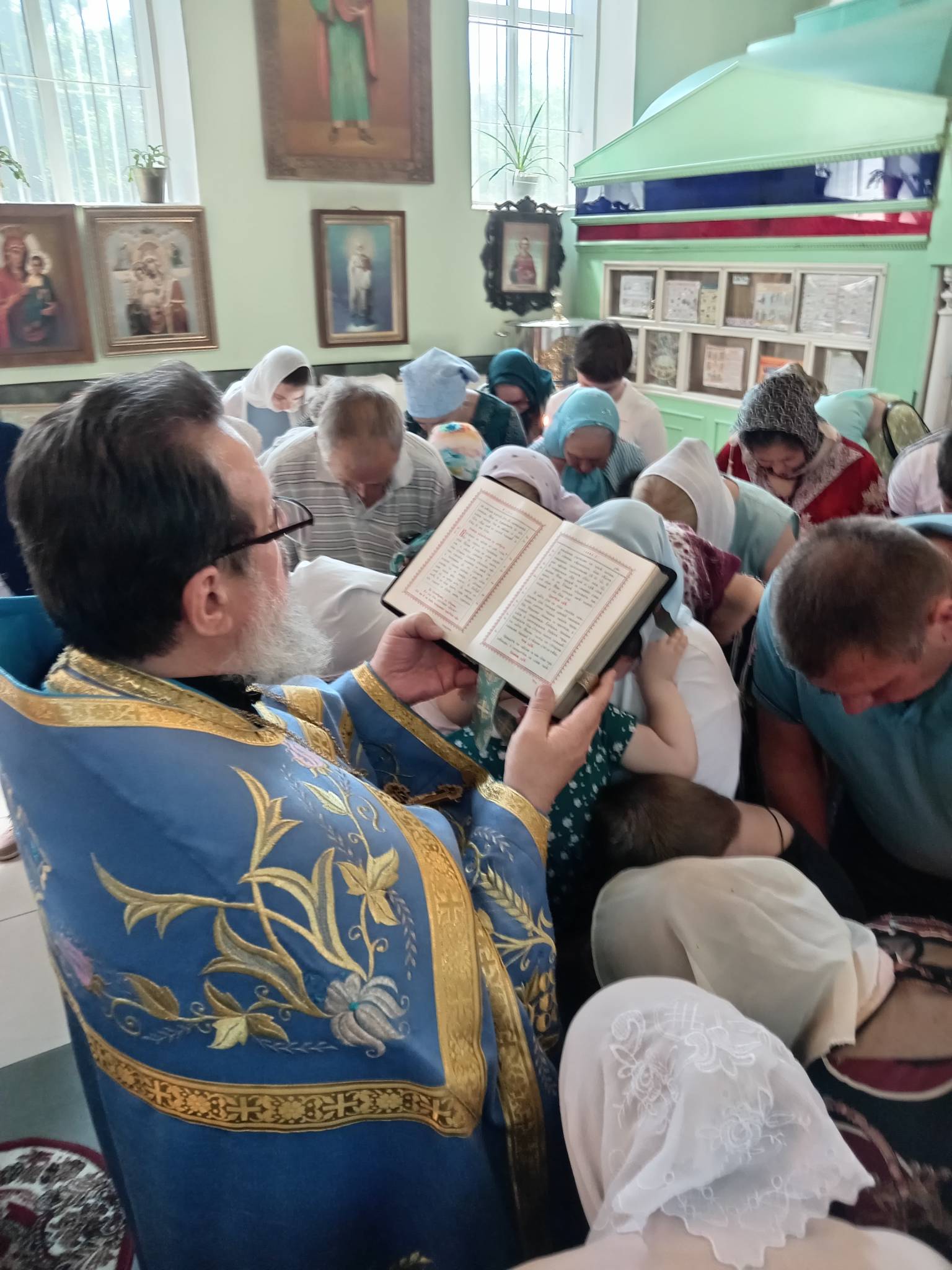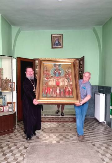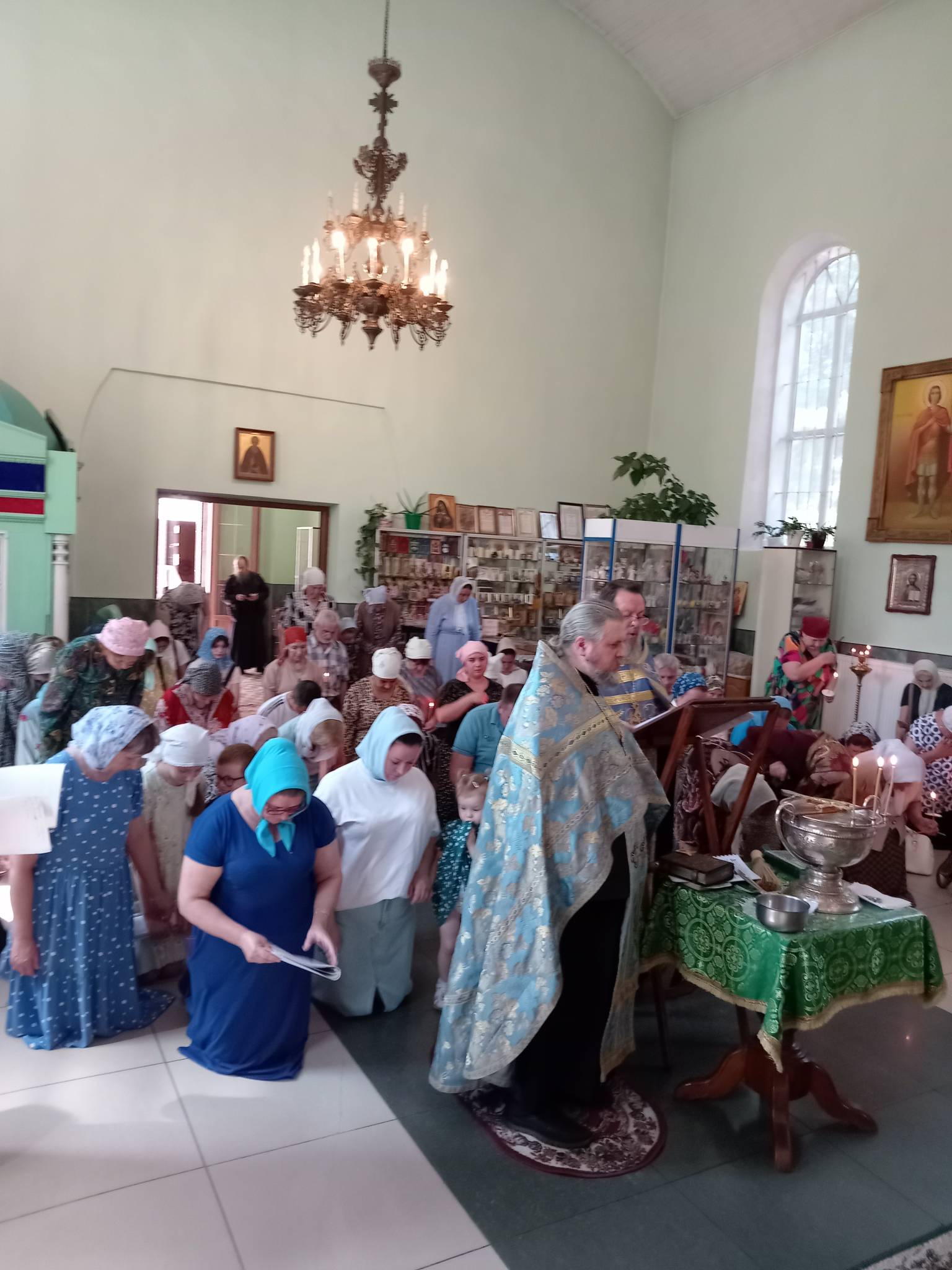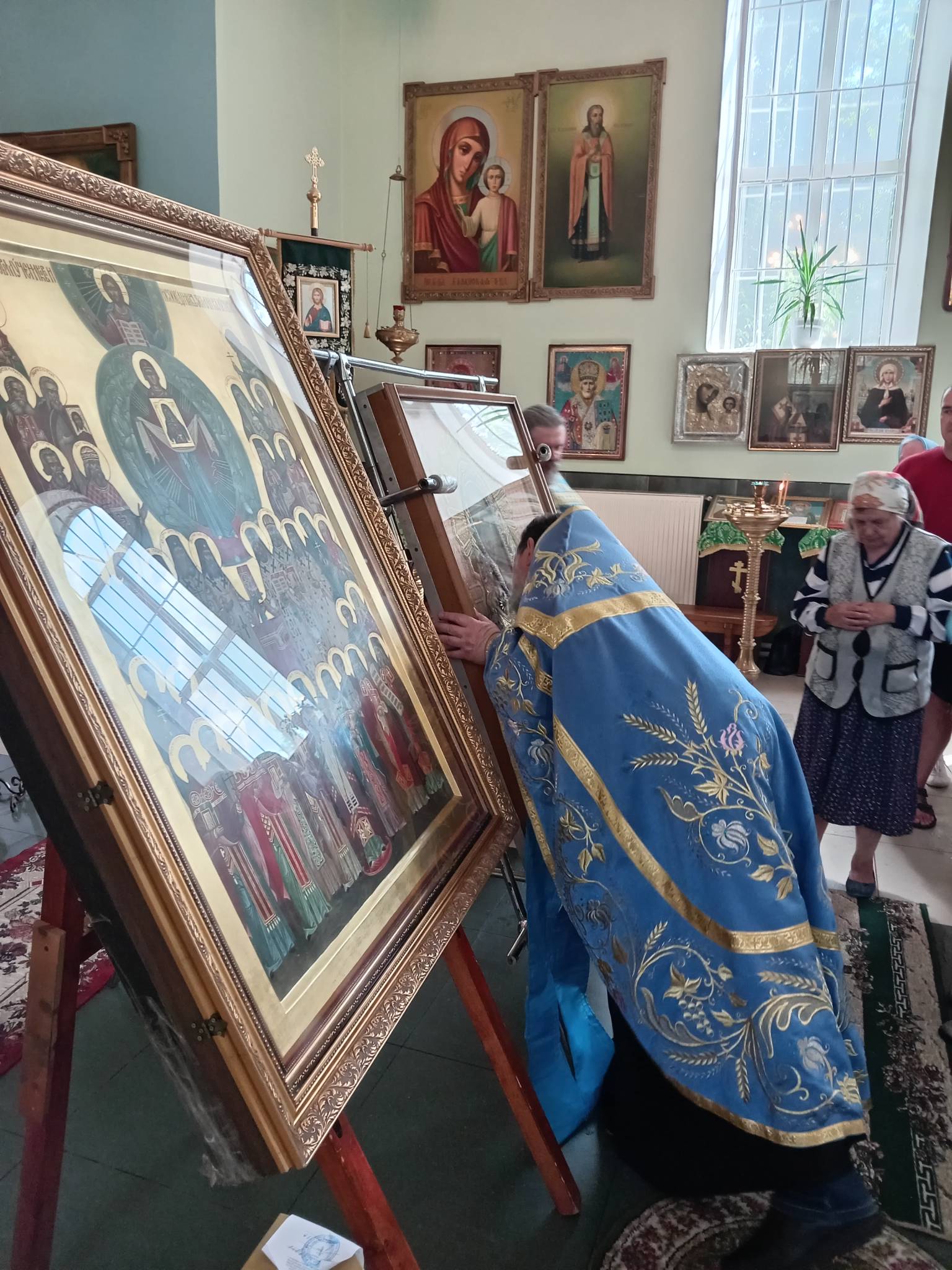 Прихожане храма и жители города Людиново имели возможность помолиться и приложиться к святыням. В храме настоятель храма преподобного Сергия Радонежского протоиерей Василий Биляк, в со служении настоятеля храма Святого Праведного Лазаря протоиерея Михаила Карпенко, совершил молебен с акафистом Божией Матери, а затем обратился к прихожанам с проповедью. «По милости Божией, наш храм вновь посетила чудотворная икона божией Матери «Калужская» и образ «Собор святых новомучеников и исповедников земли Калужской». Перед образом Божией Матери мы молимся и просим, чтобы Она защитила наше отечество, исцелила от разных болезней и недугов. Можно много перечислять те чудеса, которые уже описаны, которые происходили у иконы Божией Матери. Чудотворный образ продолжает помогать людям, с верою и молитвой обращающимся к нему. Главное верить и возносить пламенную молитву каждый раз, как только человек стоит перед Святым ликом. Хочется верить, что каждый верующий сможет почувствовать ту благодать, ту любовь и незримое заступничество оказанное нам!» Затем всех верующих окропили святой водой и все приложились к чудотворному образу Божией Матери и образу  «Собор святых новомучеников и исповедников земли Калужской» . После молебна крестный ход с иконой Калужской Божией Матери отбыл в с.Зикеево.
