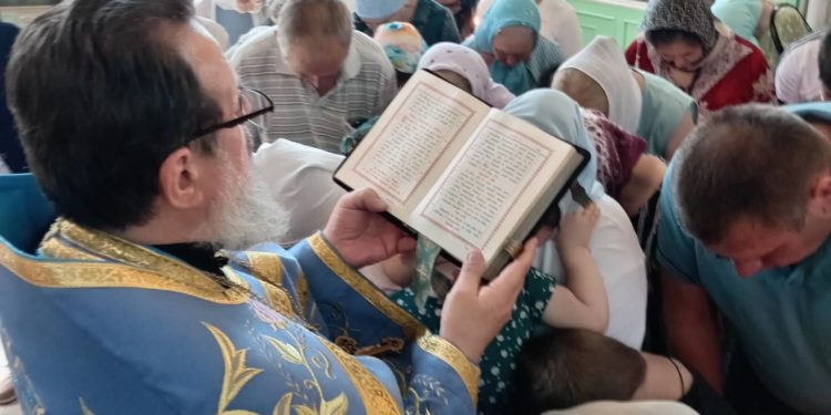 Храм преподобного Сергия Радонежского города Людиново встречает крестный ход с Калужской иконой Божией Матери