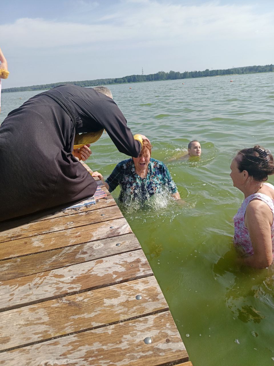 Также всех желающих священник троекратно погружал по традиции в воды озера со словами: «Погружается раб Божий (имярек) в освященные воды во имя Отца, аминь, и Сына, аминь, и Святого Духа. Аминь».