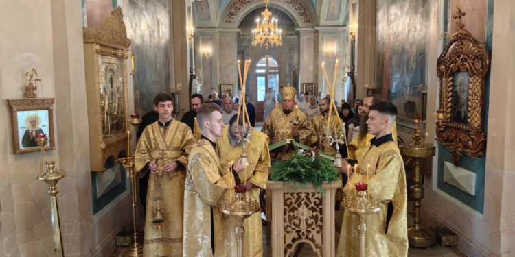 27 июля в храме Преображения Господня епископ Козельский и Людиновский Макарий отслужил молебен с чтением акафиста святому равноапостольному князю Владимиру.