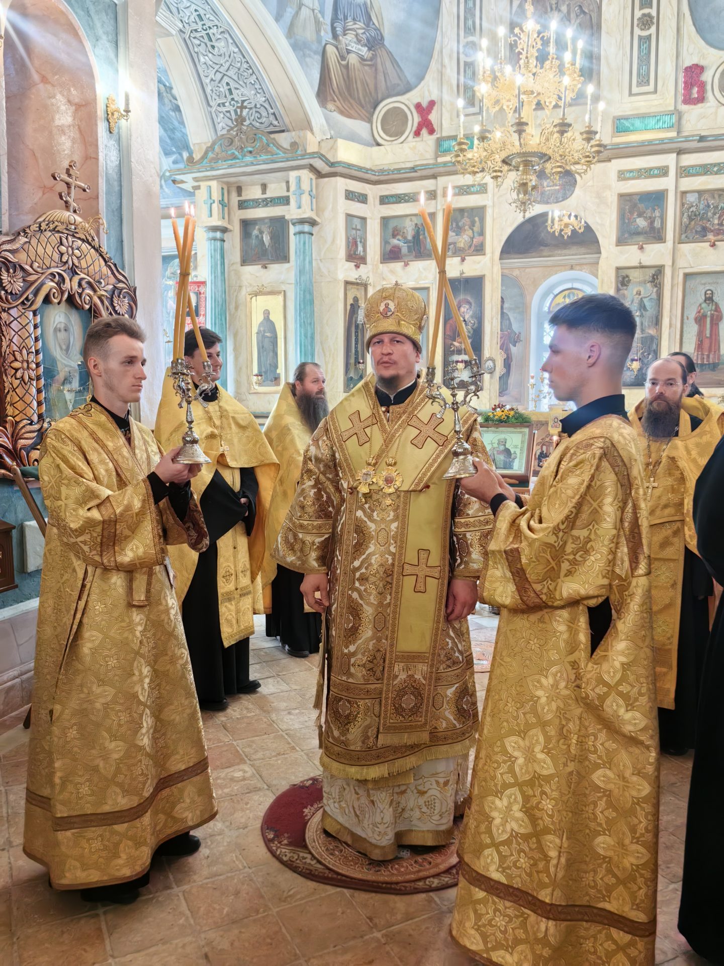 Архипастырю сослужили — иерей Тихон Худяков, настоятель храма, иерей Филипп Лисенков, заведующий канцелярией Козельской епархии, иерей Евгений Чуркин, клирик Успенского собора города Козельска.