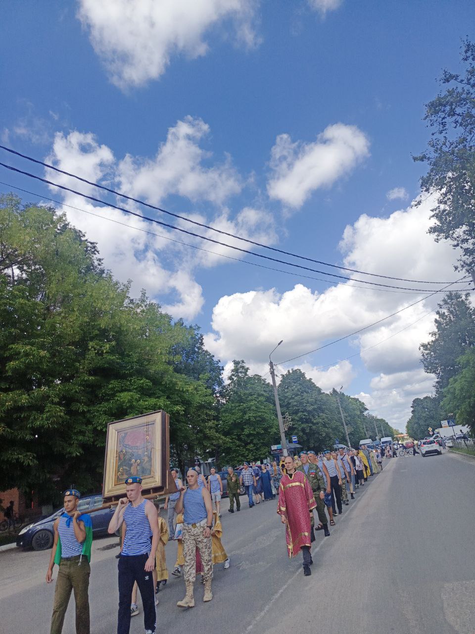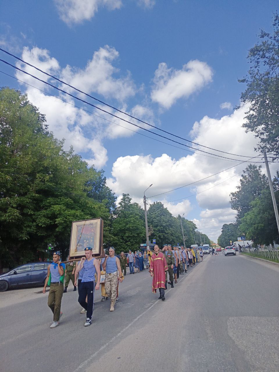 По установившейся традиции, от Казанского собора был совершен крестный ход и молебное пение по улицам города Людиново, который возглавил настоятель собора протоиерей Алексий Жиганов. К духовенству Людиновского благочиния, прихожанам собора присоединились десантники и жители города Людиново.