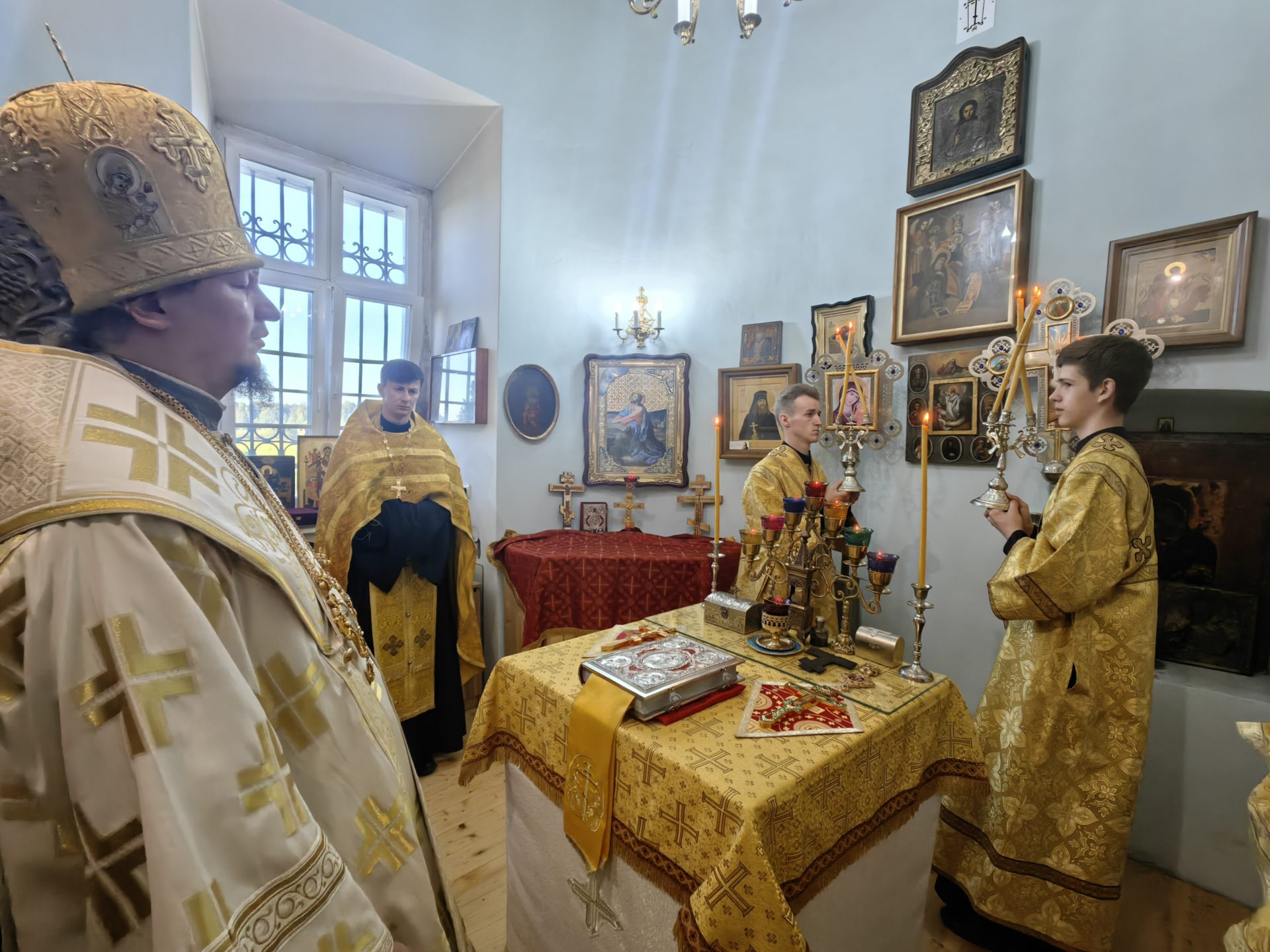 Епископу сослужили: настоятель монашеской общины иеромонах Игнатий (Киселев), заведующий канцелярией Козельской епархии священник Филипп Лисенков и диакон Николай Кречетов.