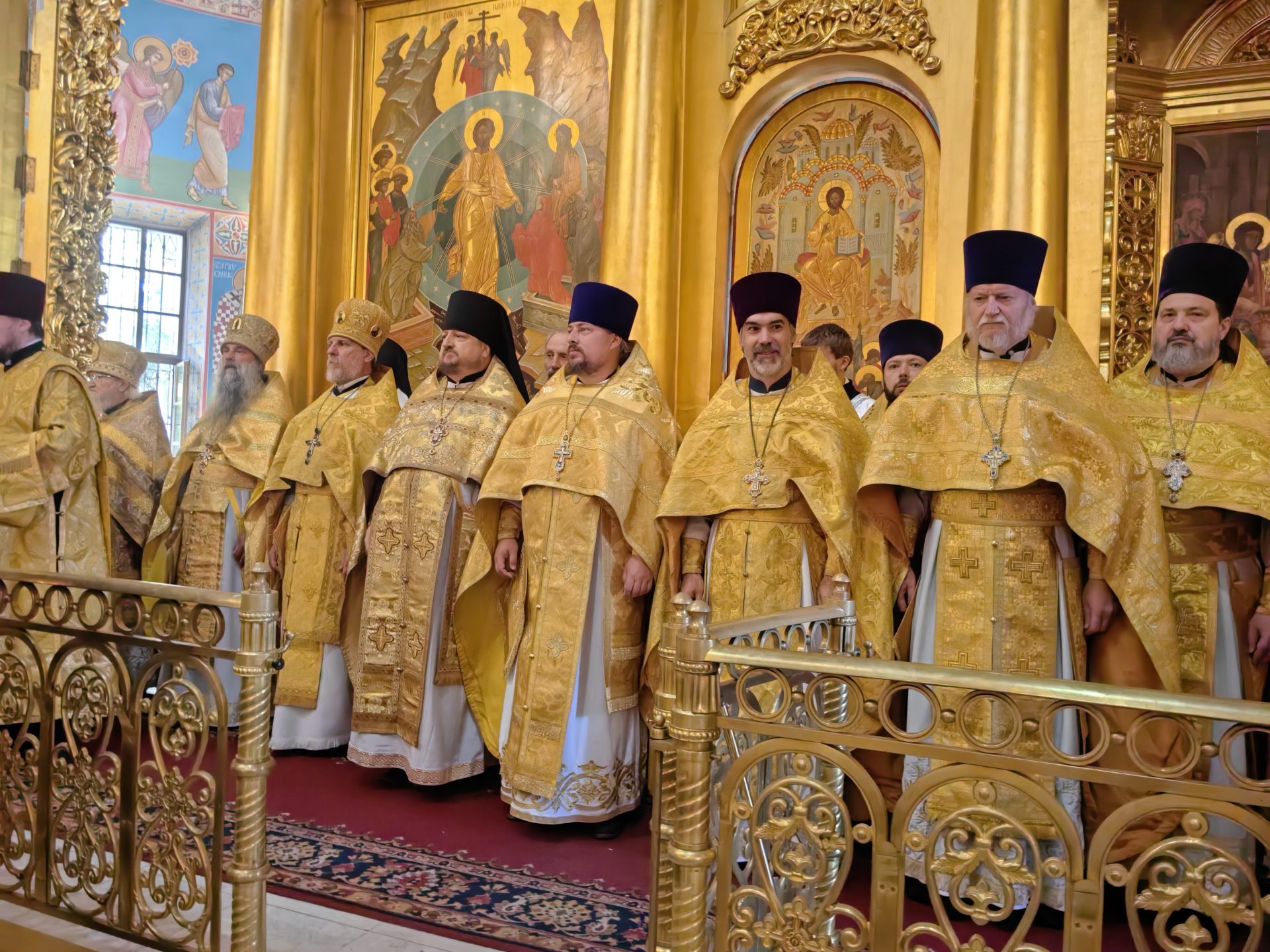 Божественную Литургию совершили: митрополит Калужский и Боровский Климент, архиепископ Песоченский и Юхновский Максимилиан, епископ Можайский Иосиф, викарий Святейшего Патриарха Московского и всея Руси, наместник Свято-Введенской Оптиной пустыни и епископ Козельский и Людиновский Макарий.