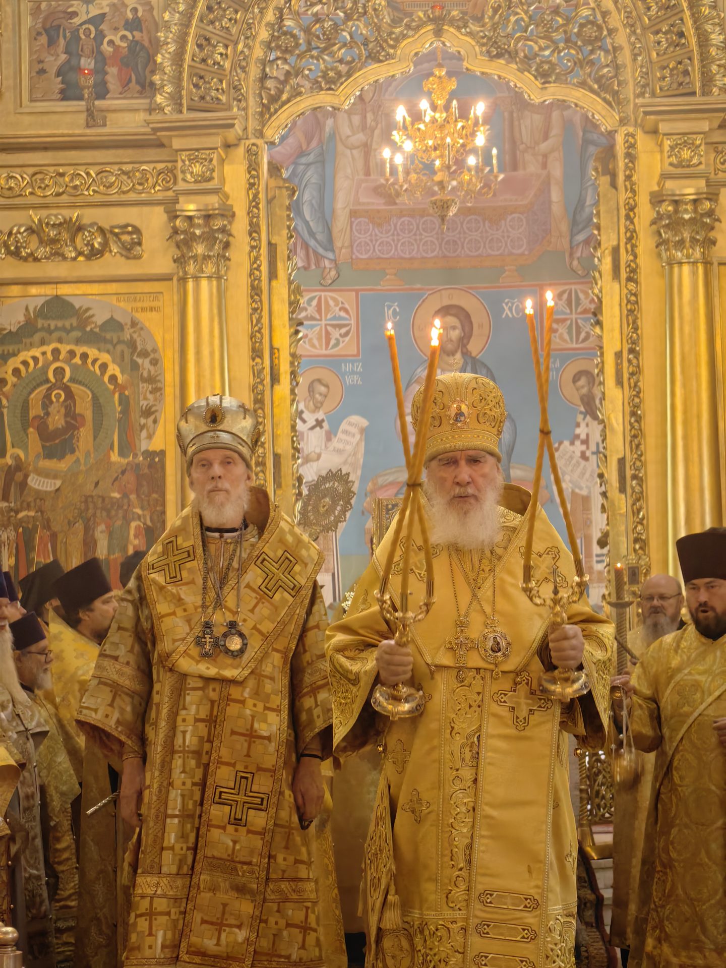 Архипастырям сослужили священнослужители Калужской митрополии.