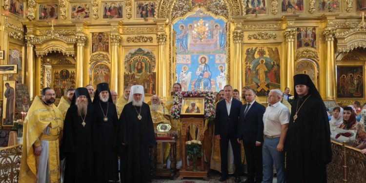 По окончании Божественной Литургии был совершен молебен святителю Тихону, Патриарху Всероссийскому, после которого митрополит Калужский и Боровский Климент огласил послание Святейшего Патриарха Московского и всея Руси Кирилла в связи со 100-летием преставления святителя Тихона. Губернатор Калужской области В.В. Шапша зачитал послание Президента РФ В.В. Путина в связи с этим событием.