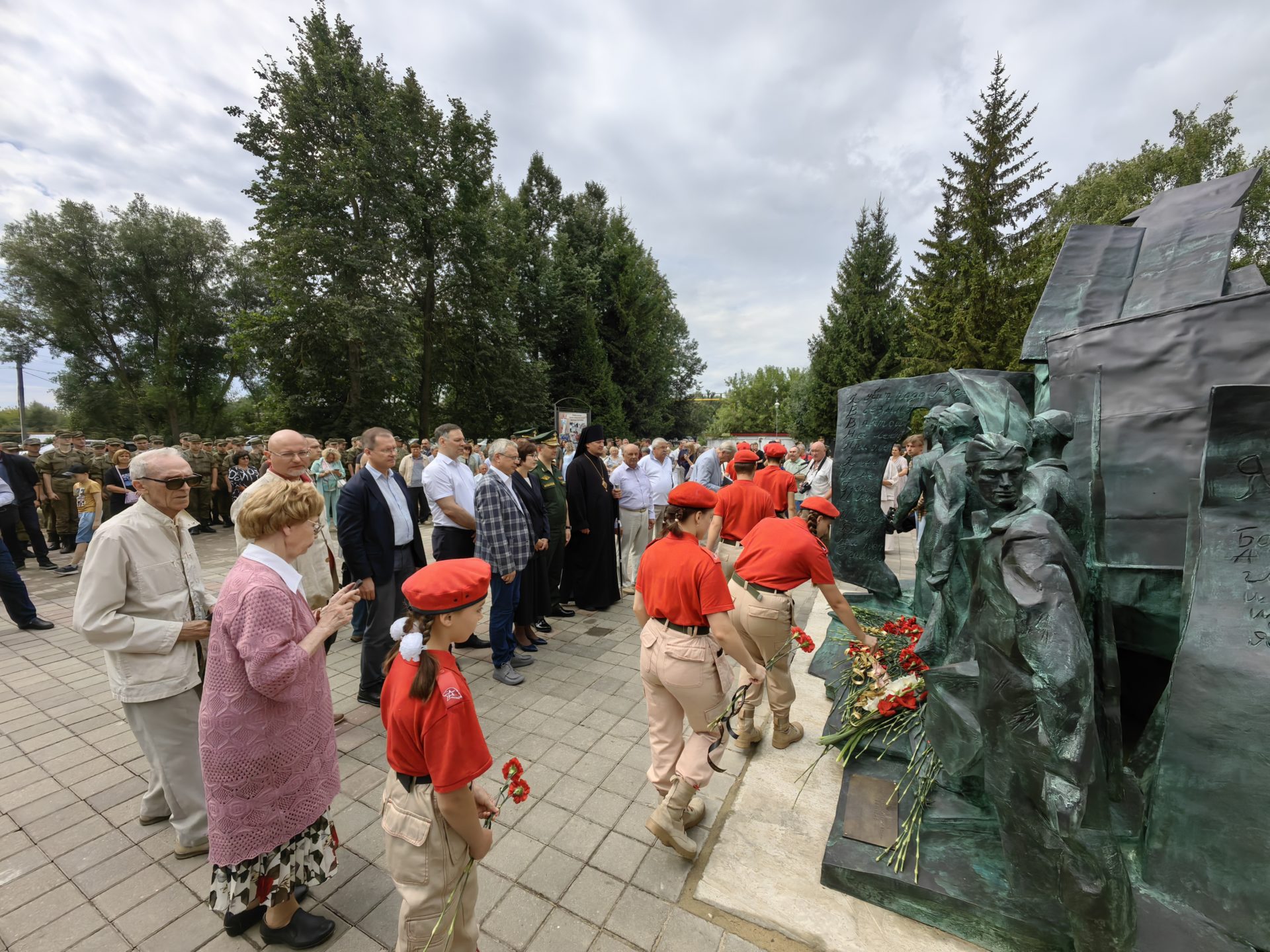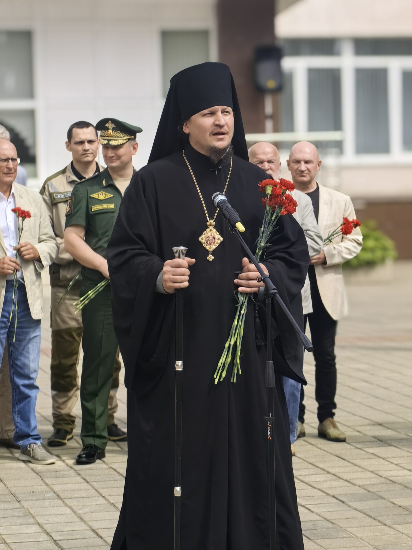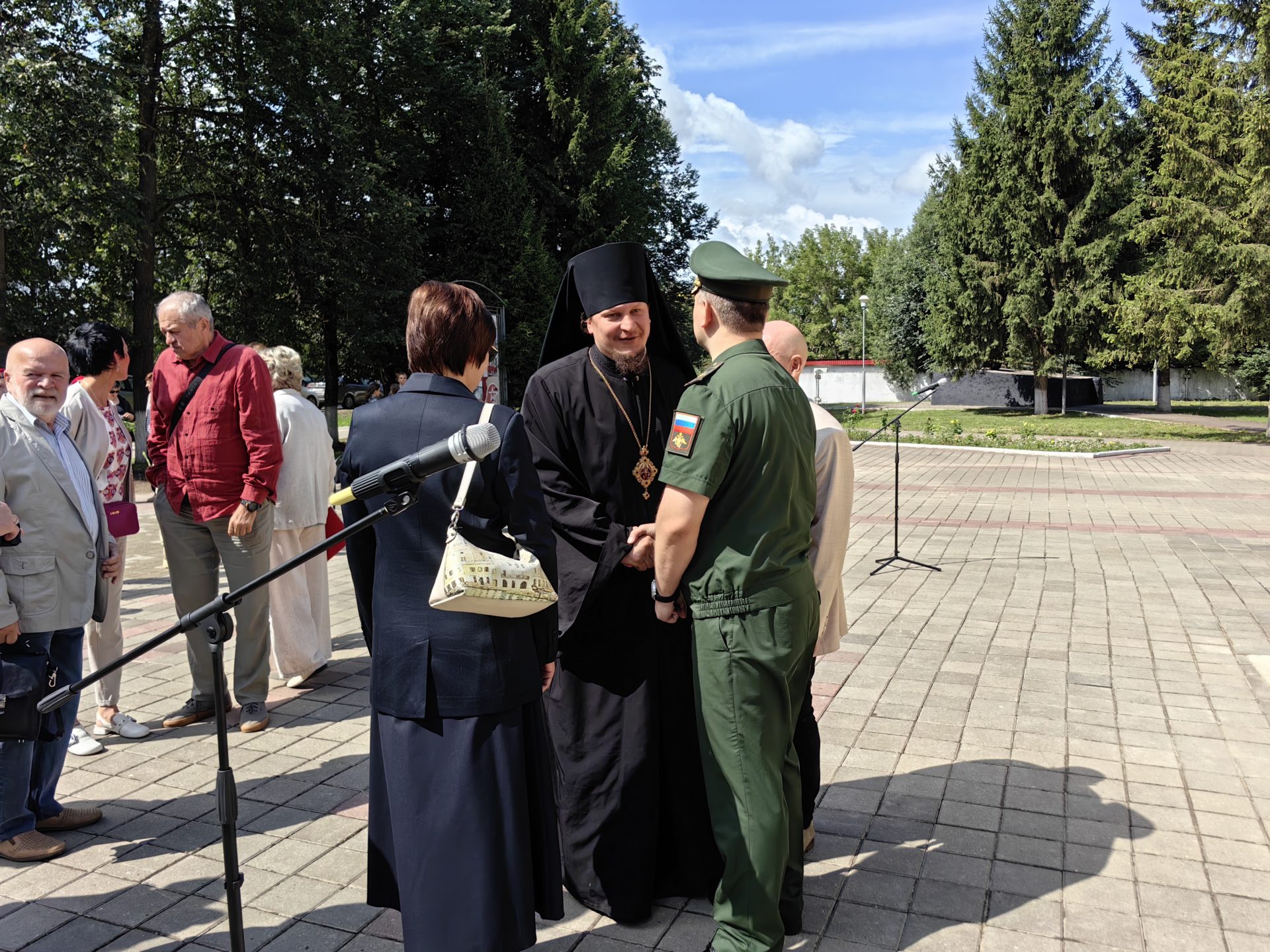 Памятник освятил настоятель воинского храма в честь святой великомученицы Варвары Козельской ракетной дивизии священник Николай Кузнецов, настоятель Свято-Духовского храма и диакон Николай Кречетов совершили заупокойную литию по всем погибшим в годы Великой Отечественной войны.