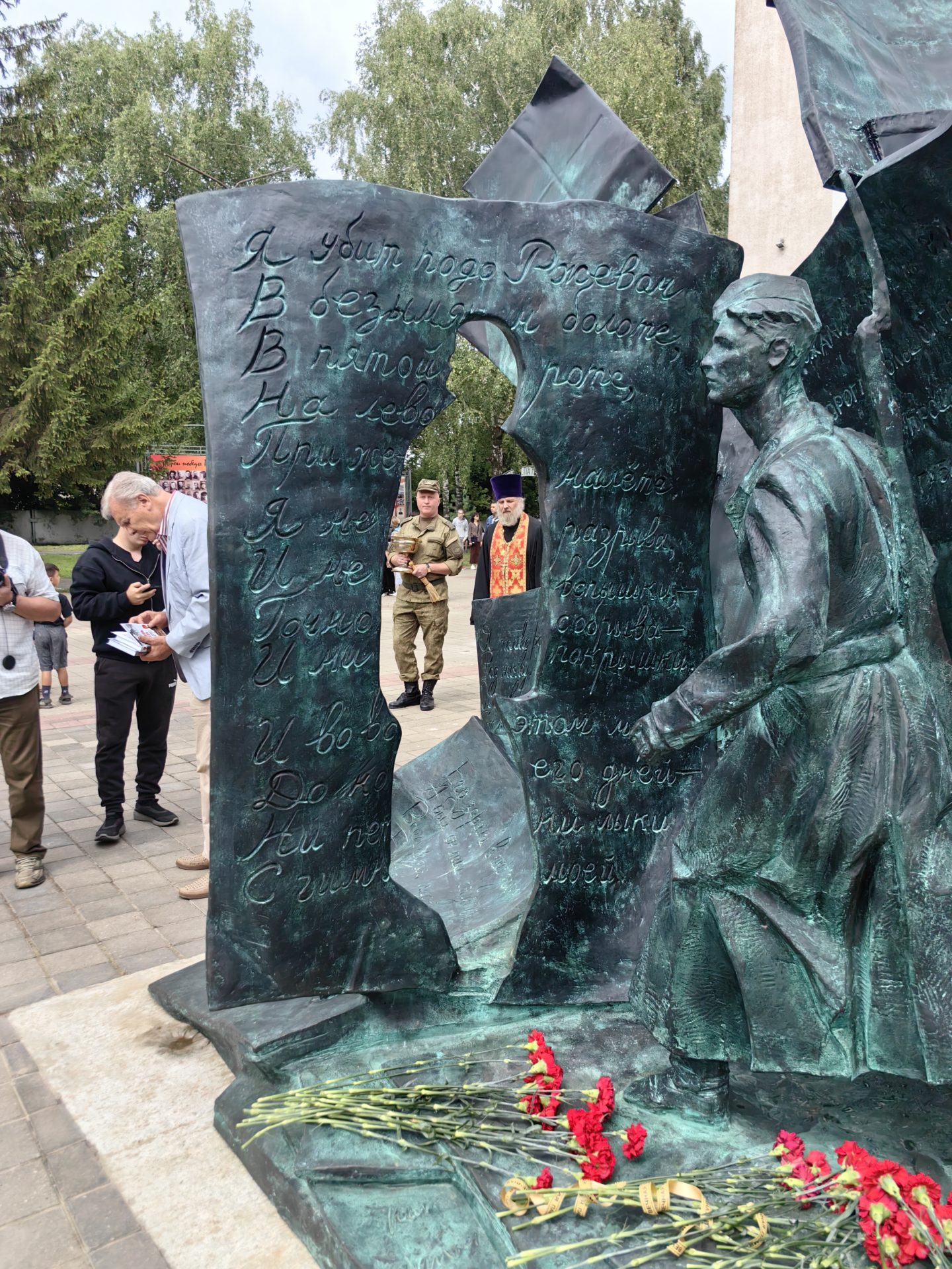 Были возложены цветы к памятнику, а поэты прочитали стихи, посвящённые подвигу русского солдата.