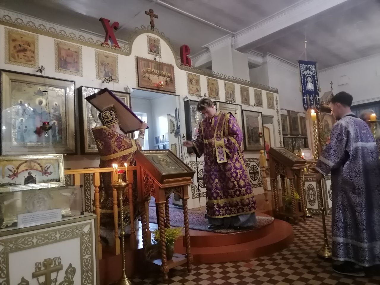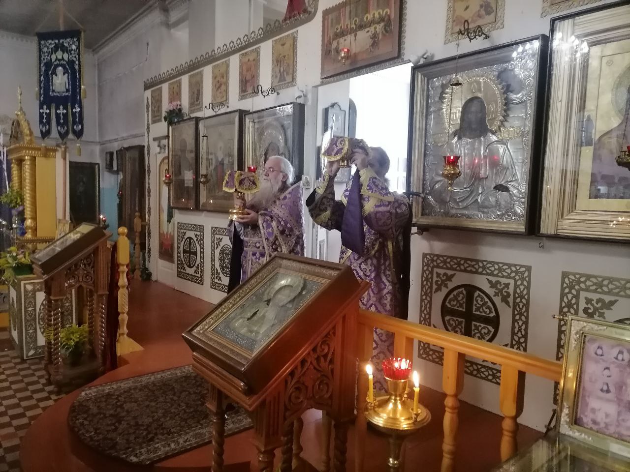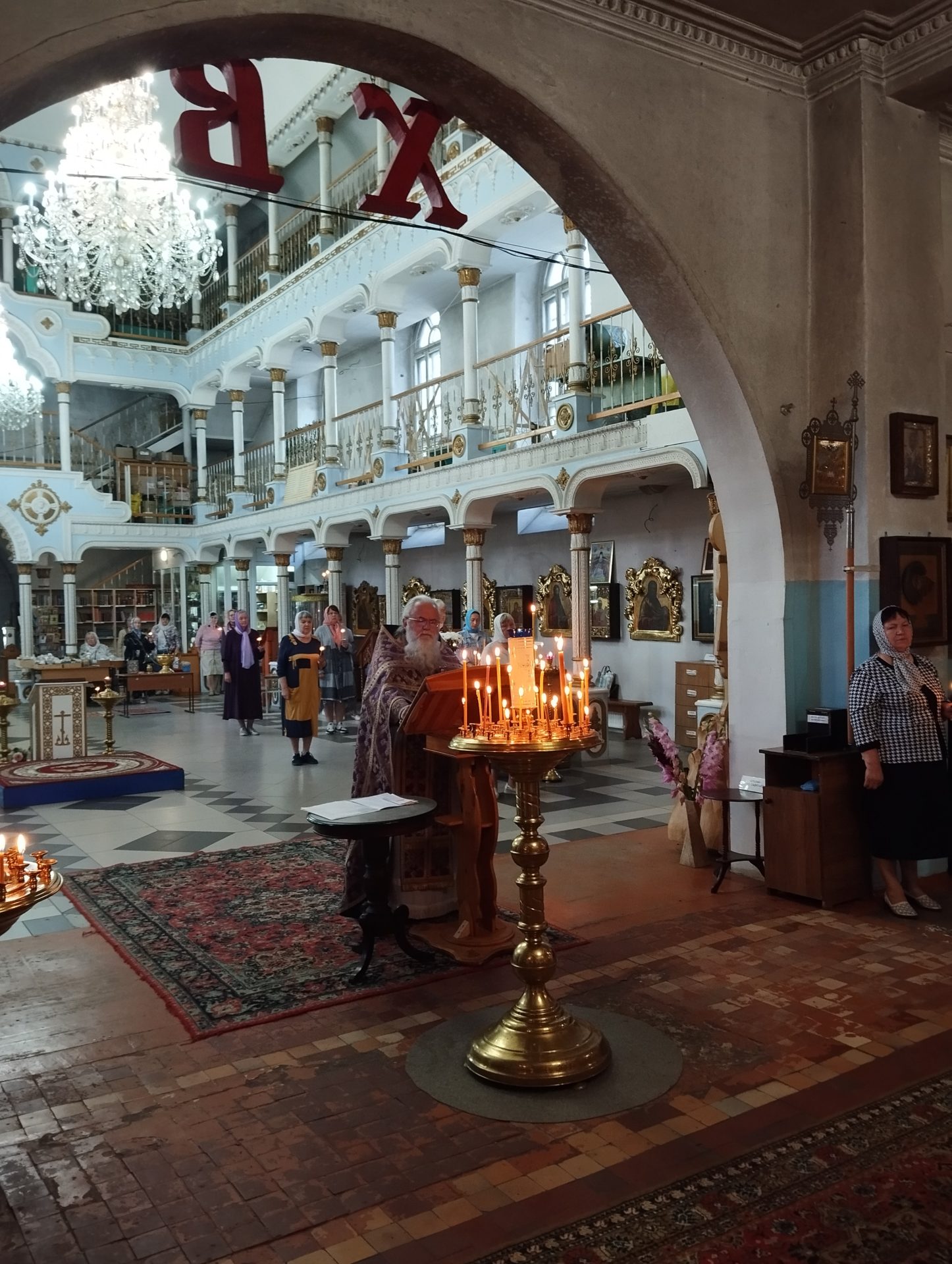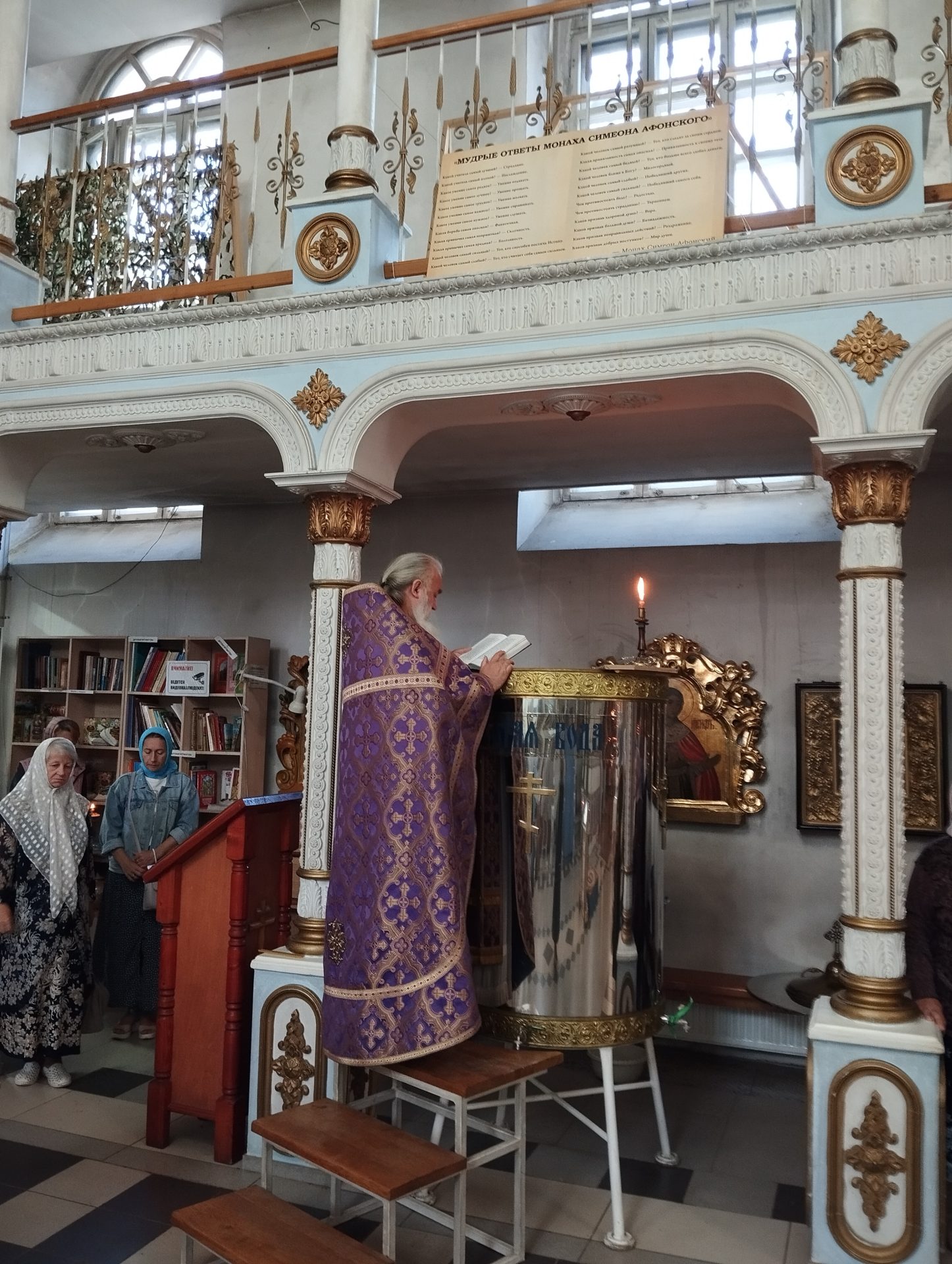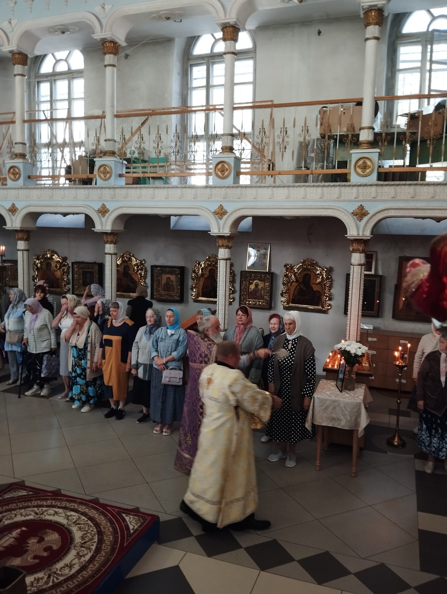 14 августа 2025 года, в сам день происхождения (изнесения) Честных Древ Животворящего Креста Господня,  настоятель Казанского собора города Людиново протоиерей Алексий Жиганов в сослужении диаконов Андрея Соколова и Никиты Агарёва совершили водосвятный молебен с акафистом Честному Кресту Господню и Божественную литургию. Затем отец Алексий совершил  чин освящения меда нового урожая в храме, после чего поздравил прихожан с праздником, пожелав помощи Божией в предстоящем Успенском посте.