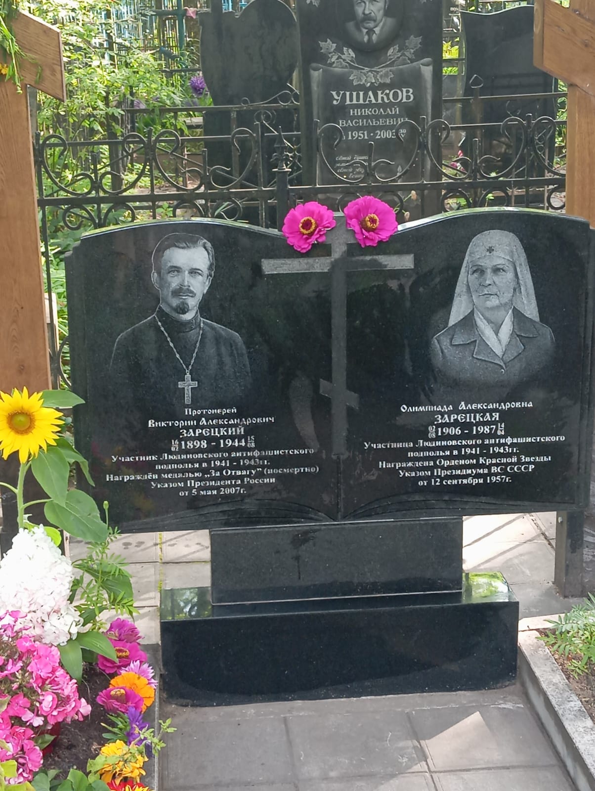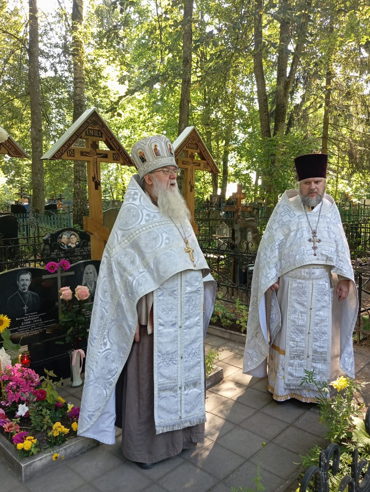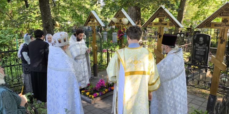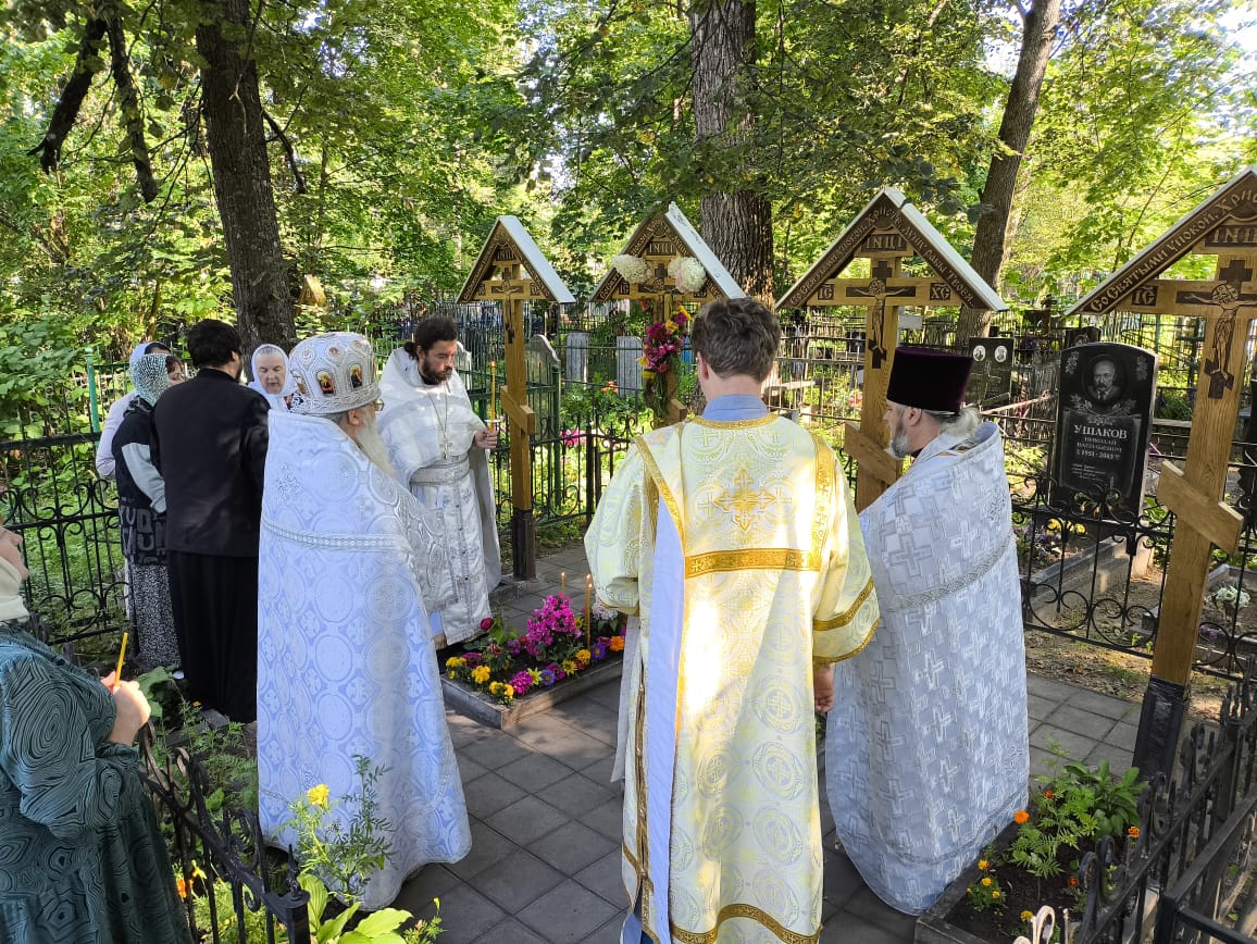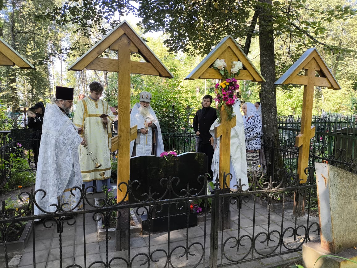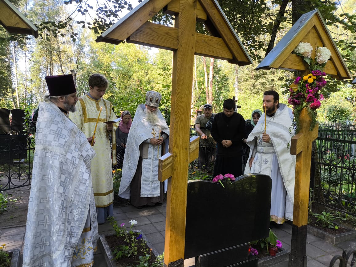 Затем, на могиле приснопамятного протоиерея отца Викторина (где рядом покоятся его родственники), благочинный Людиновского округа Козельской епархии настоятель Казанского собора города Людиново протоиерей Алексий Жиганов в сослужении клириков Людиновского благочиния отслужили панихиду о усопших. Отец Викторин похоронен на кладбище при храме святого праведного Лазаря в Людинове.