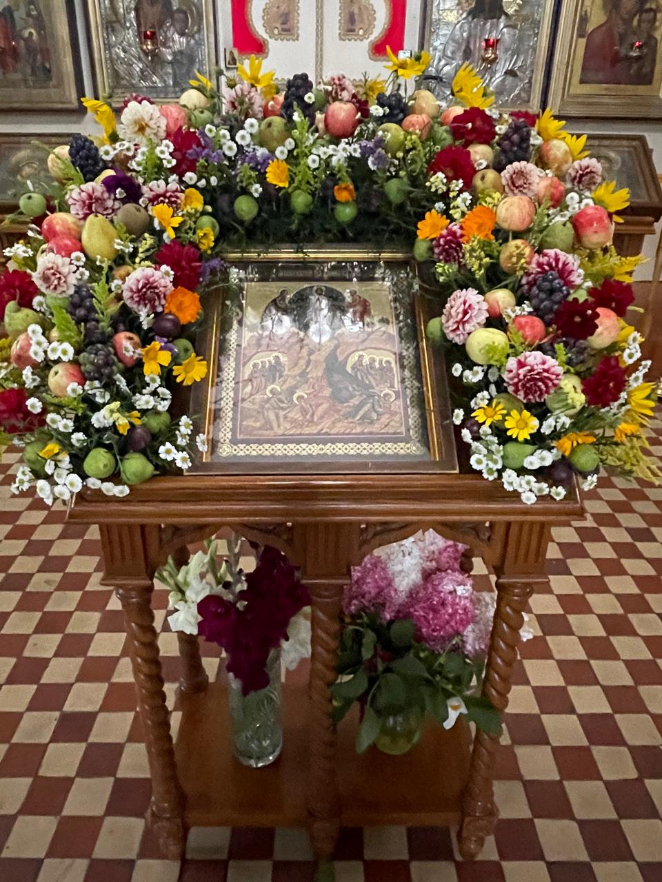 В день торжества был совершен молебен с акафистом Иисусу Сладчайшему. По окончании Божественной литургии состоялся чин освящения плодов и щедрых даров Божиих.