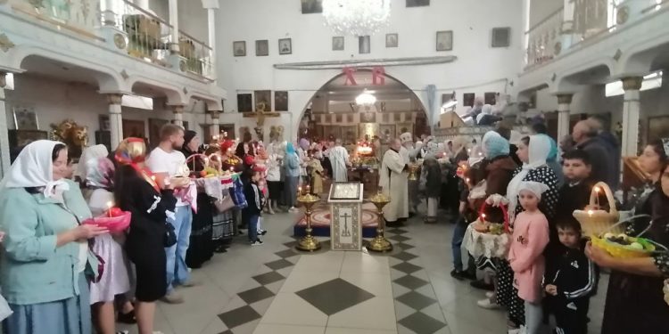 После богослужения настоятель отец Алексий произнес проповедь, в которой поздравил прихожан с великим праздником Преображения Господня, рассказал историю праздника и призвал всех усиленно молиться, чтобы укрепилась вера в православных христианах, крепла вера православная в наших воинах – защитниках и чтобы покаянием преобразовались наши души: «Праздник Преображения Господня, это тот великий праздник, который напоминает нам о преображении и нашей жизни, о преображении наших душ и сердец. Да преобразит Милосердный Господь и наши души и сердца».