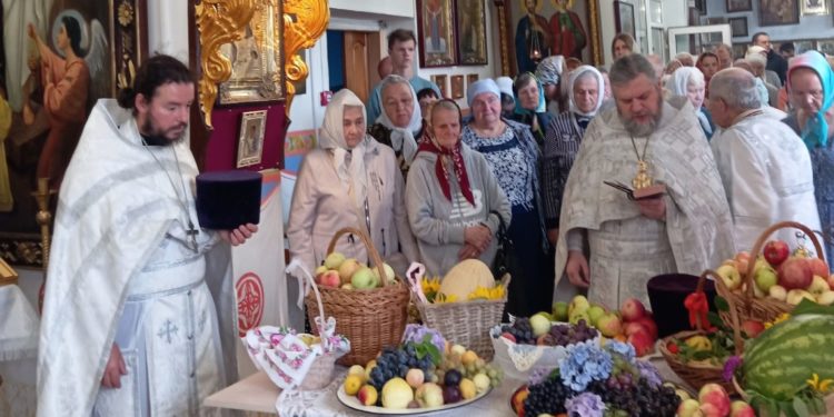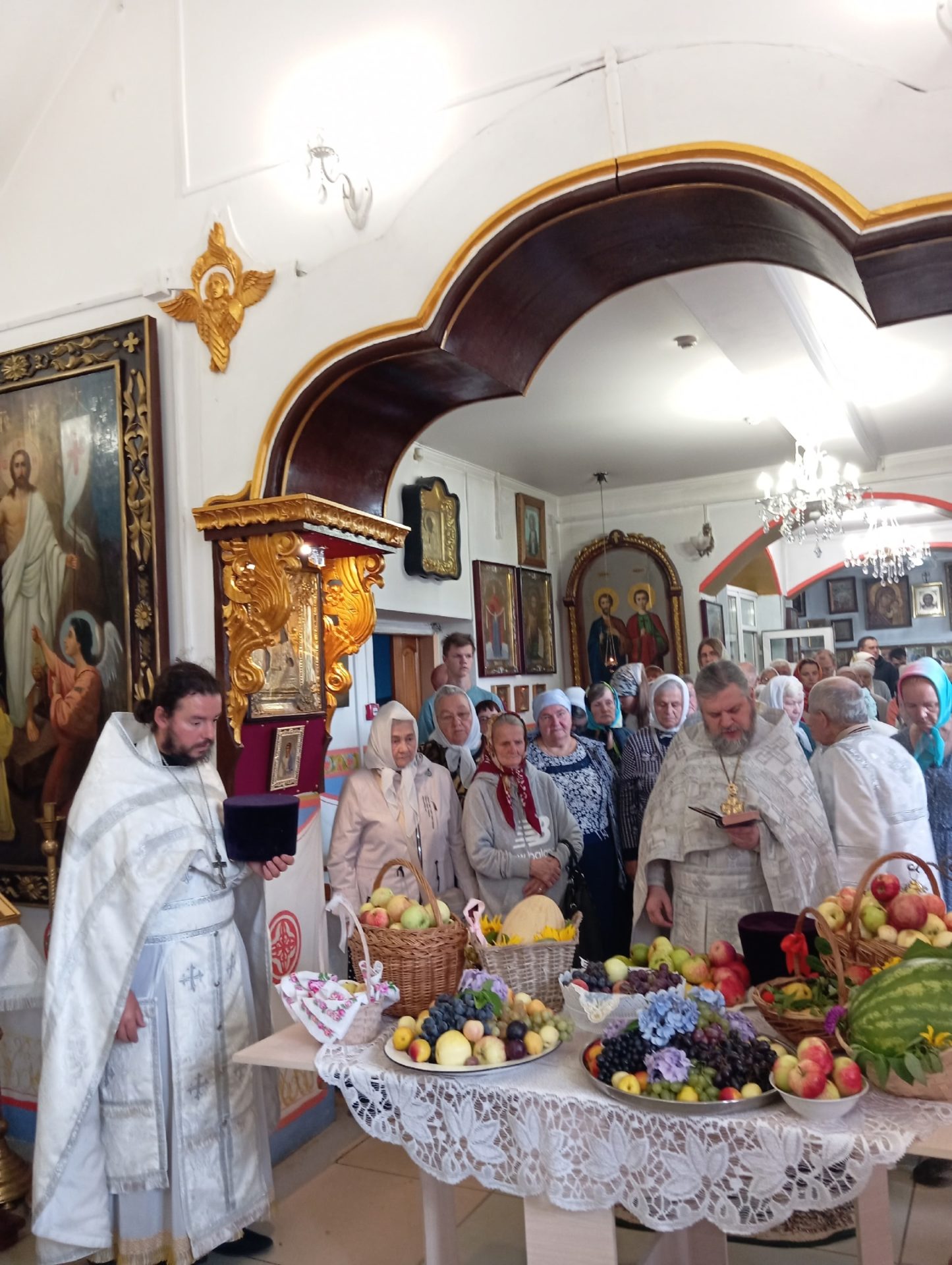 После заамвонной молитвы было совершено освящение плодов нового урожая.