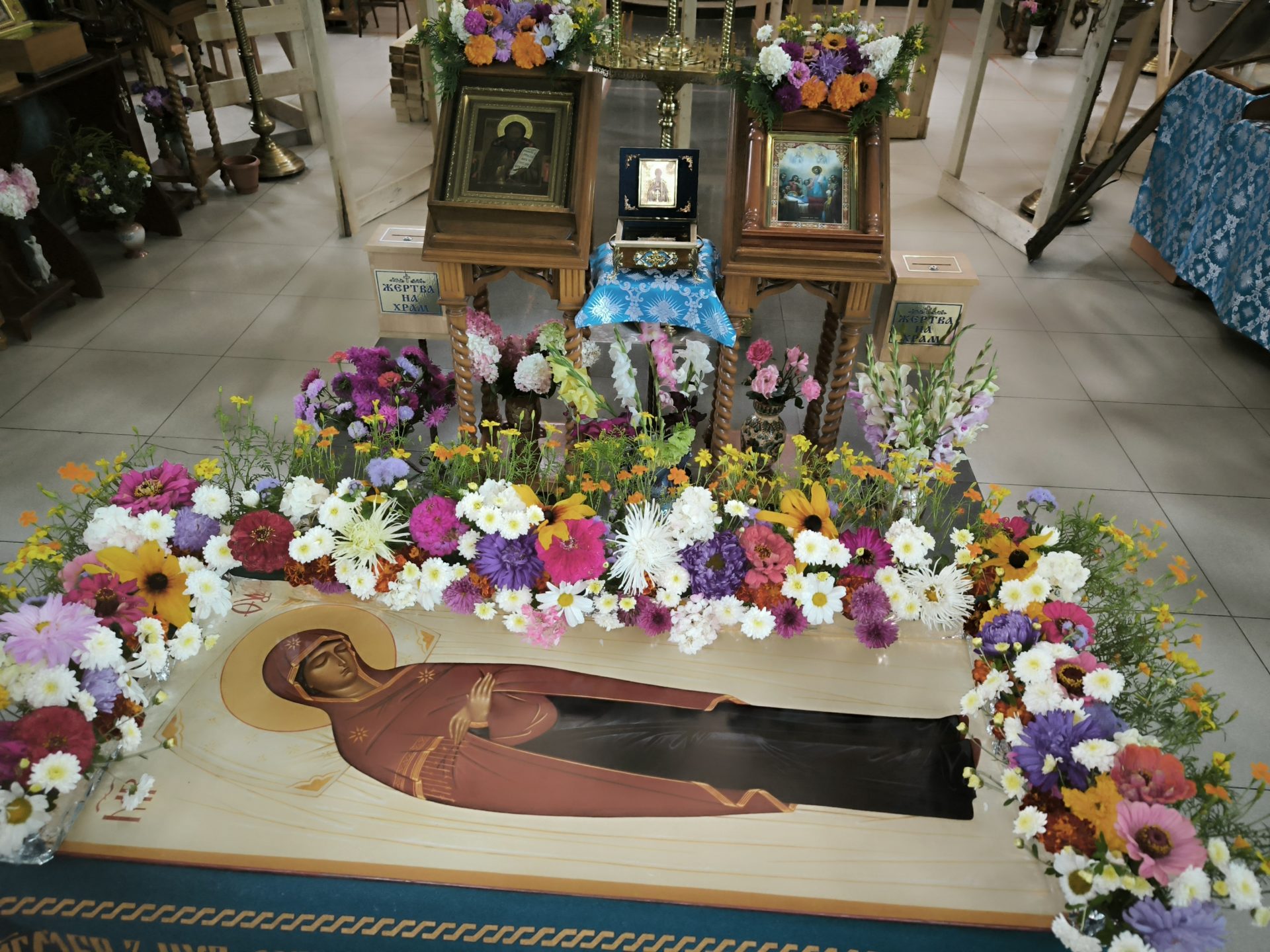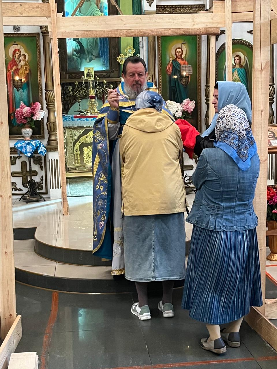 За Божественной Литургией отец Василий обратился к прихожанам со словами поздравления: «Сегодня Успение Пресвятой Богородицы. Пусть этот день станет светлой широкой дорогой к вере. Пусть Её жизненный путь и святые молитвы согревают и наполняют благодатью души, пусть даруют терпение, понимание и доброту помыслов всем людям на земле. Царица Небесная жива, Она предстоит пред Престолом Сына Своего и молится за всех нас».