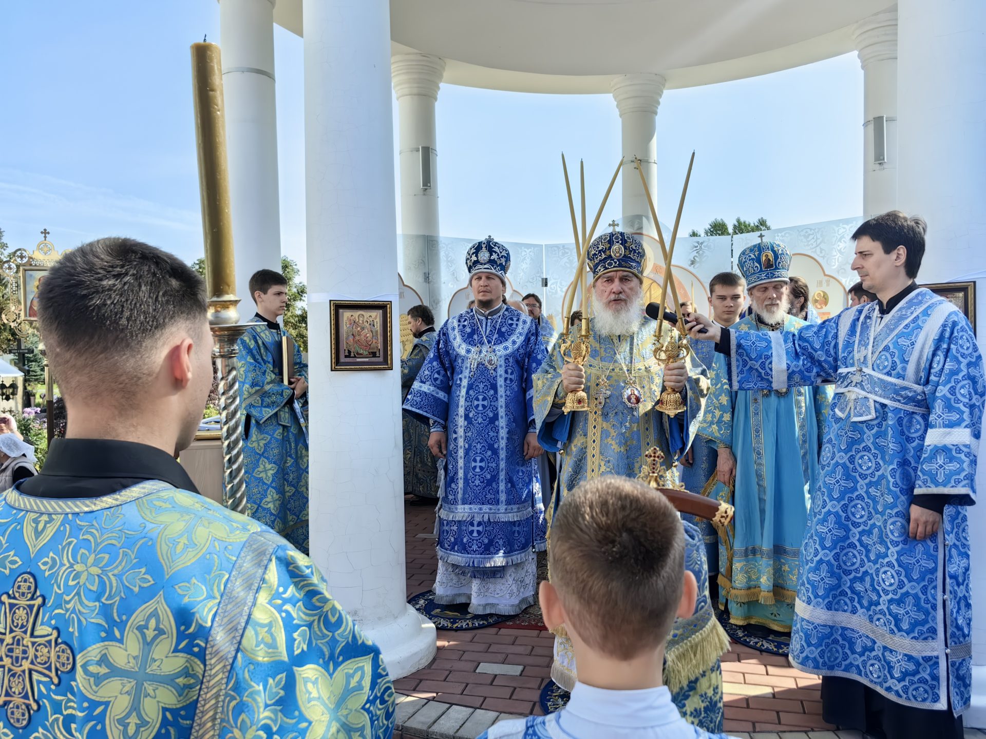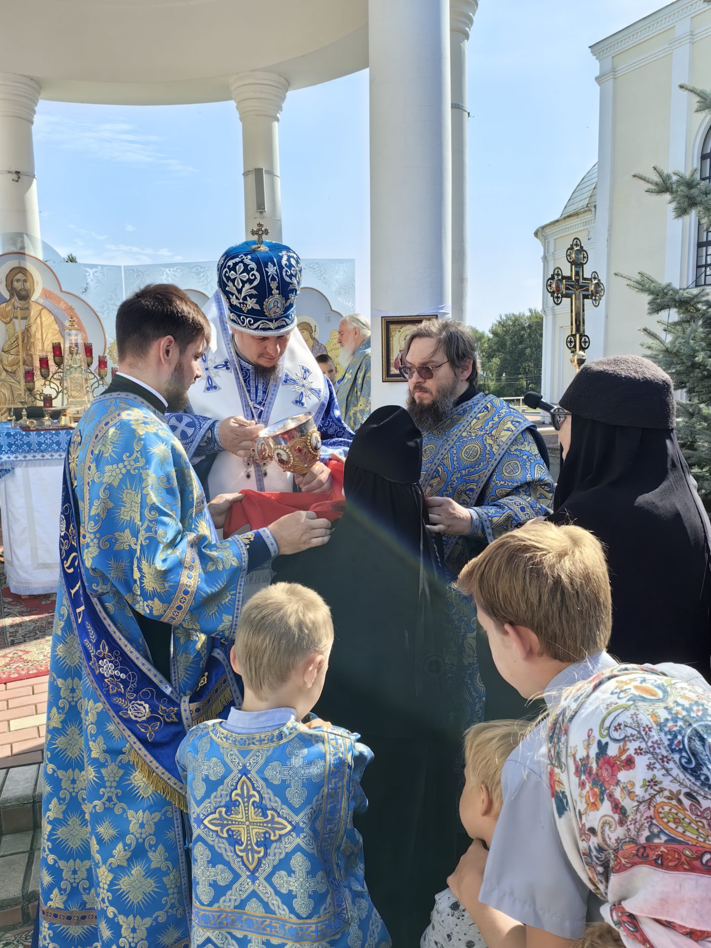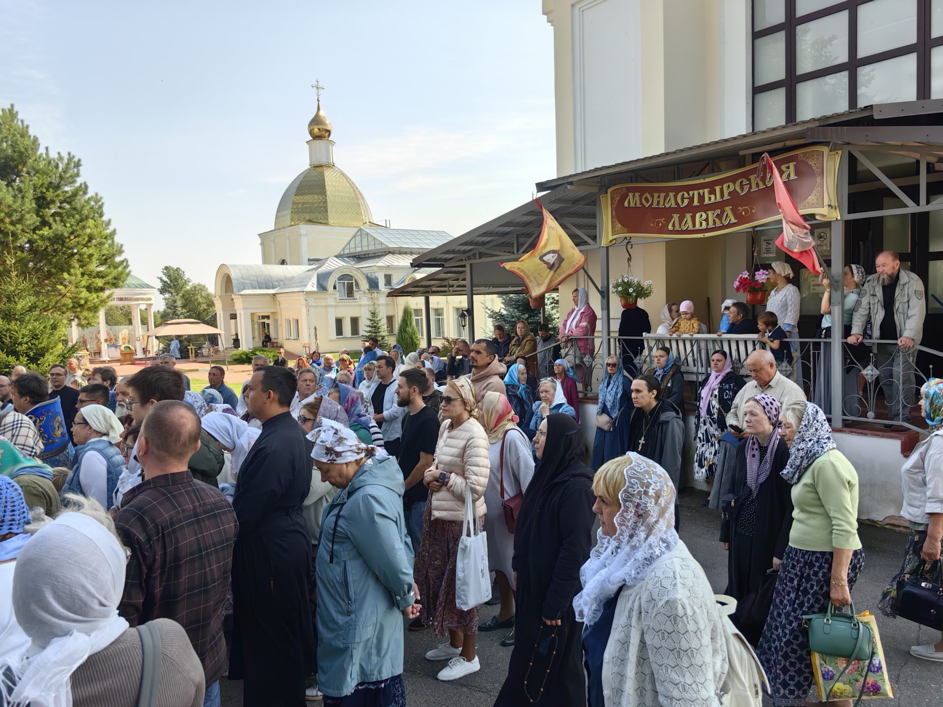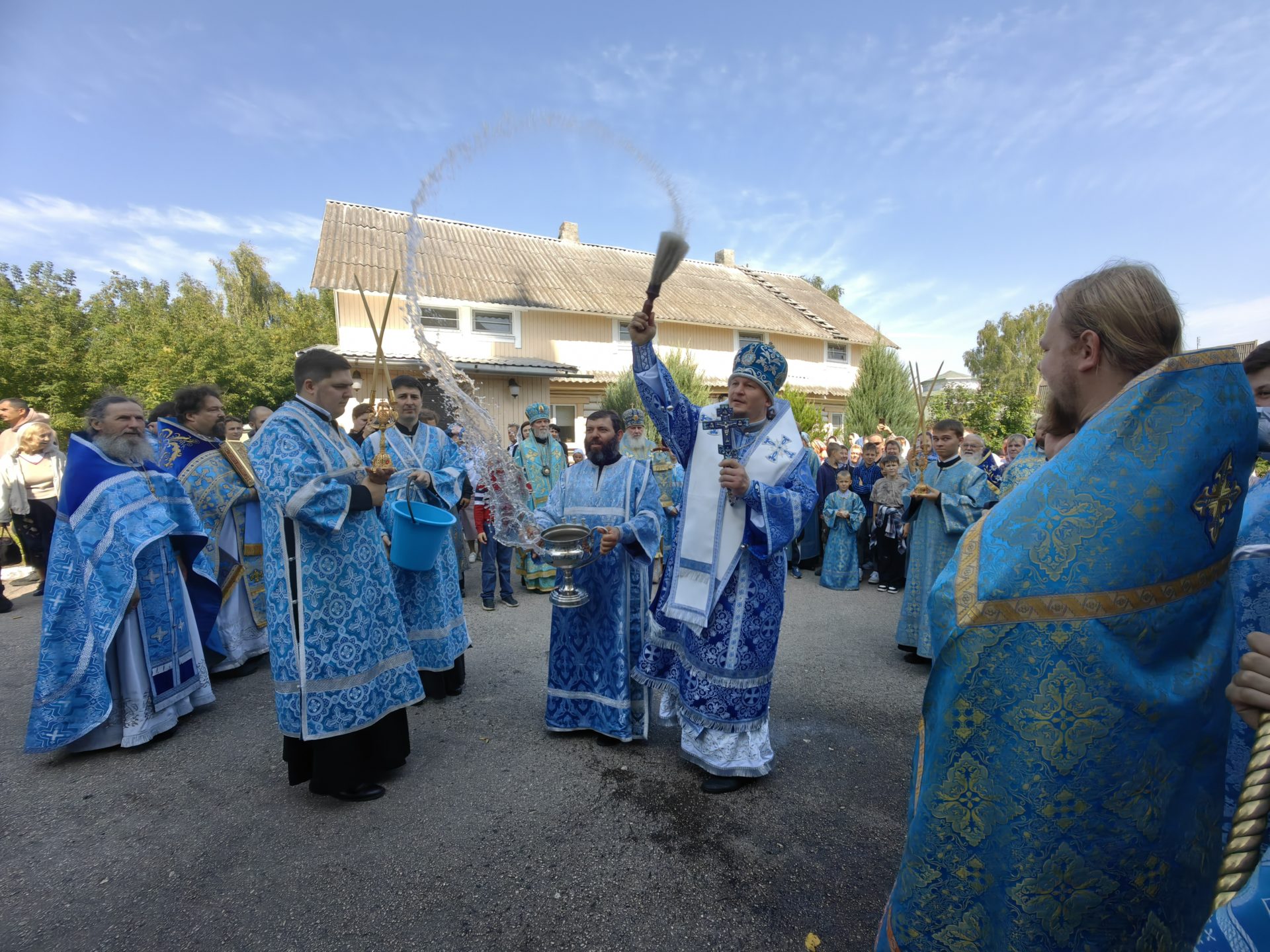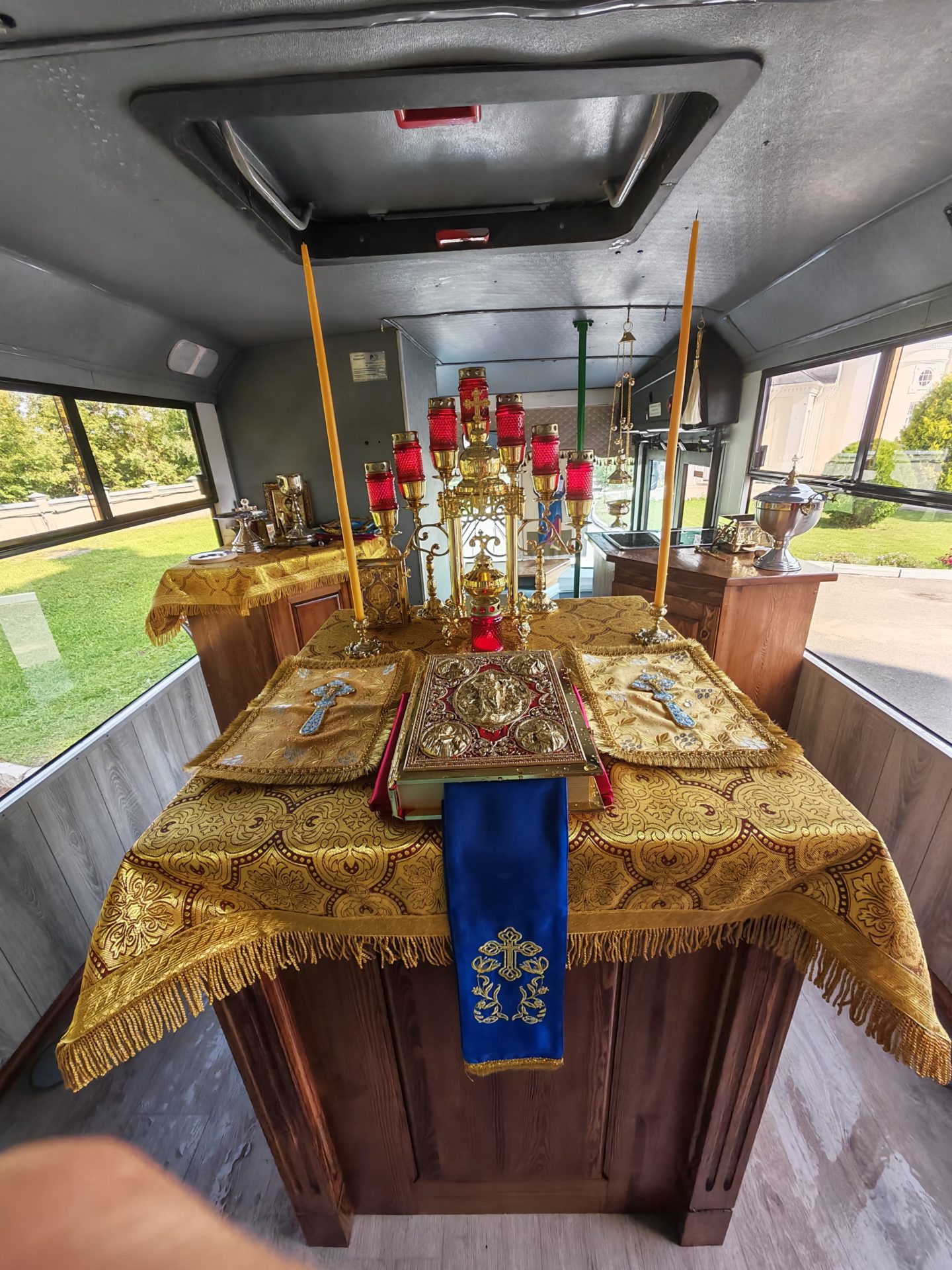 По окончании Божественной Литургии был совершен молебен, Крестный ход вокруг храма и освящение храма на колёсах на базе автобуса, который создан братией обители для посещения отдаленных сел и совершения Божественной Литургии, принесения святынь.
