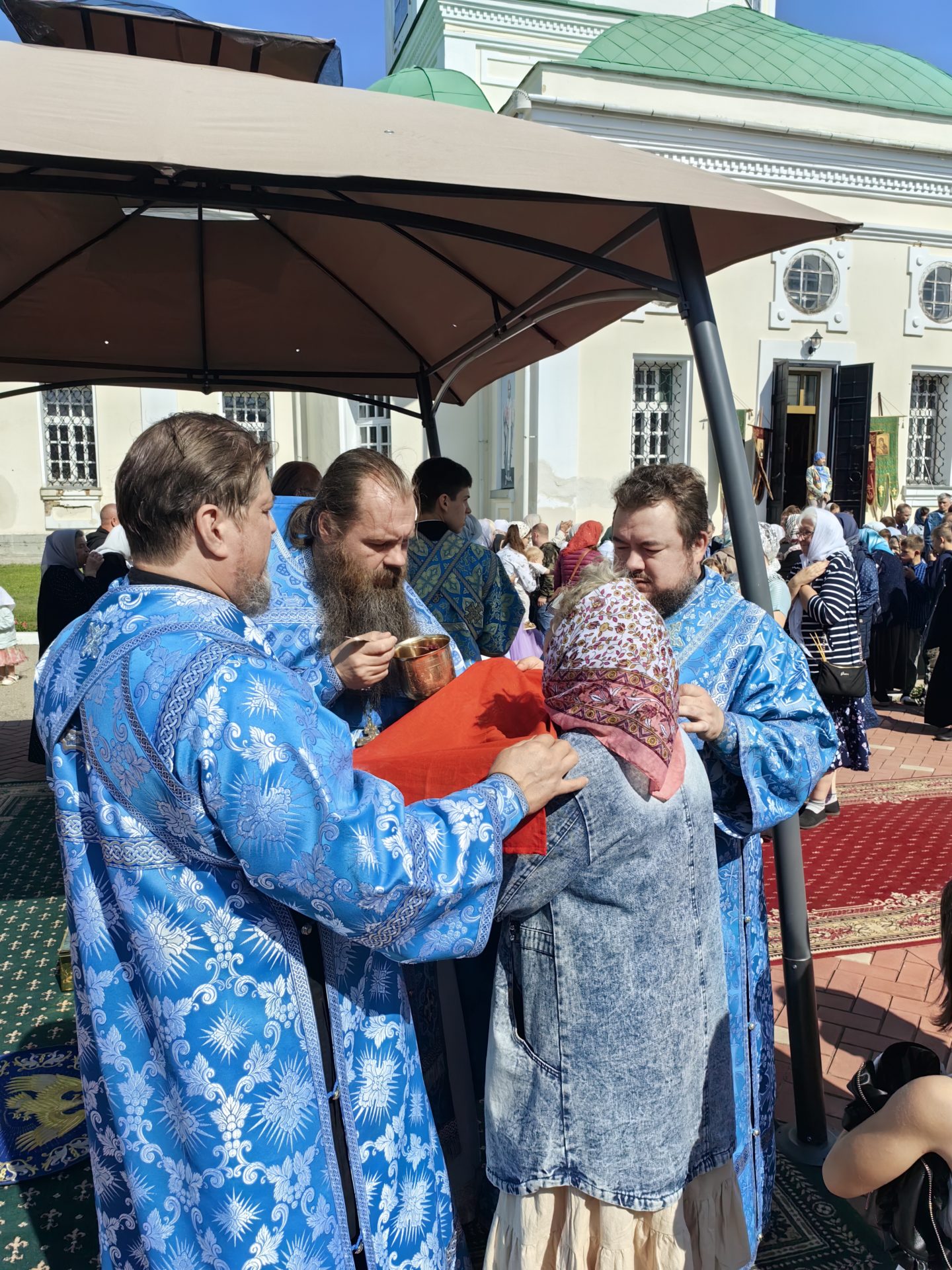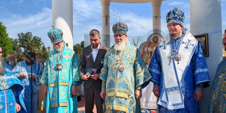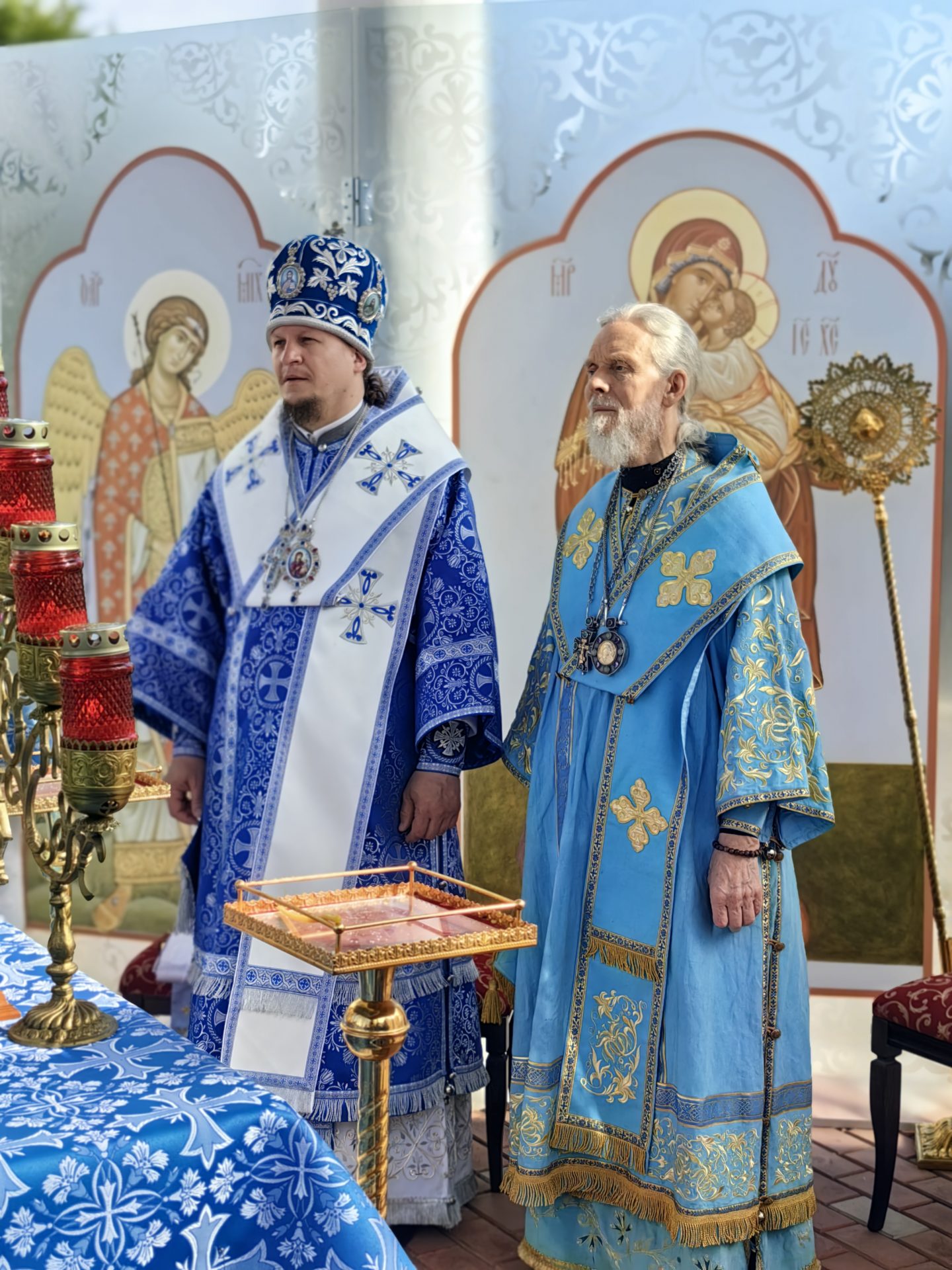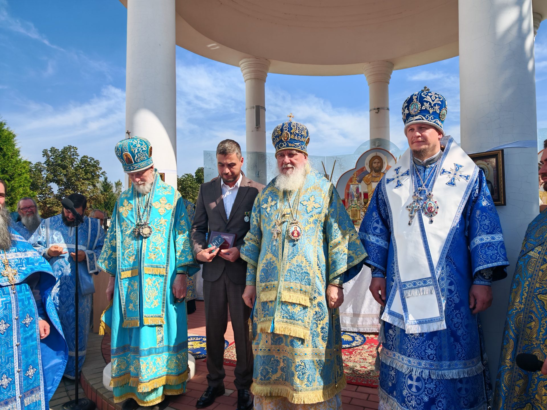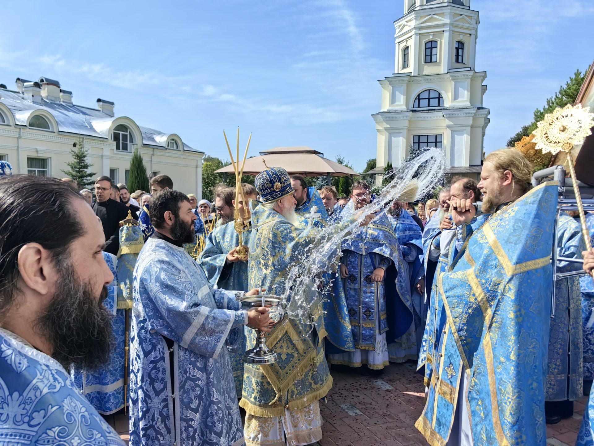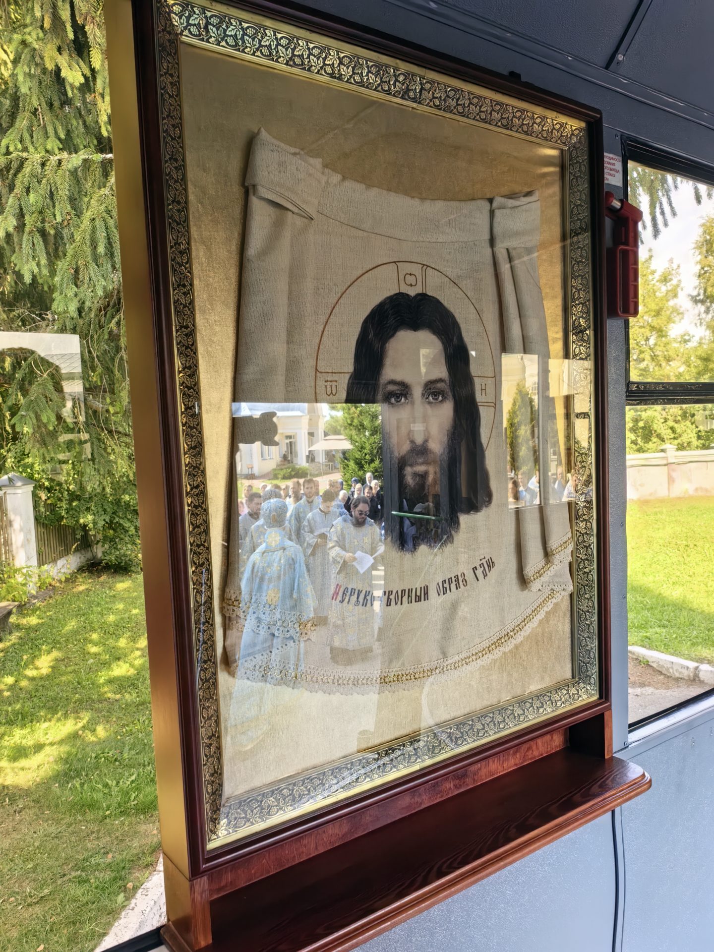 По окончании Божественной Литургии был совершен молебен, Крестный ход вокруг храма и освящение храма на колёсах на базе автобуса, который создан братией обители для посещения отдаленных сел и совершения Божественной Литургии, принесения святынь.