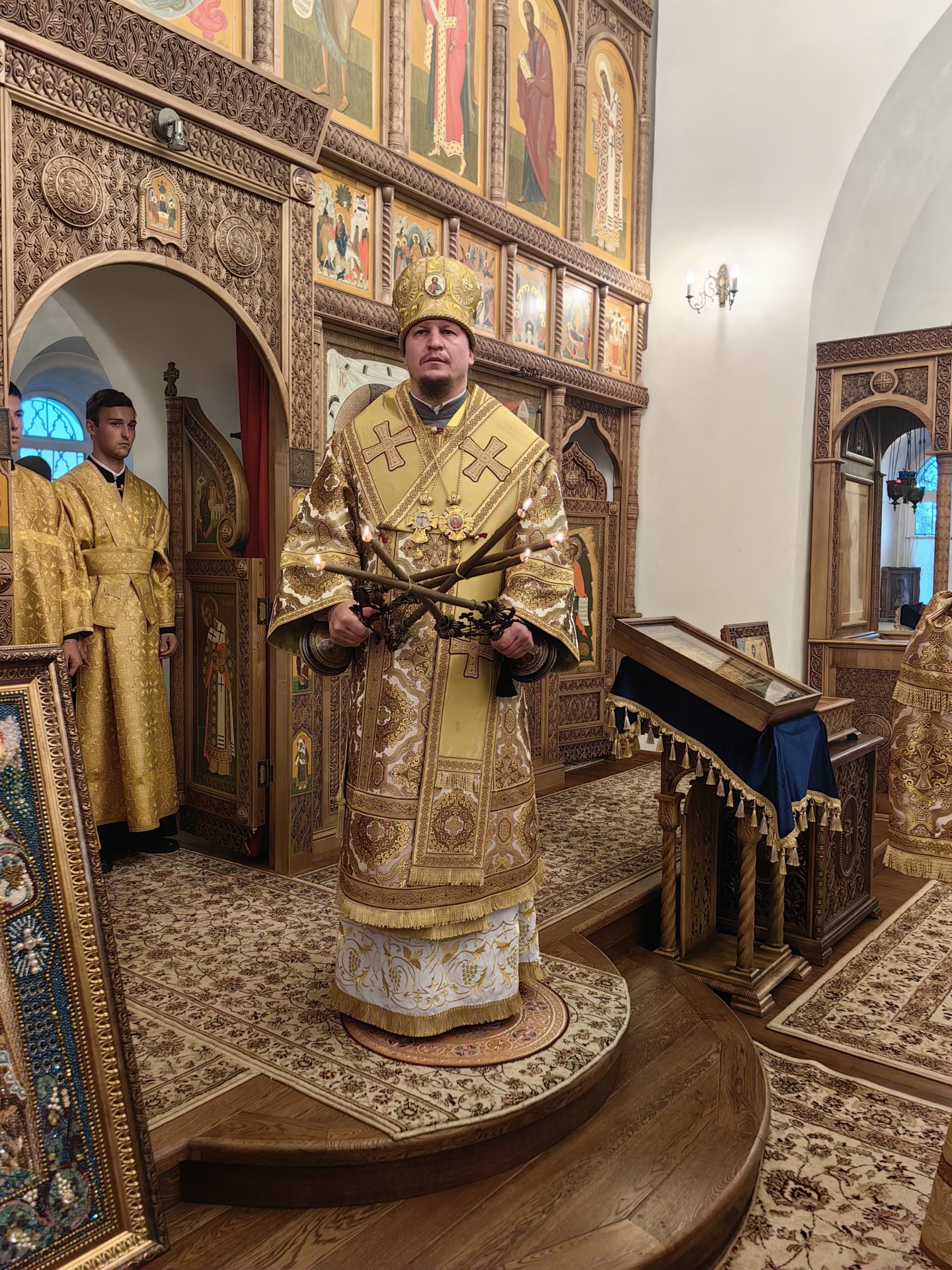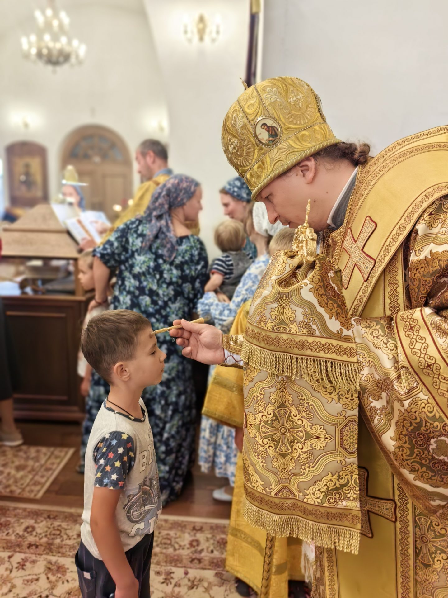 На полиелее было пропето величание Матери Божией в честь празднуемого образа «Всецарица». После полиелея епископ Макарий помазал верующих освященным елеем.