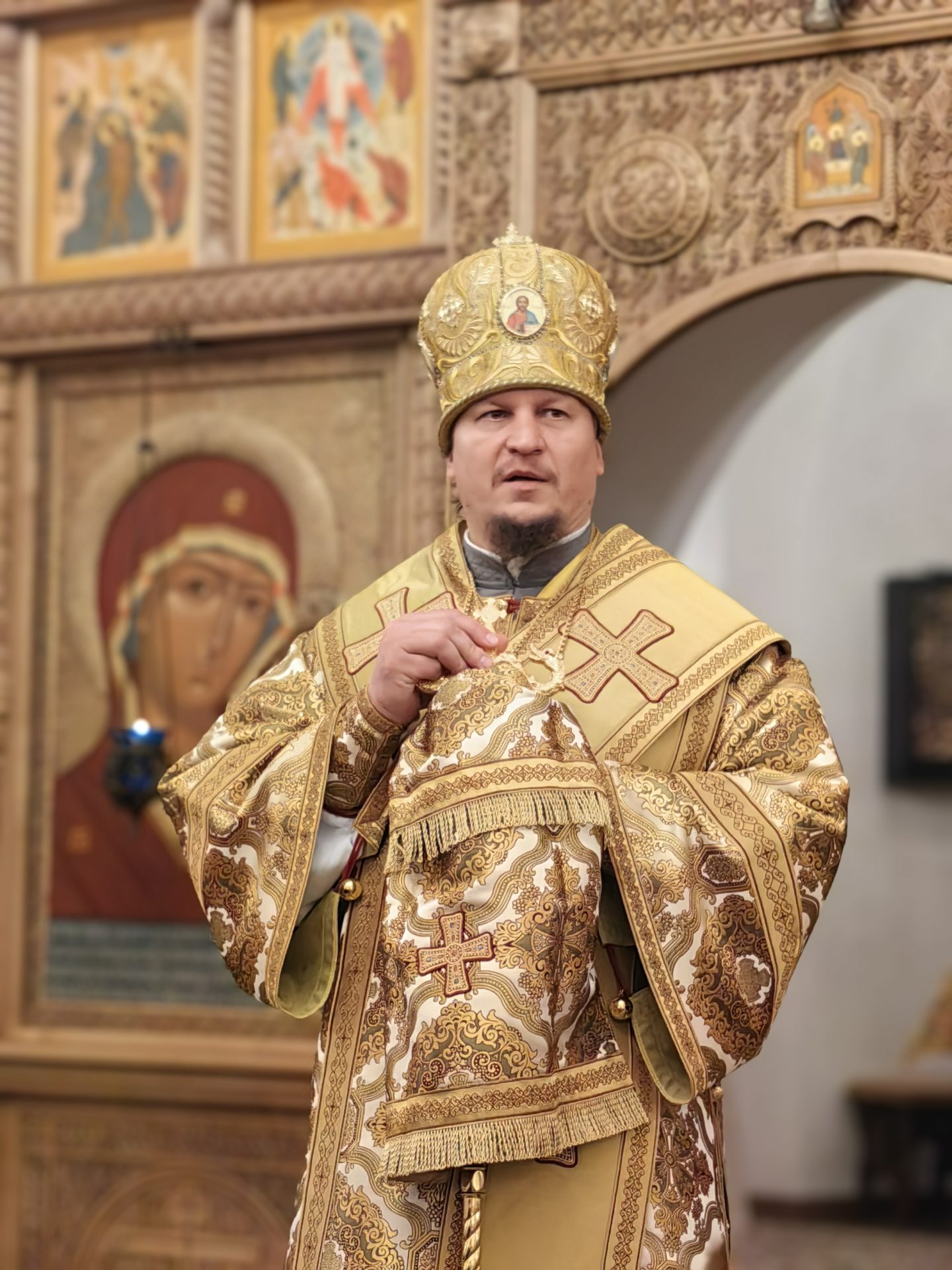 По отпусте владыка произнёс проповедь: «Самая короткая и смиренная «раба Господня» сегодня именуется «Всецарицей» и изображается на царском троне. В своей жизни Она явила на образец кротости и незлобия, покорности Воле Своего Создателя. И за это была удостоена великой славы — «Се бо отныне ублажат Мя вси роды», произносит Она смиренно и уповая только на помощь Божию. И нам надо довериться Богу, возложить все свое упование на Его всемогущую Силу, воспринять Его правду, отказаться от суеты своих планов и расчётов и постараться научиться следовать Его Божественной Воле. Тогда мы услышим этот спасительный призыв: «Придите, благословенные Отца Моего, наследуйте Царство, уготованное вам от создания мира» (Мф. 25:34).