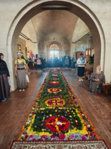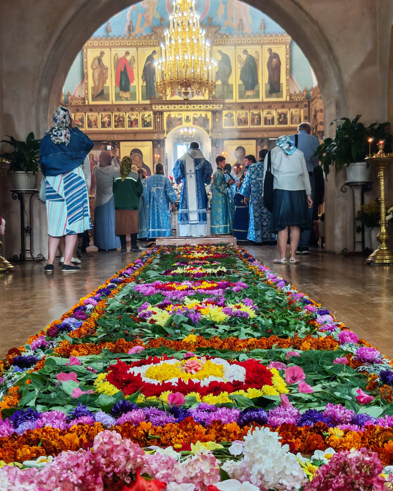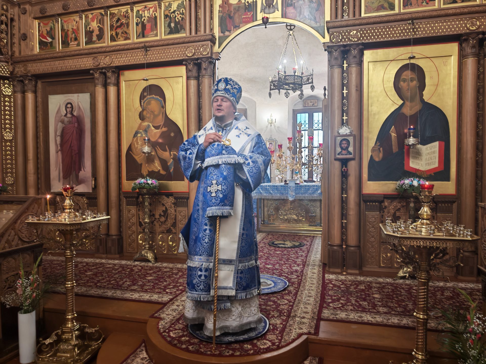 В завершение богослужения епископ Макарий обратился к молящимся с архипастырским словом: «Этот удивительно трогательный чин Погребения святой плащаницы особенно полюбился нашему народу, — отметил епископ. — Осенняя Пасха, так ещё называют Успение Матери Божией. Прихожане приносят свои цветы для украшения дорожки по которой будет пронесена святая плащаница. И эти цветы не дорогие, заморские, а свои, родные из палисадников и огородов. Они источают такое родное благоухание и мы мысленно переносимся на Святую Землю, представляем эту скорбную процессию — апостолов и всех верных, кто собрался проводить Матерь Божию к месту Её упокоения. Скорбь и радость соединяются в наших сердцах. Она оставляет этот мир, чтобы всегда пребывать в этом мире и заботиться о нем и о всех почитающих её с любовью и верой. Поклонимся Пречистой Божией Матери, чтобы и наше скудное приношение Она приняла и не оставляла нас Своим попечением».