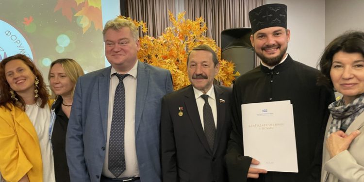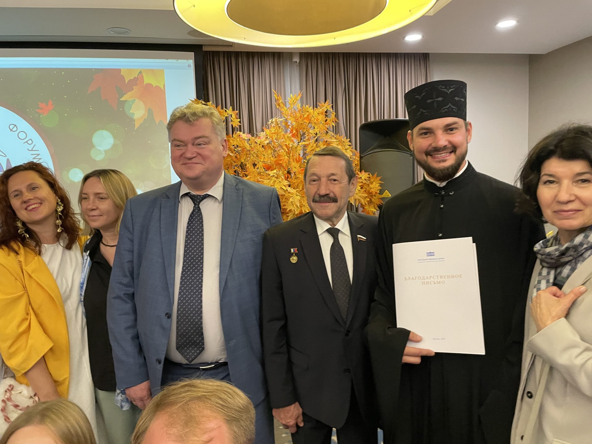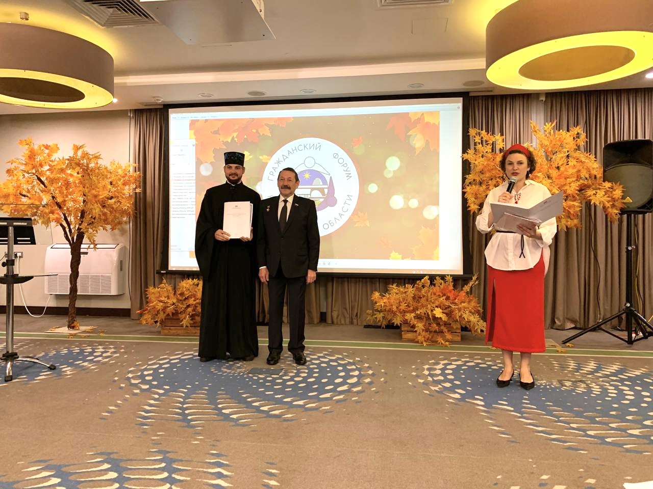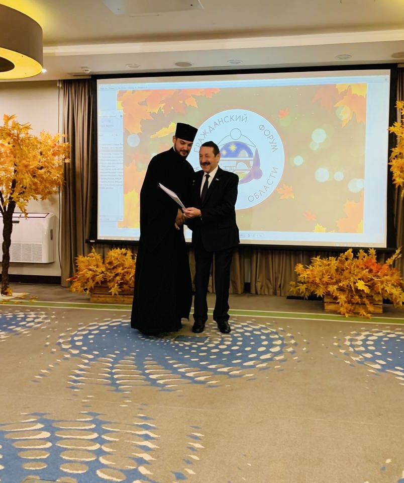В ходе своего приветственного слова к собравшимся участникам Геннадий Иванович Скляр отметил ряд лиц благодарственными письмами. Так клирику Козельской епархии — диакону Евгению Васильеву Геннадий Иванович вручил БЛАГОДАРСТВЕННОЕ ПИСЬМО за деятельный патриотизм, участие в восстановлении мирной жизни и оказание помощи участникам СВО.